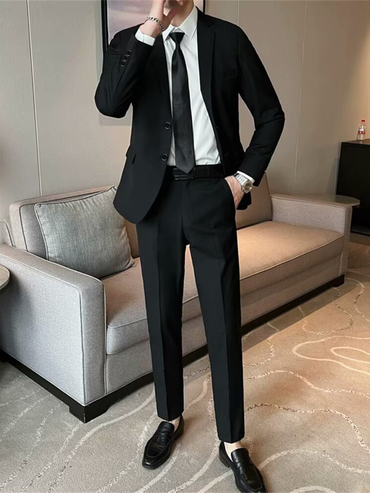 남자 세트 한국식 신랑 웨딩 원피스 원피스 슬림핏 베스트 맨 그룹 코트 캐주얼 전문 코트