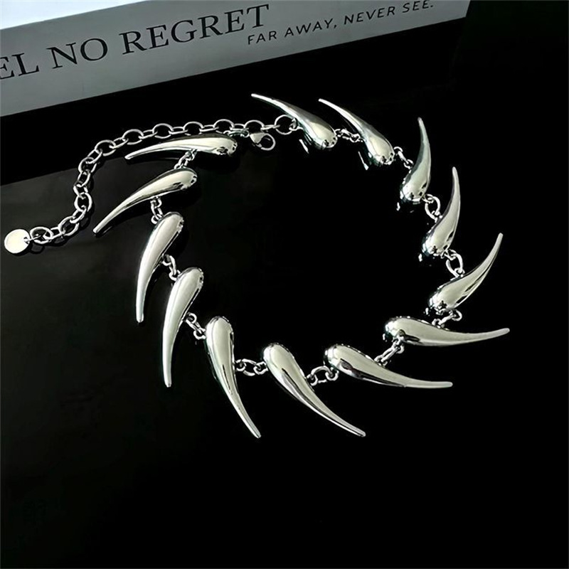 유럽과 미국의 국경 간 가시 기하학적 실버 가시 모양의 불규칙한 금속 목걸이 과장된 목 체인 틈새 성격 목걸이