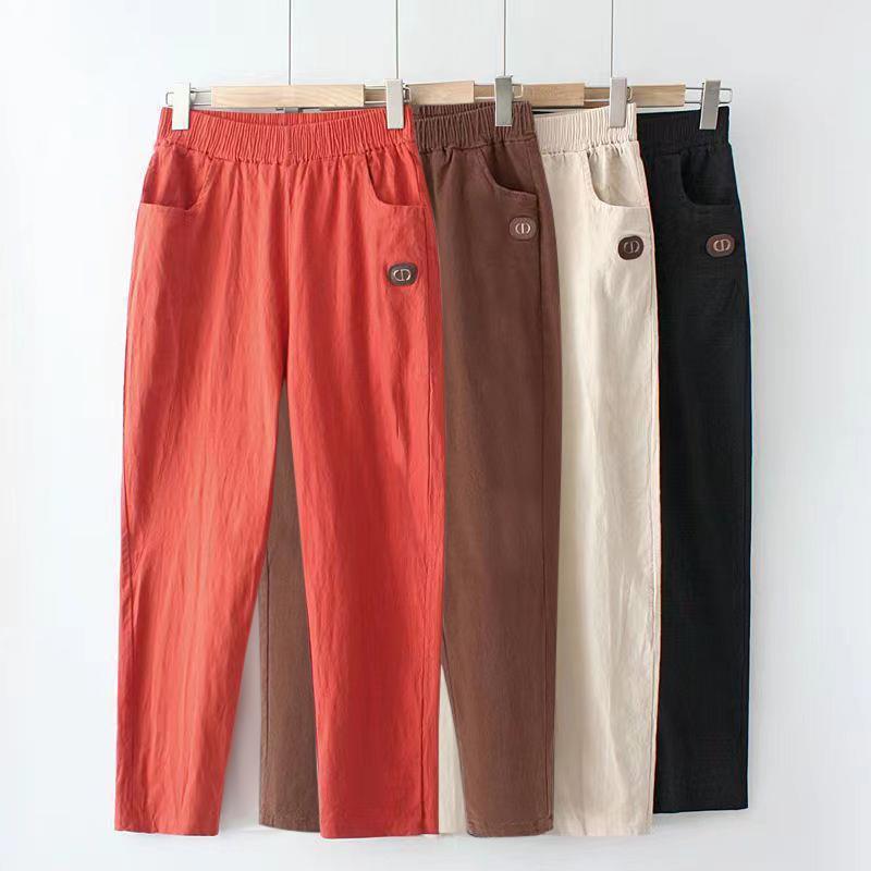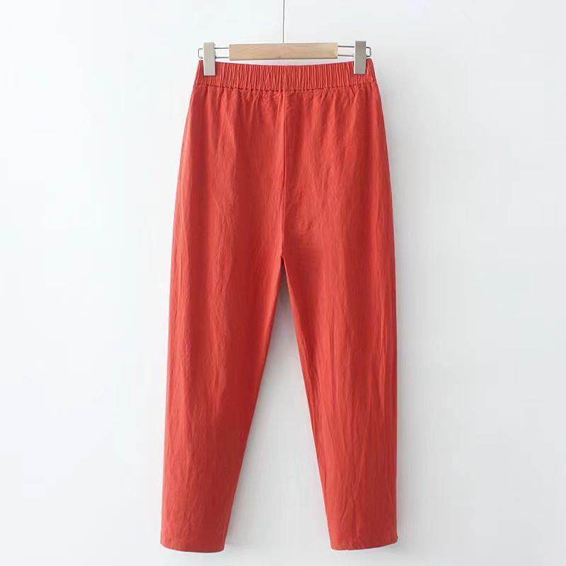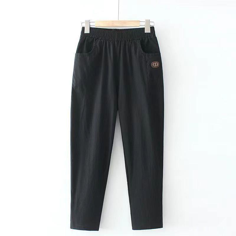 여름 에어컨 아이스 실크 주름 높은 허리 슬리밍 모든 경기 캐주얼 스트레이트 얇은 느슨한 자른 여자 스키니 하렌 바지
