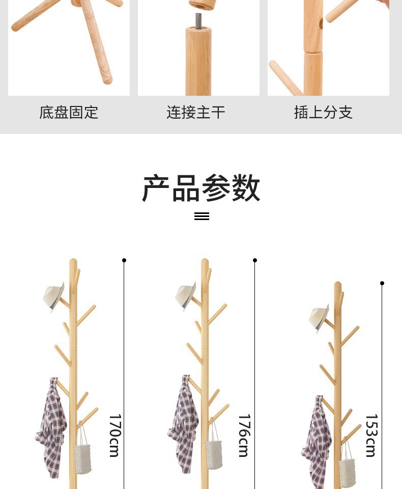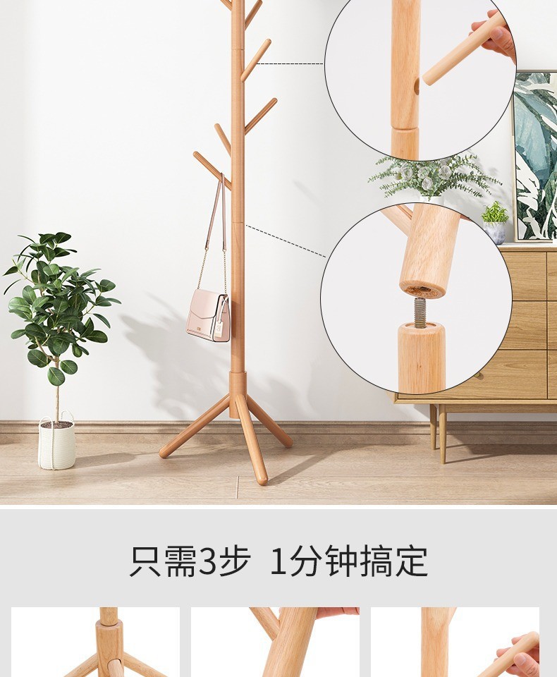 단단한 나무 코트 랙 바닥 침실 거실 옷로드 랙 가정용 실내 수직 간단한 교수형 가방 랙 모자