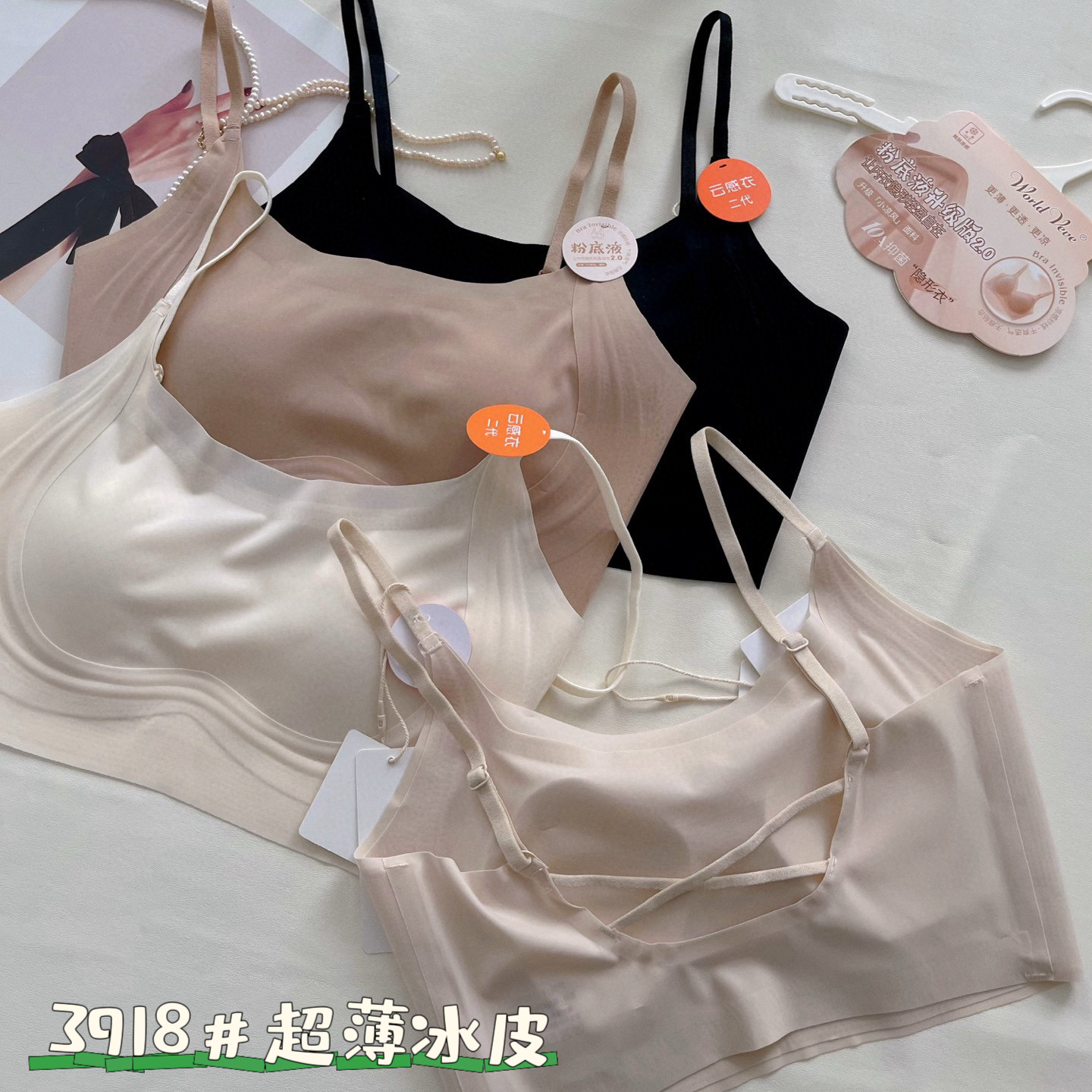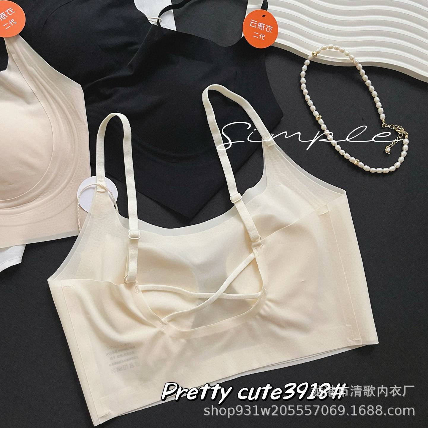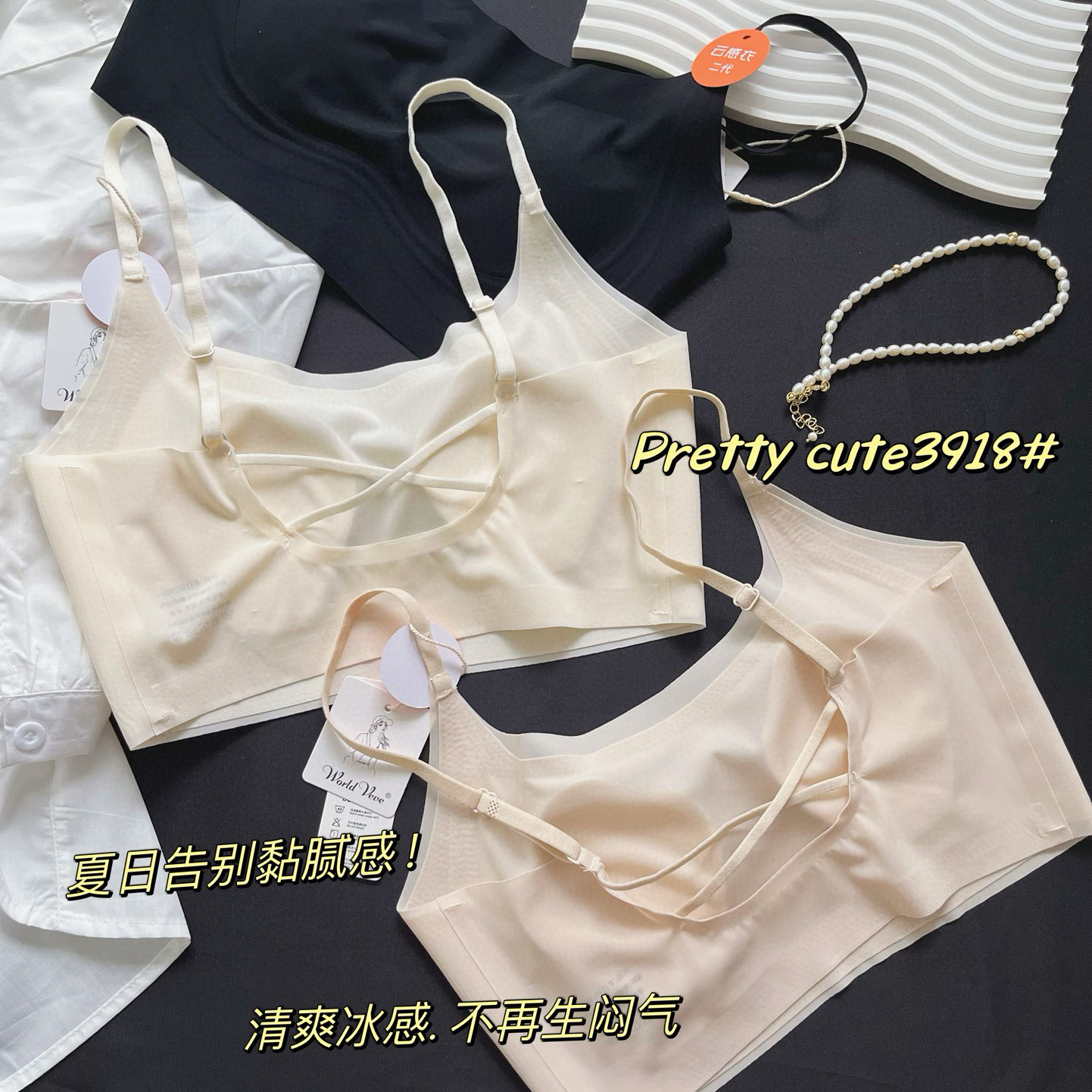 옷걸이에 달린 3918 고양이 발바닥 모양 컵 아이스 스킨 백리스 랩탑 브라, 가볍고 누드 느낌의 통기성 섹시 백리스 여성 속옷