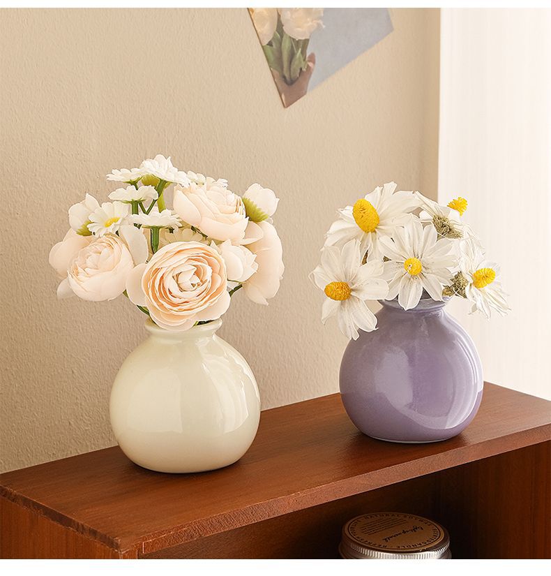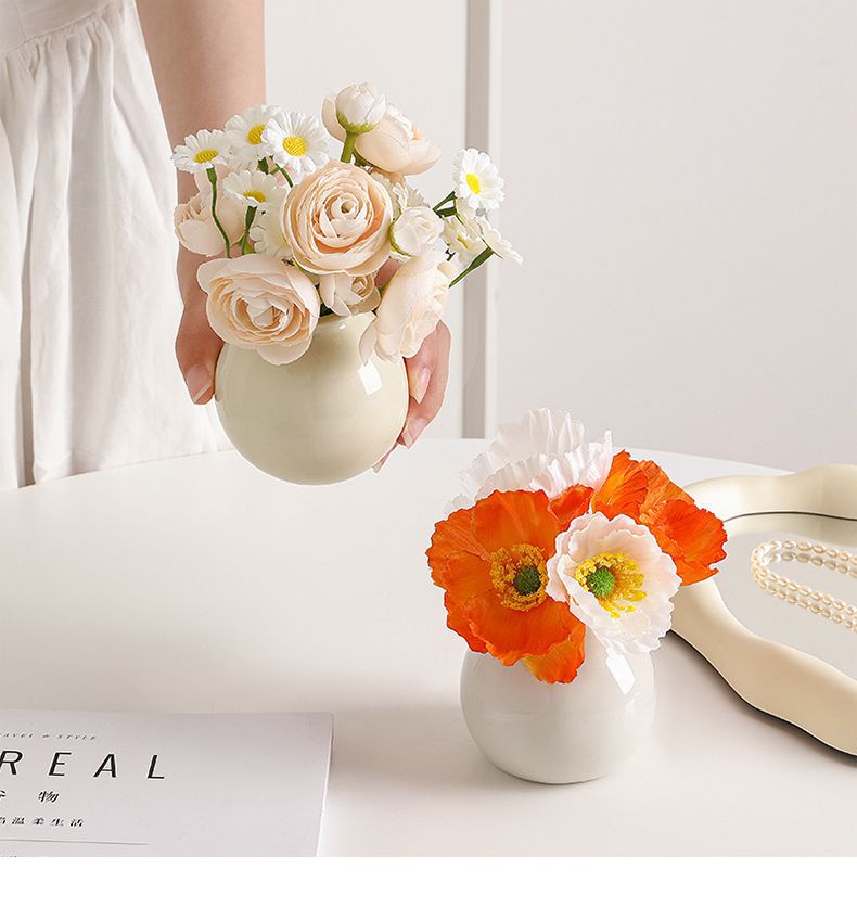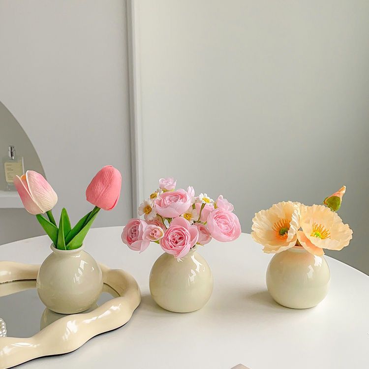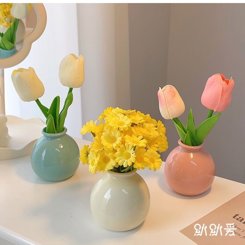 Ins 스타일 장식 가짜 꽃 말린 꽃 튤립 인공 꽃 세트 데스크탑 장식 미니 넓은 입 세라믹 작은 꽃병