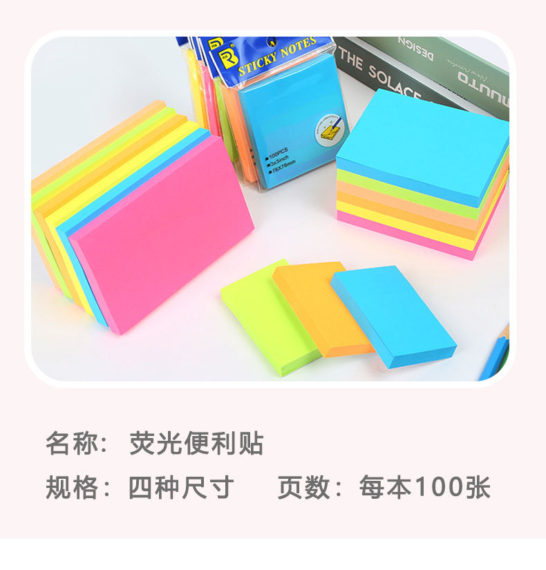 형광색 자가 접착 메모지 맞춤형 강력 접착력 N회 사용 메모지 학생 사무용 문구