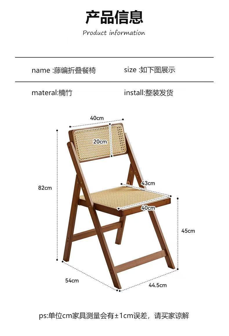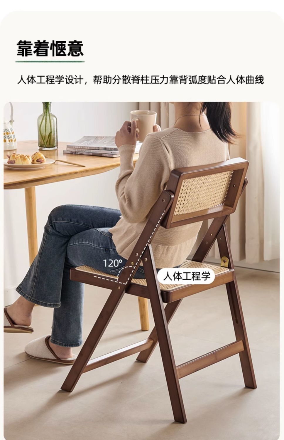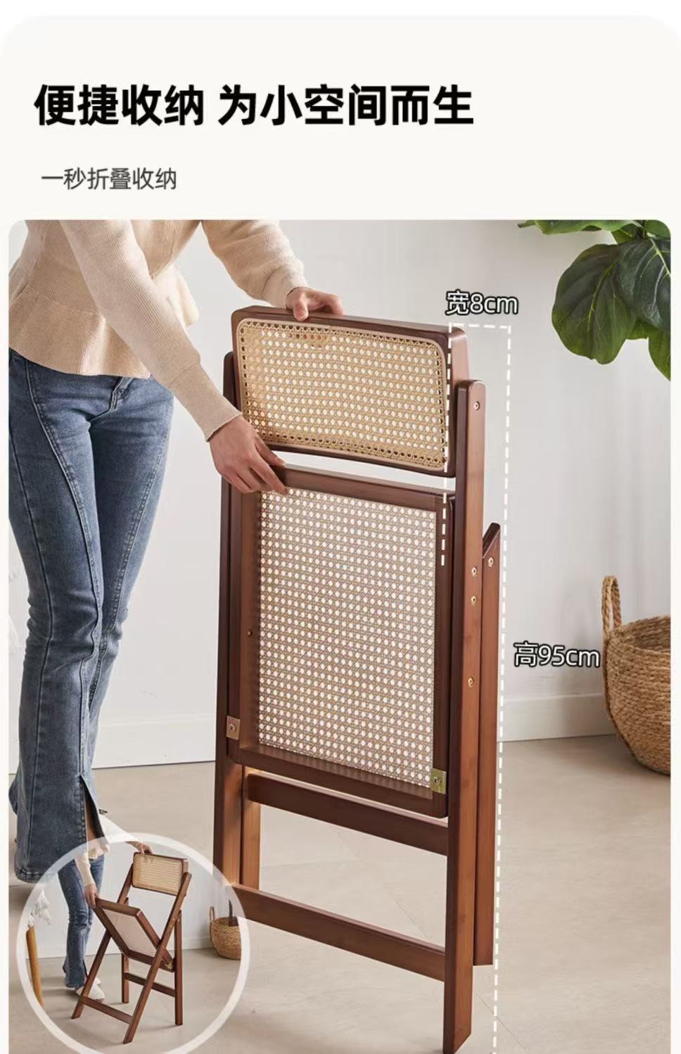 조용한 스타일 등나무 의자 가구 접는 의자 난주 솔리드 우드 의자 등받이 식사 의자 북유럽 스타일 로그 스타일 다이닝 의자