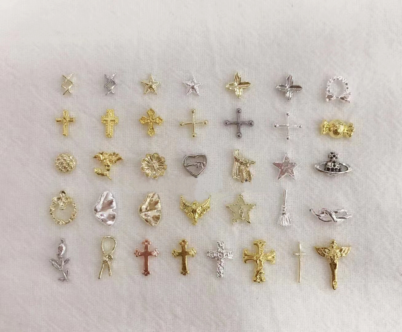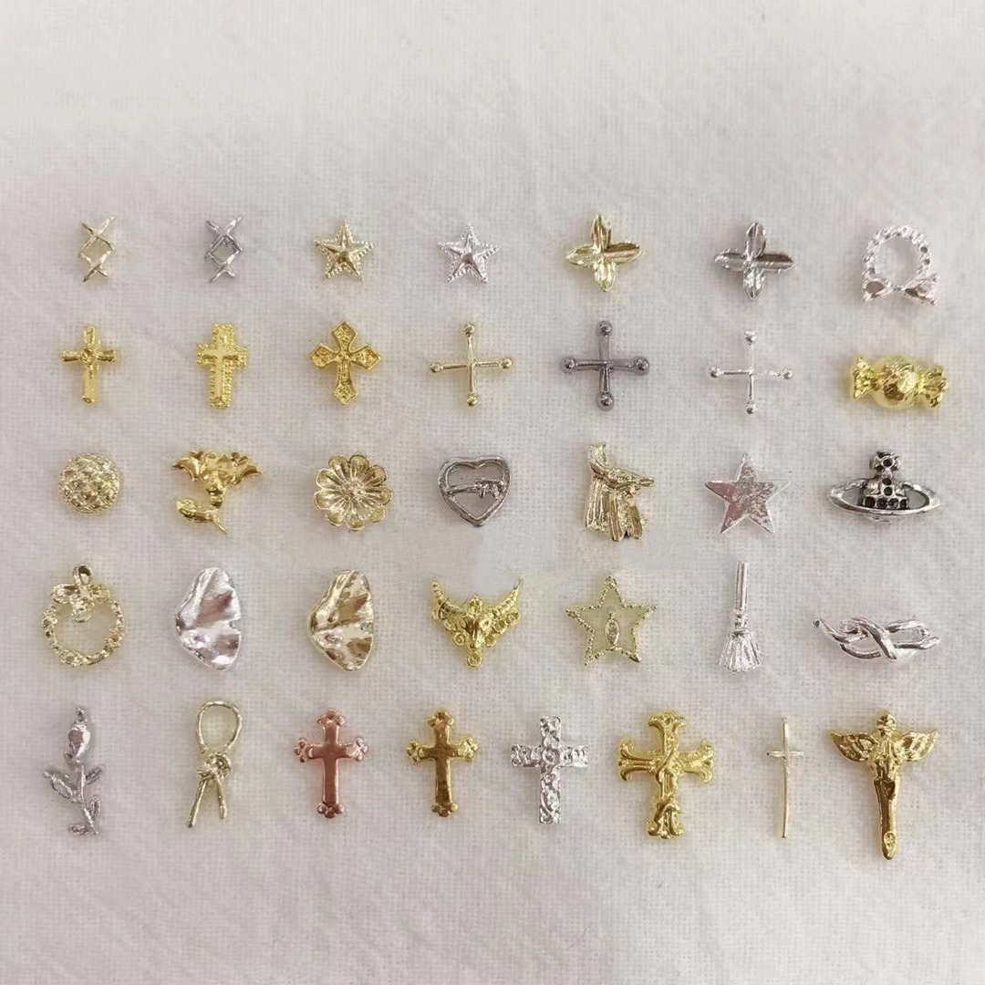 네일 아트 빈티지 금속 쥬얼리 골드와 실버 크로스 다섯개 별 트렌디 한 매니큐어 스티커 DIY 합금 보석