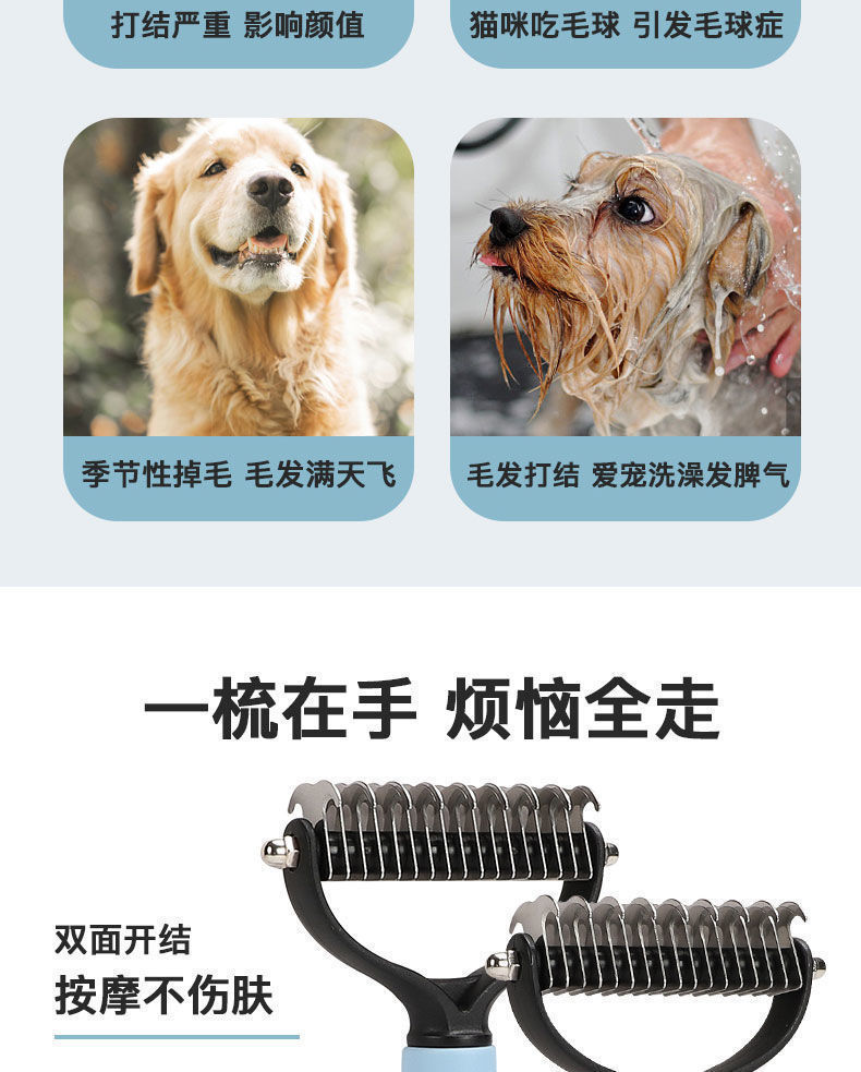 애완 동물 빗 양면 오픈 매듭 빗 마사지 빗 청소 아름다움 고양이 빗 개 애완 동물 빗 애완 동물 용품 빗