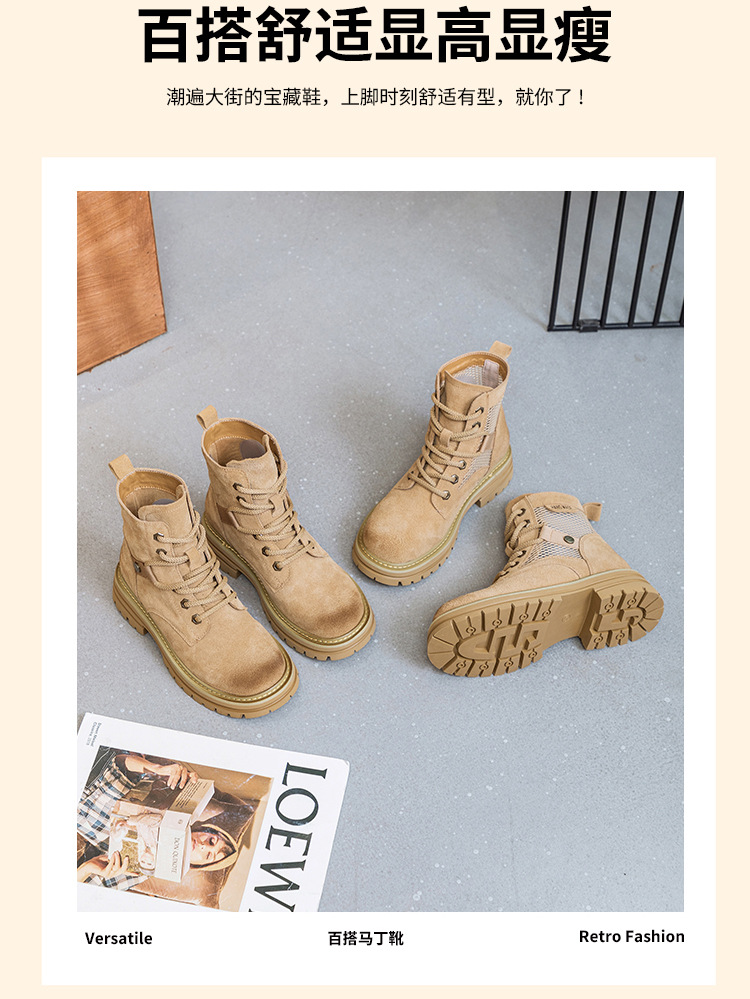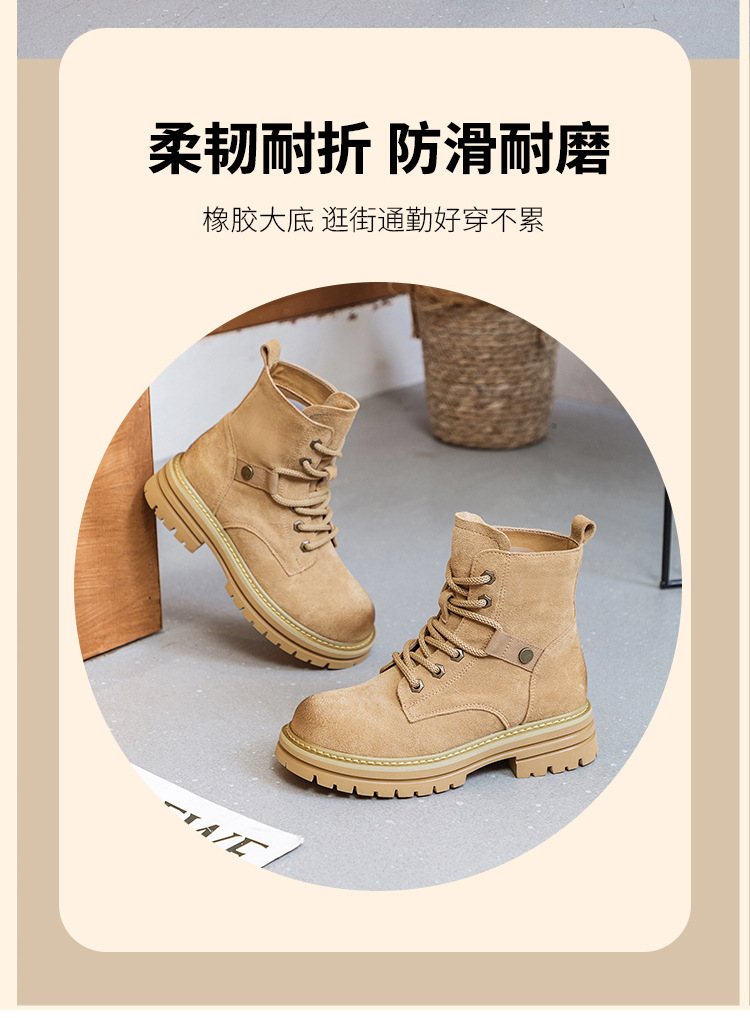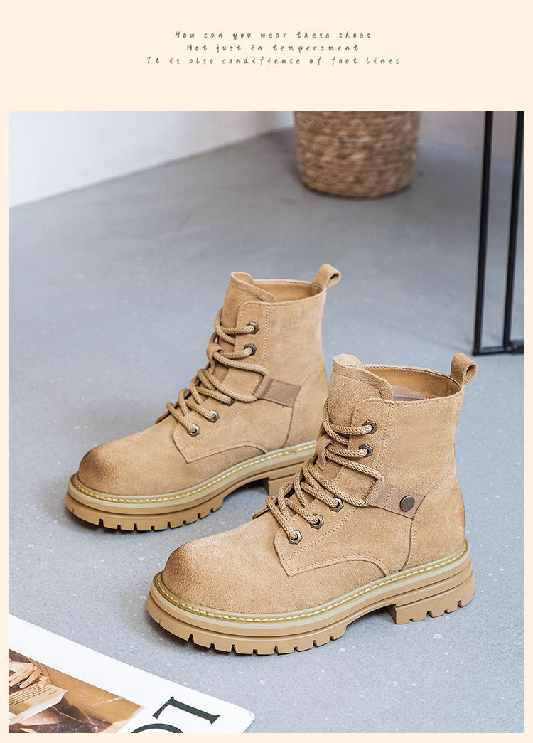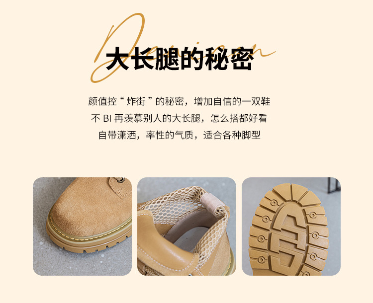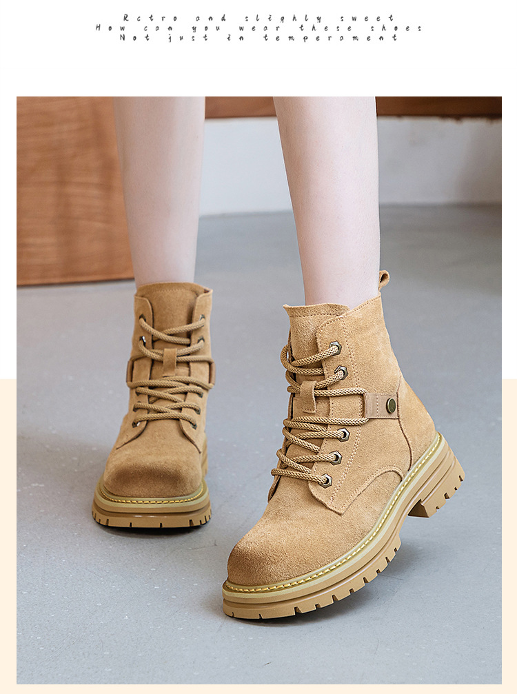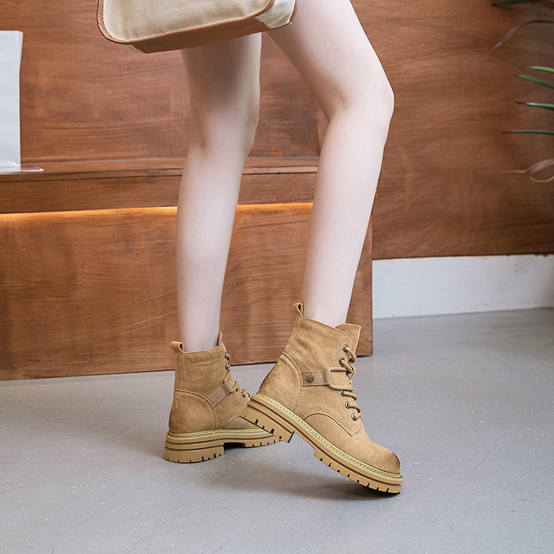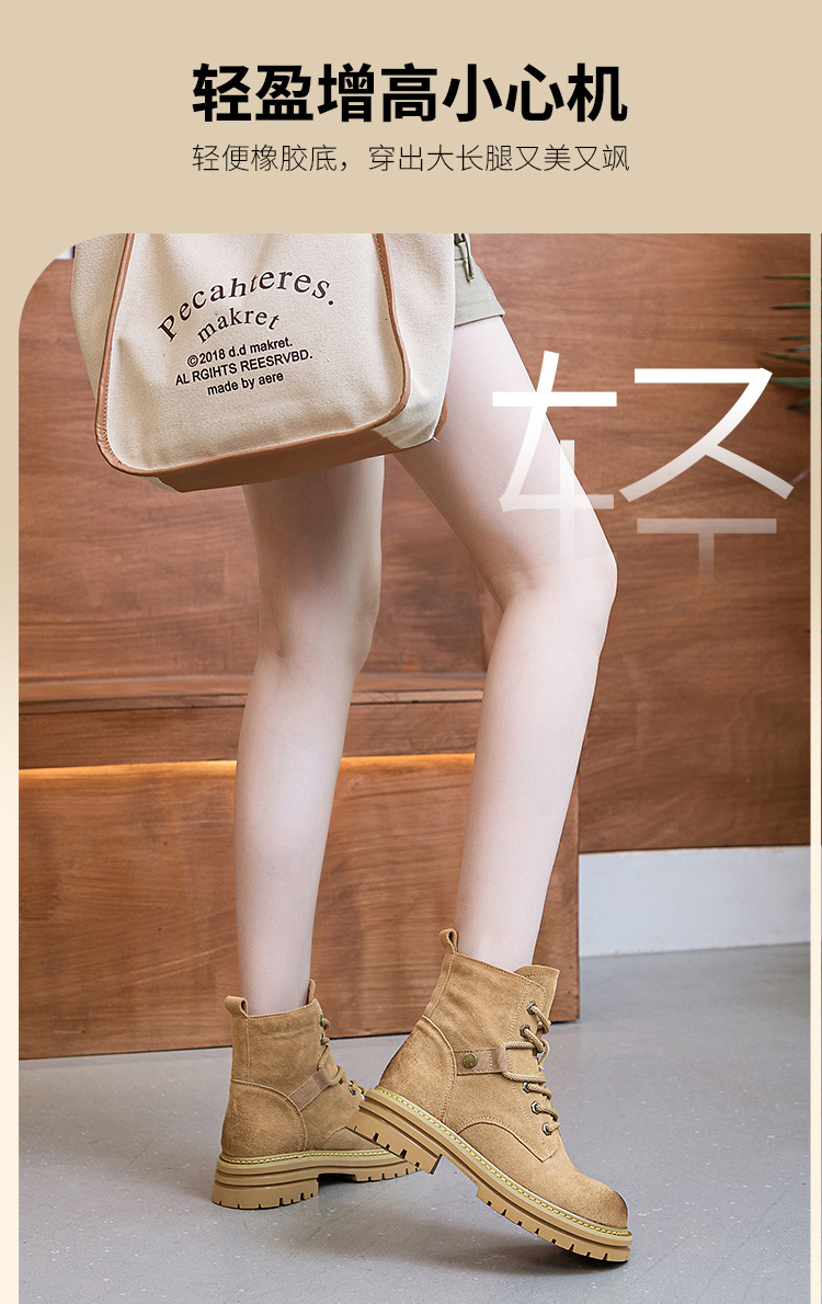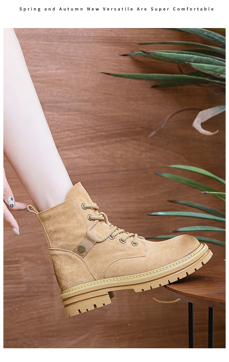 여성용 마틴 부츠 2025 가을 신상품 천연 가죽 워크웨어 숏부츠 스몰 사이즈 키높이 노란색 부츠 영국 스타일 데저트 부츠