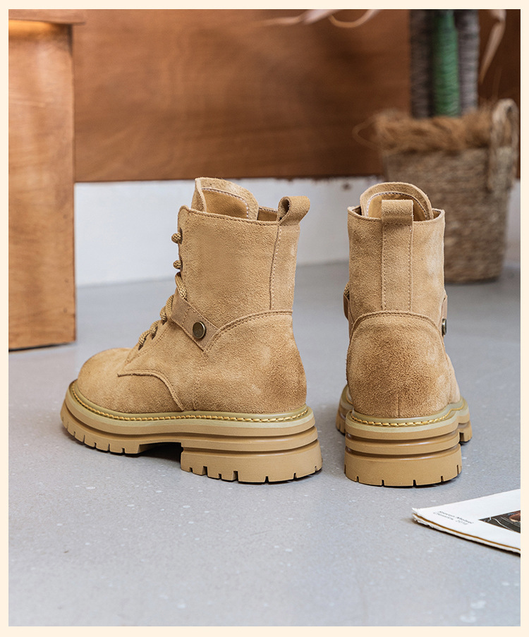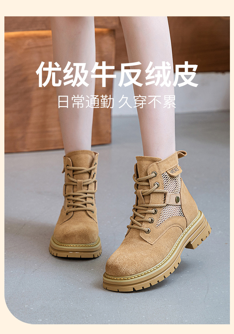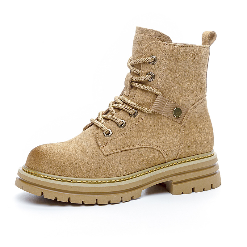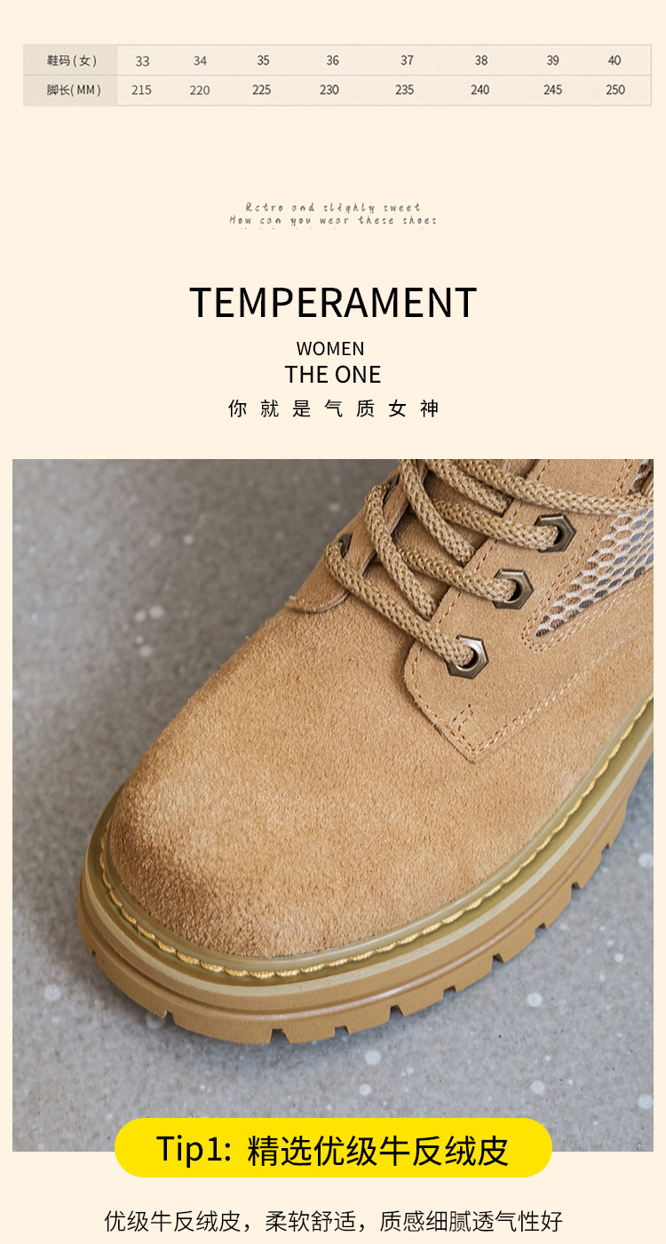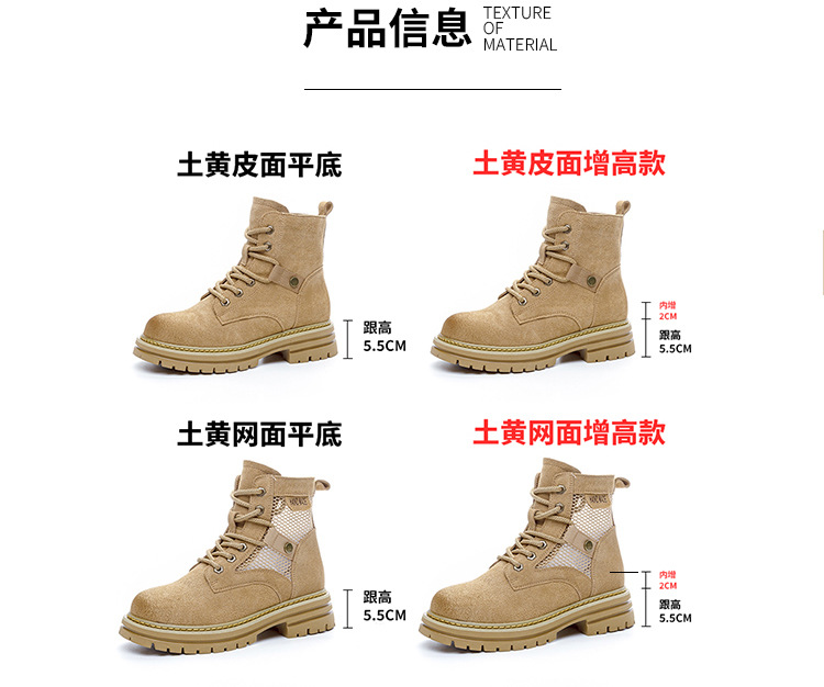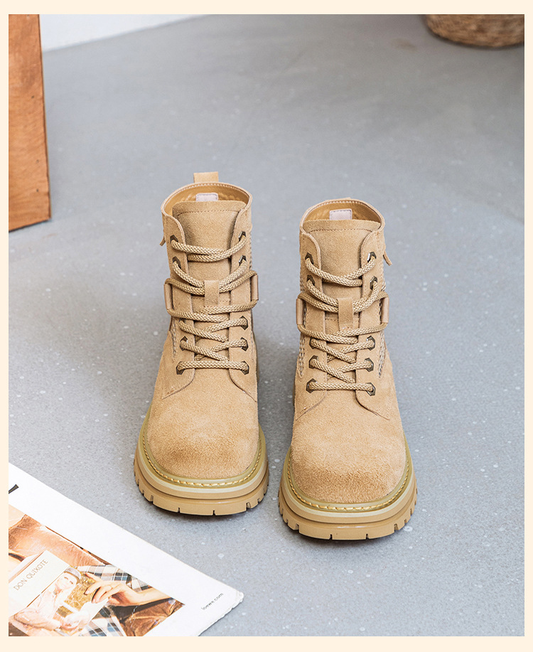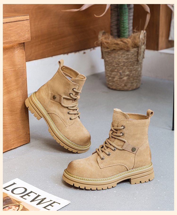 여성용 마틴 부츠 2025 가을 신상품 천연 가죽 워크웨어 숏부츠 스몰 사이즈 키높이 노란색 부츠 영국 스타일 데저트 부츠