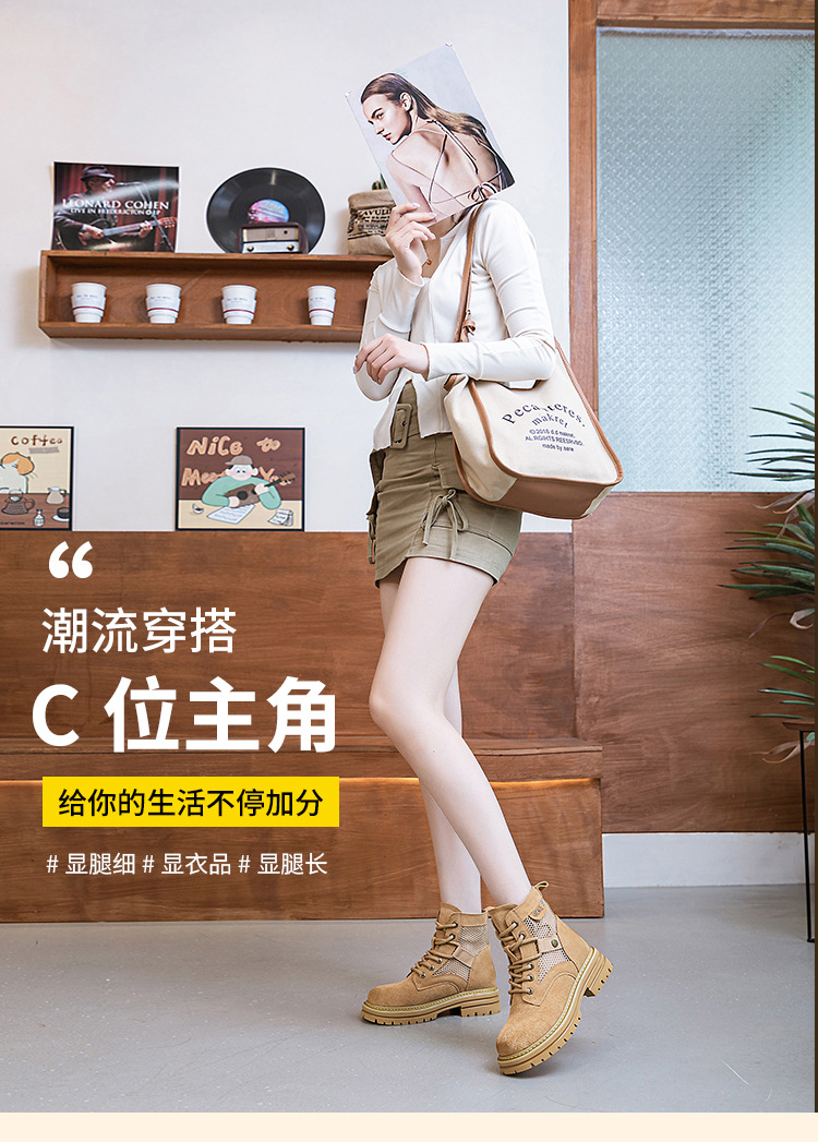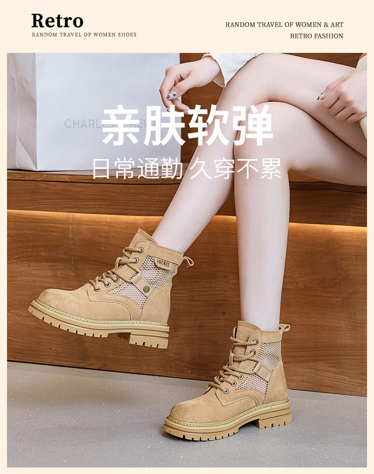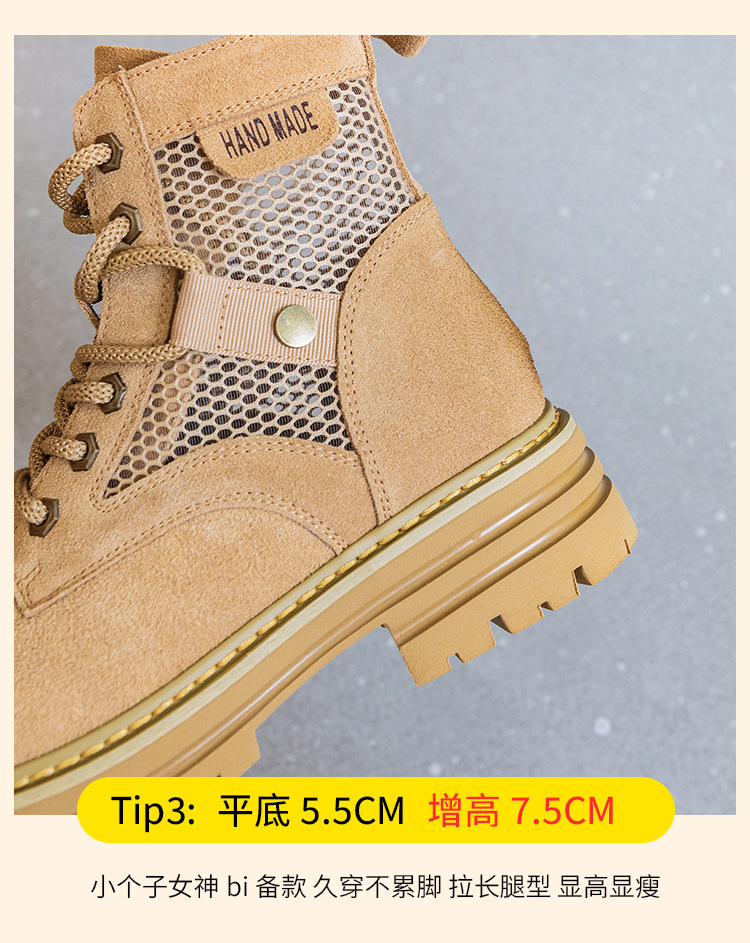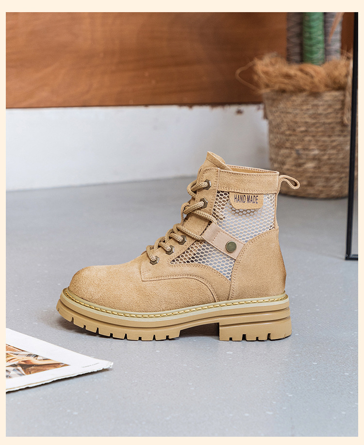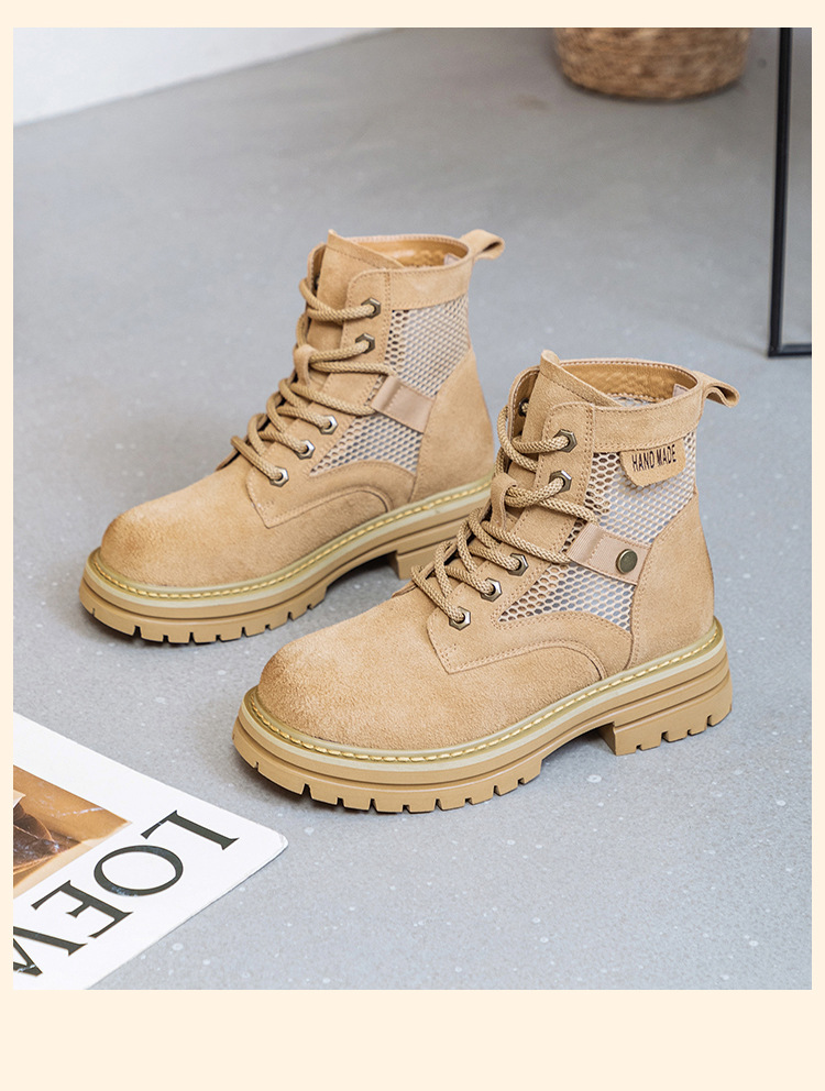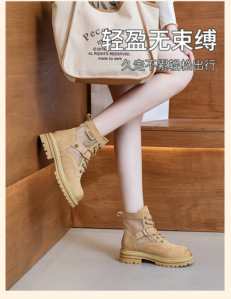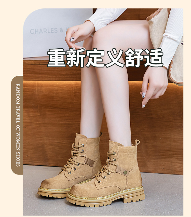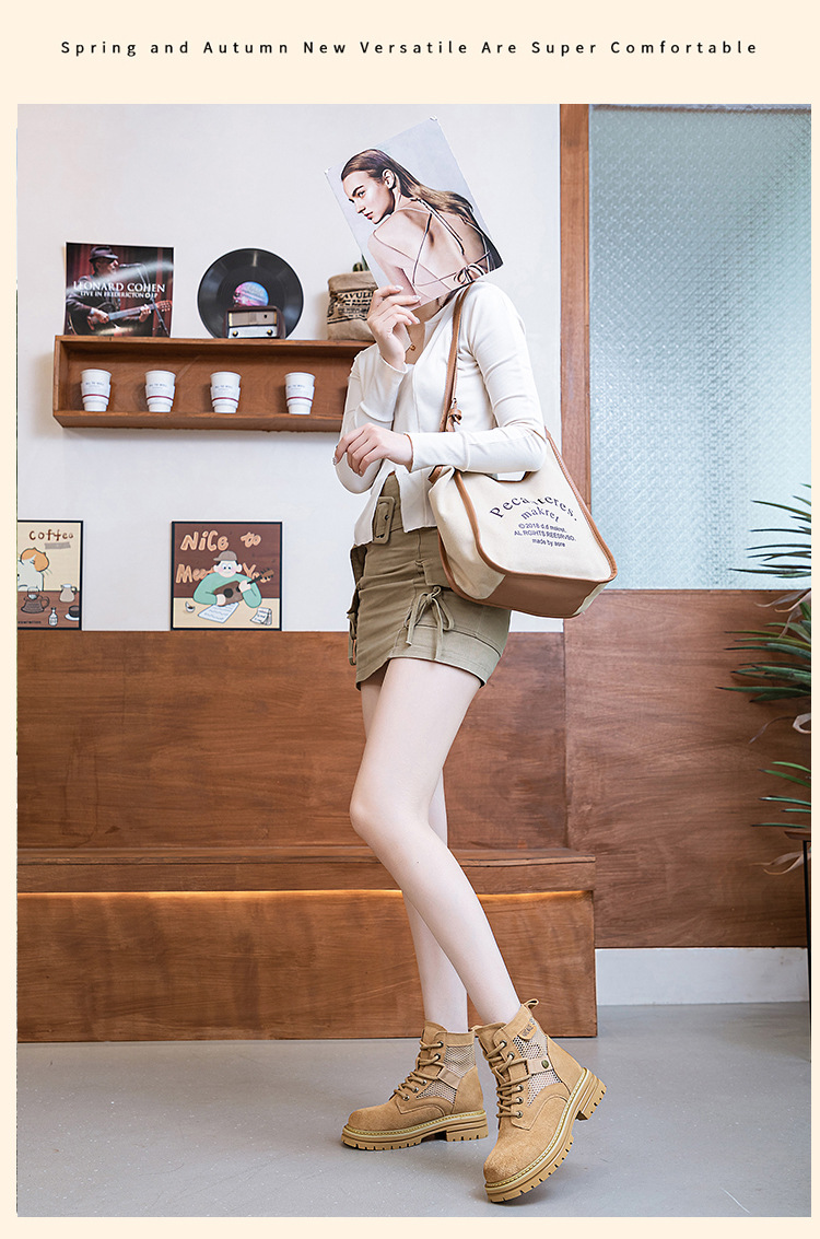 여성용 마틴 부츠 2025 가을 신상품 천연 가죽 워크웨어 숏부츠 스몰 사이즈 키높이 노란색 부츠 영국 스타일 데저트 부츠