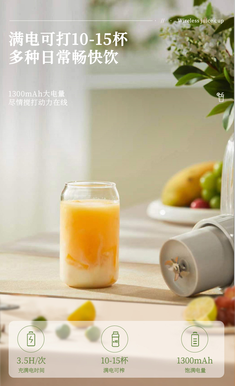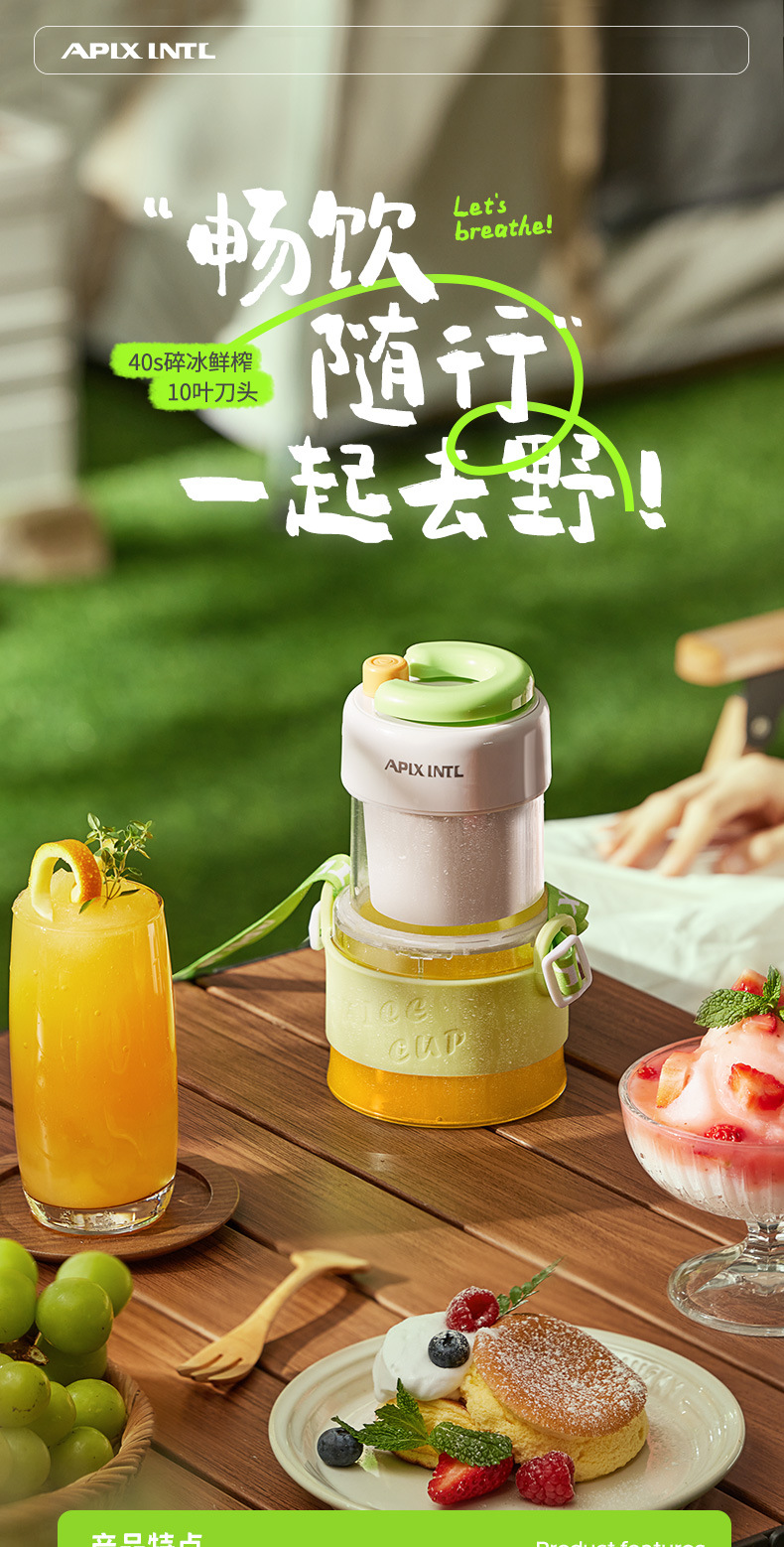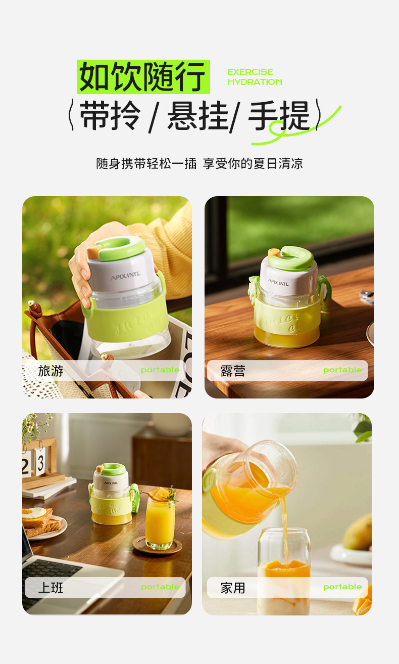 Apixintl Ambensin 주스 추출기 가정용 휴대용 분쇄 아이스 쥬서 충전식 미니 전기 과일
