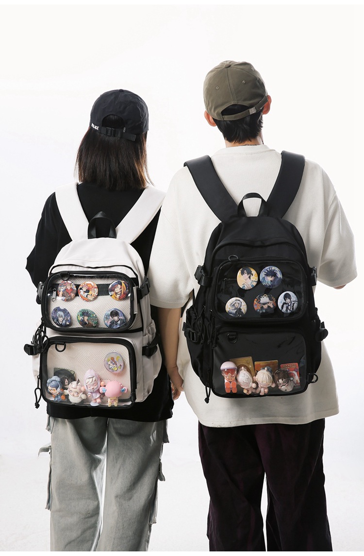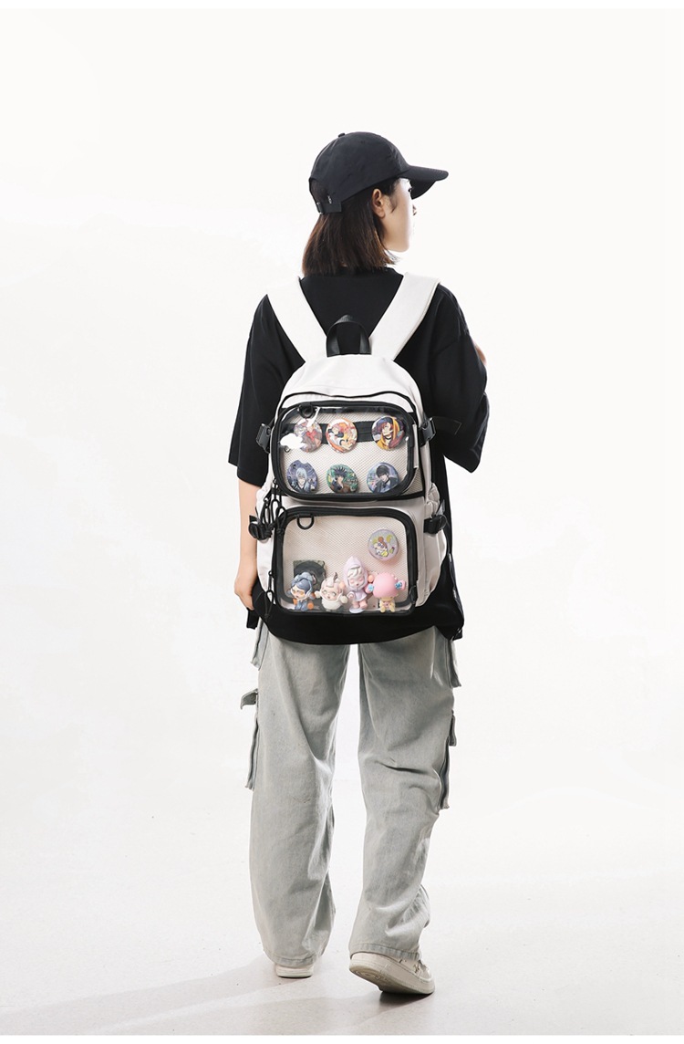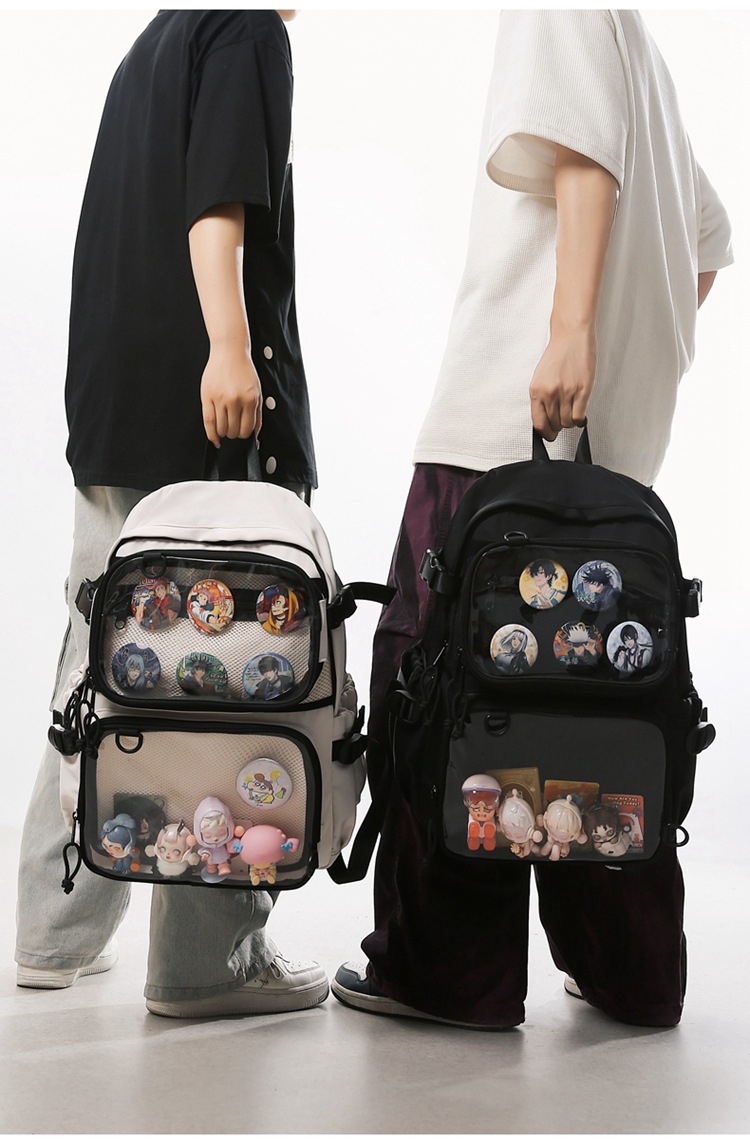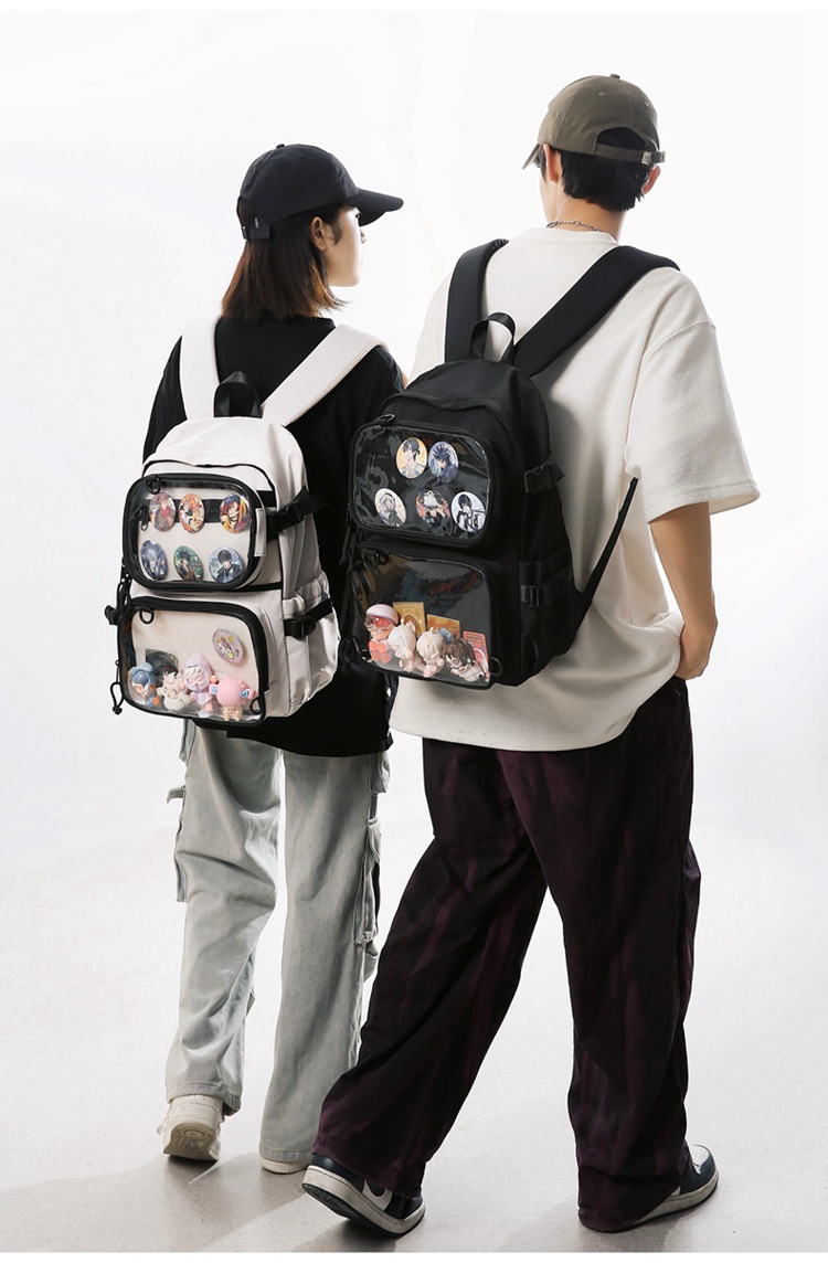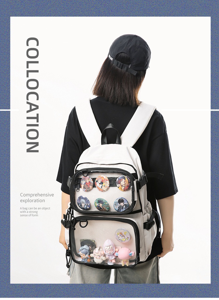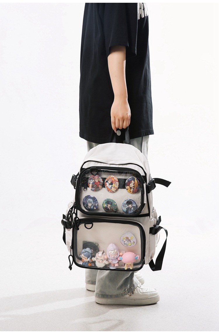 2차원 스타일 일본풍 인스타 감성 백팩, 탈부착 가능한 투명 2피스 세트, 중고등학생용 책가방