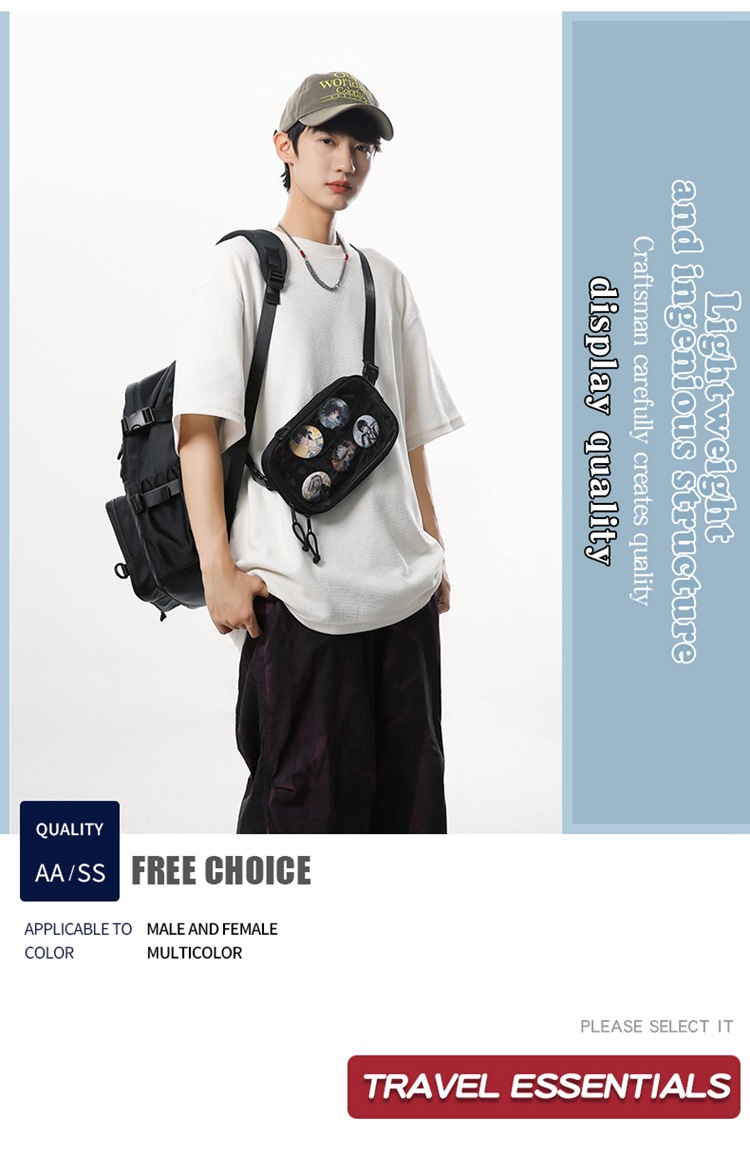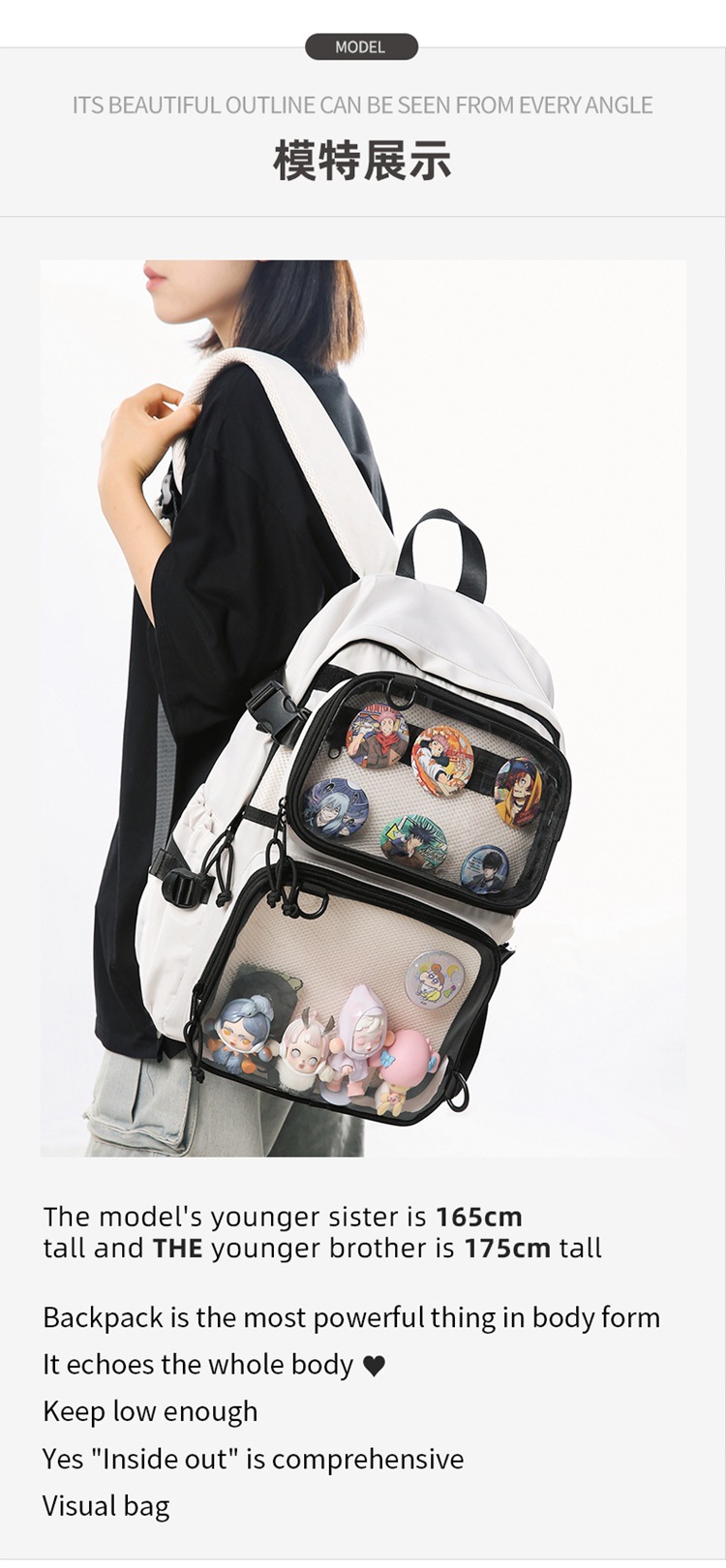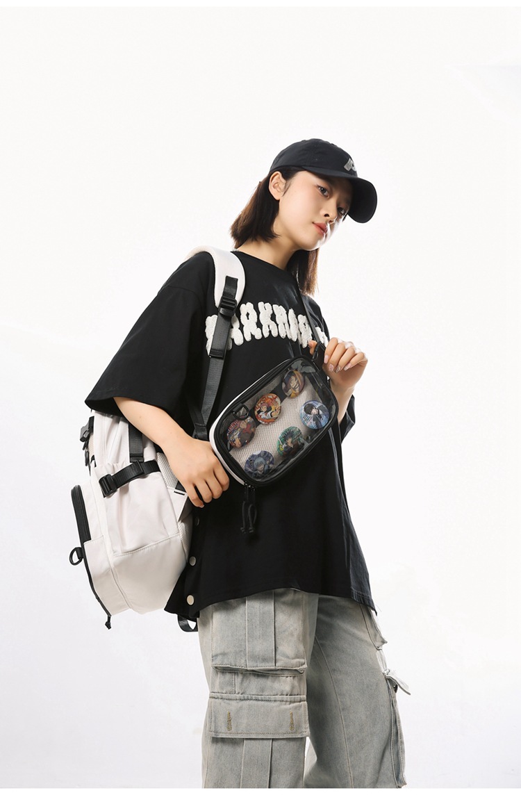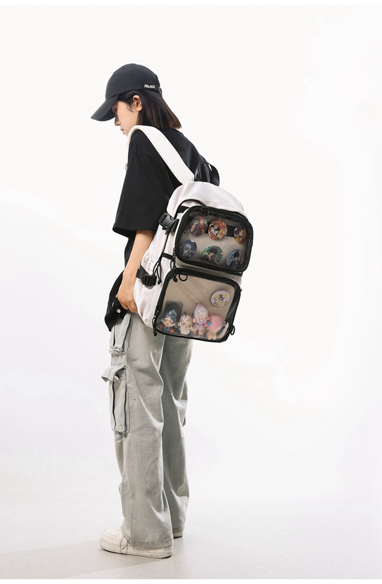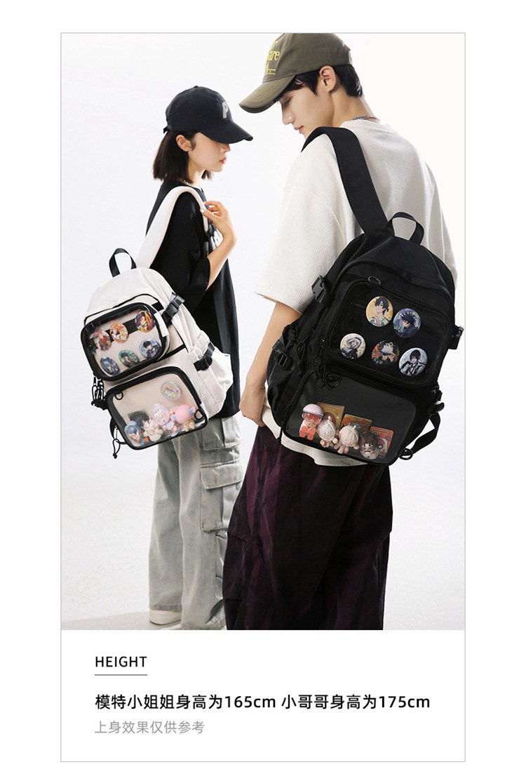 2차원 스타일 일본풍 인스타 감성 백팩, 탈부착 가능한 투명 2피스 세트, 중고등학생용 책가방