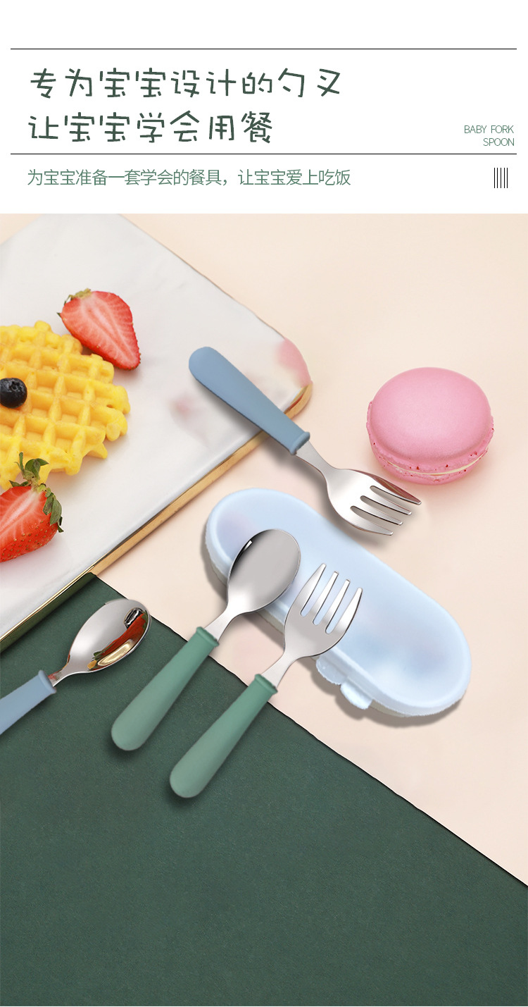 부드러운 손잡이 304 스테인리스 어린이 식기 포크와 스푼 세트 아기 엄마와 아기 선물용 원형 손잡이 포크와 스푼