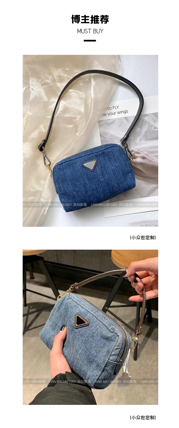 테나닌 데님 블루 원숄더 겨드랑이백 2026 신상 바게트백 고급 핸드백 마작백 동전지갑