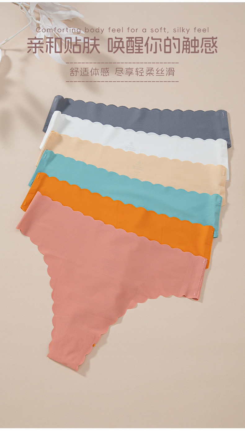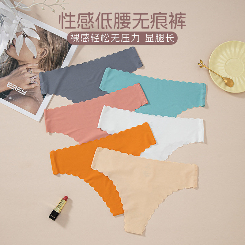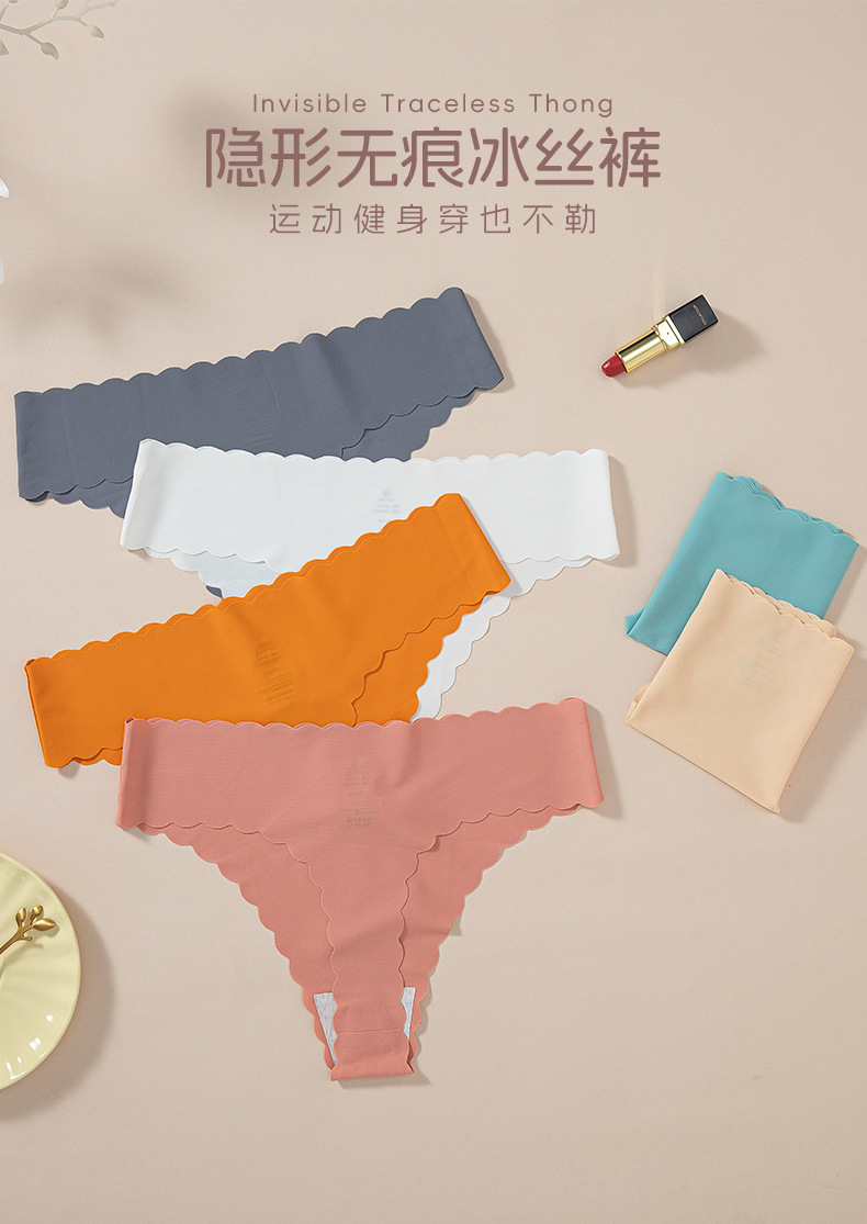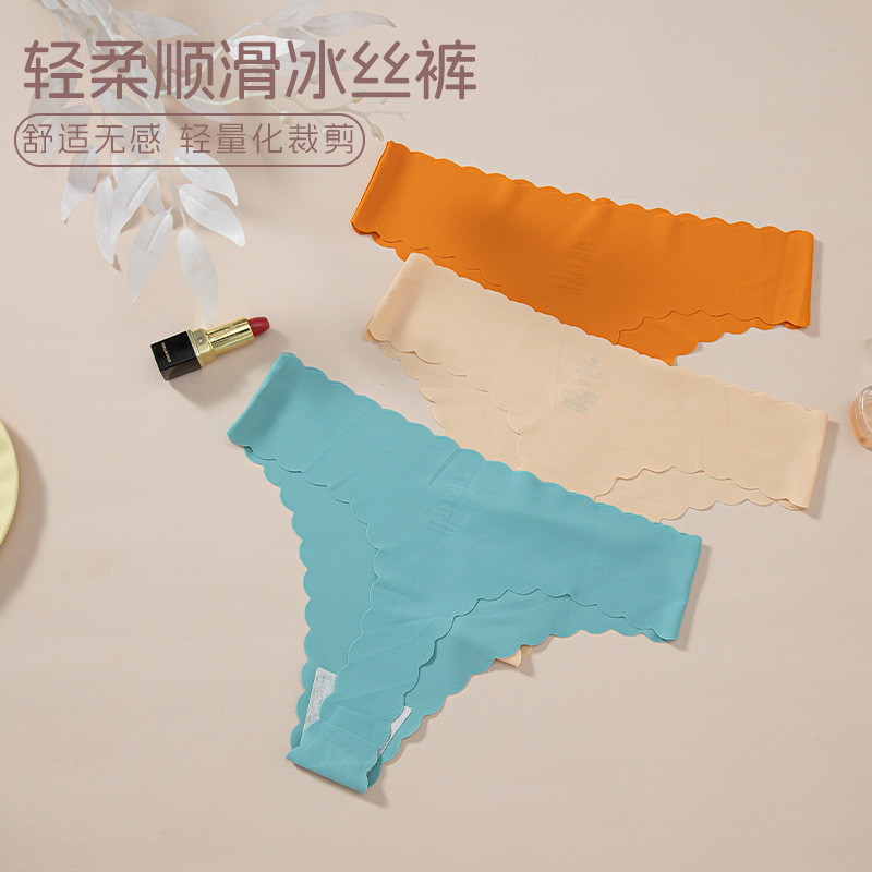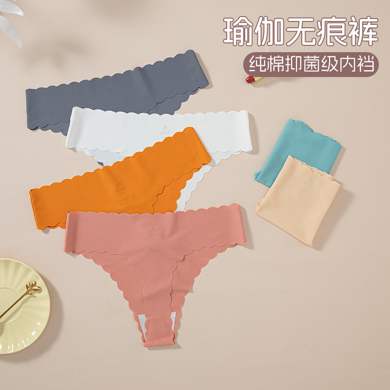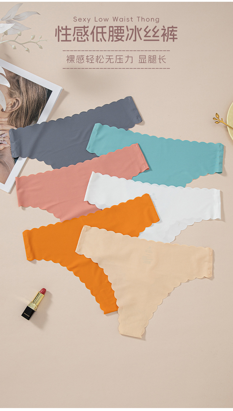 원활한 아이스 실크 속옷 여성의 낮은 허리 섹시한 피트니스 요가 코튼 가랑이 끈 원피스 물결 모양의 가장자리 T 바지 도매