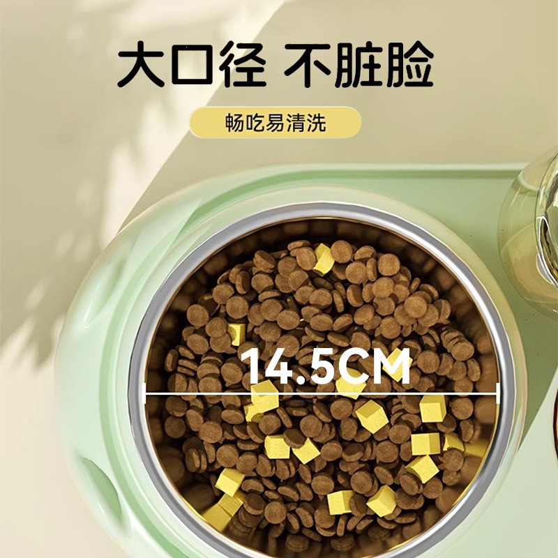 【品名】:HOOPET 猫耳朵水粮一体碗(不锈钢款/陶瓷款)-(绿色/米色)