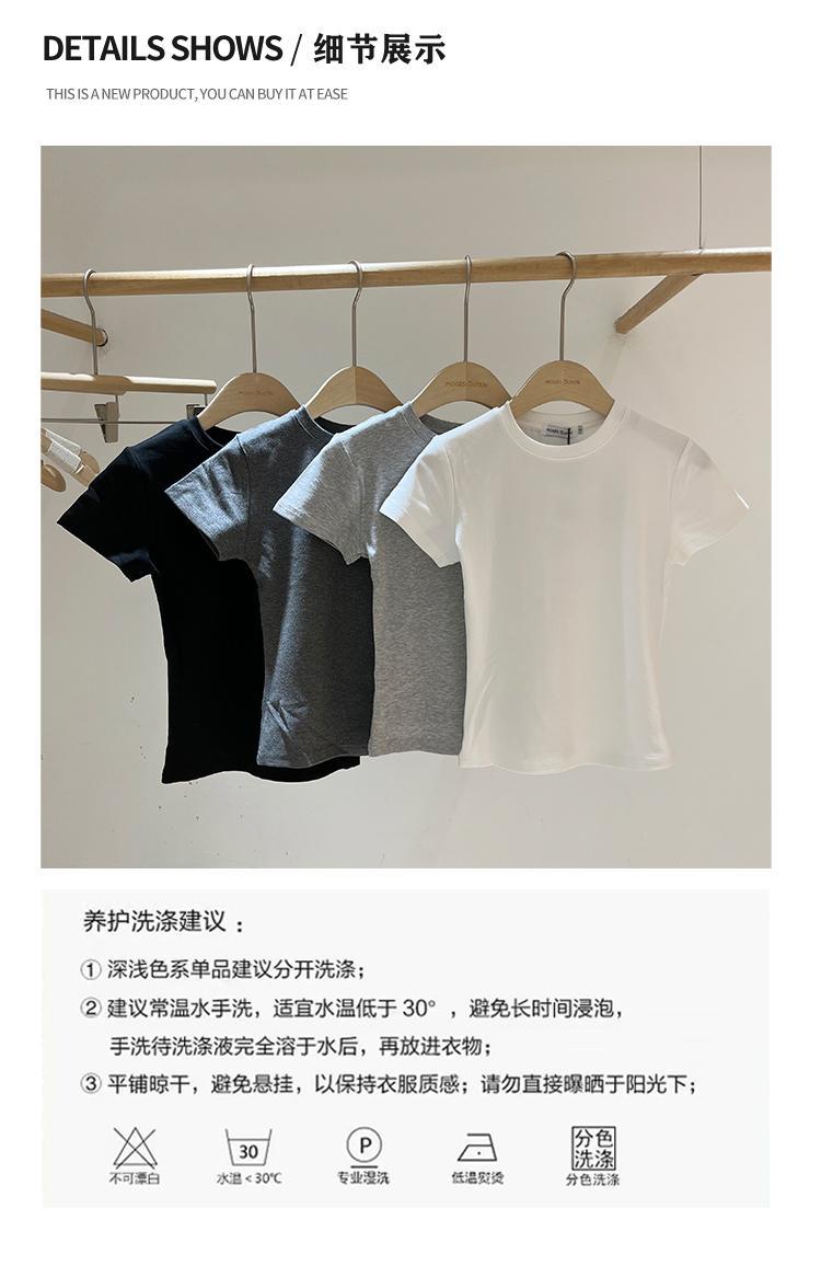 핀치 허리 어깨 티셔츠 흰색 반팔 여성용 봄과 가을 스트레치 슬림 핏 핫 걸 짧은베이스 셔츠 여름 라운드 넥 내부 셔츠