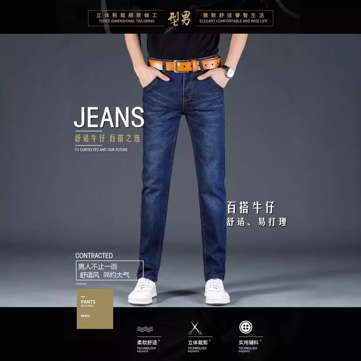 가을 기본 남성 스트레치 청바지 남성용 스트레이트 느슨한 2023 새로운 캐주얼 바지 남성용 슬림 패션
