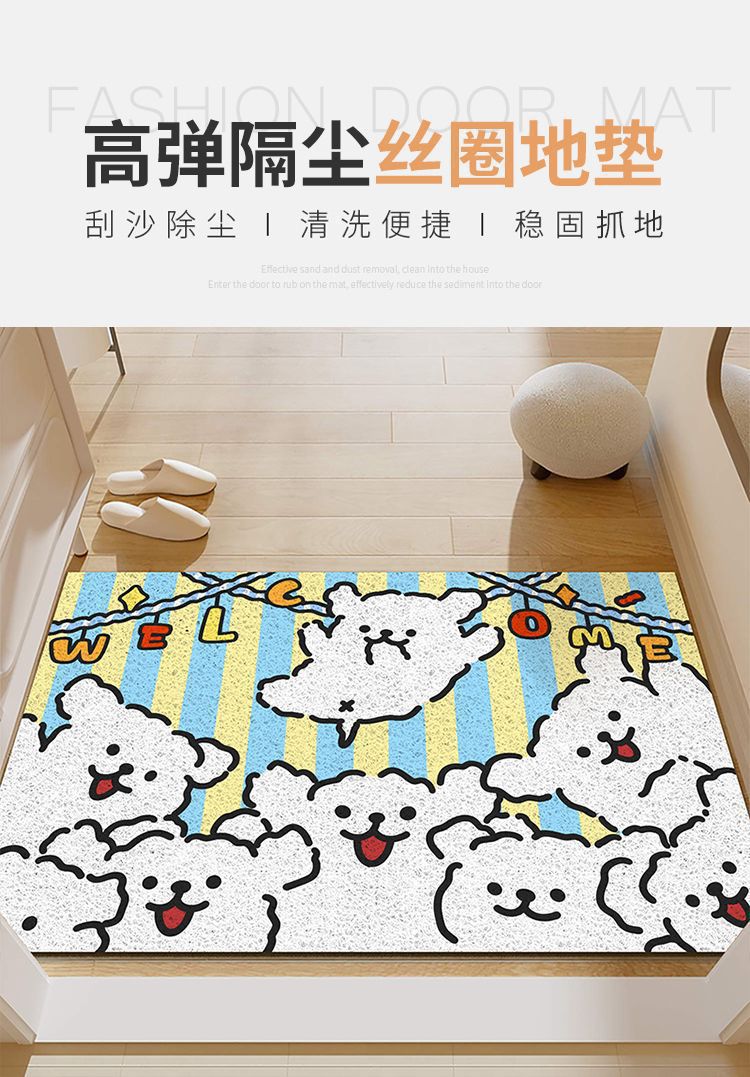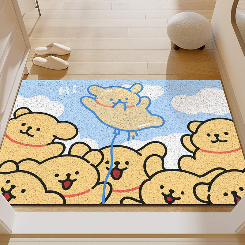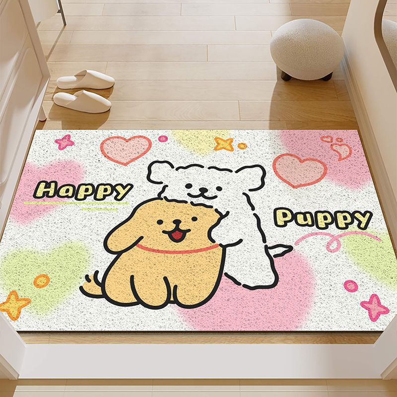 입구 바닥 매트 만화 라인 강아지 입구 내마모성 미끄럼 방지 발 매트 입구 진흙 스크래핑 실크 링 바닥 매트