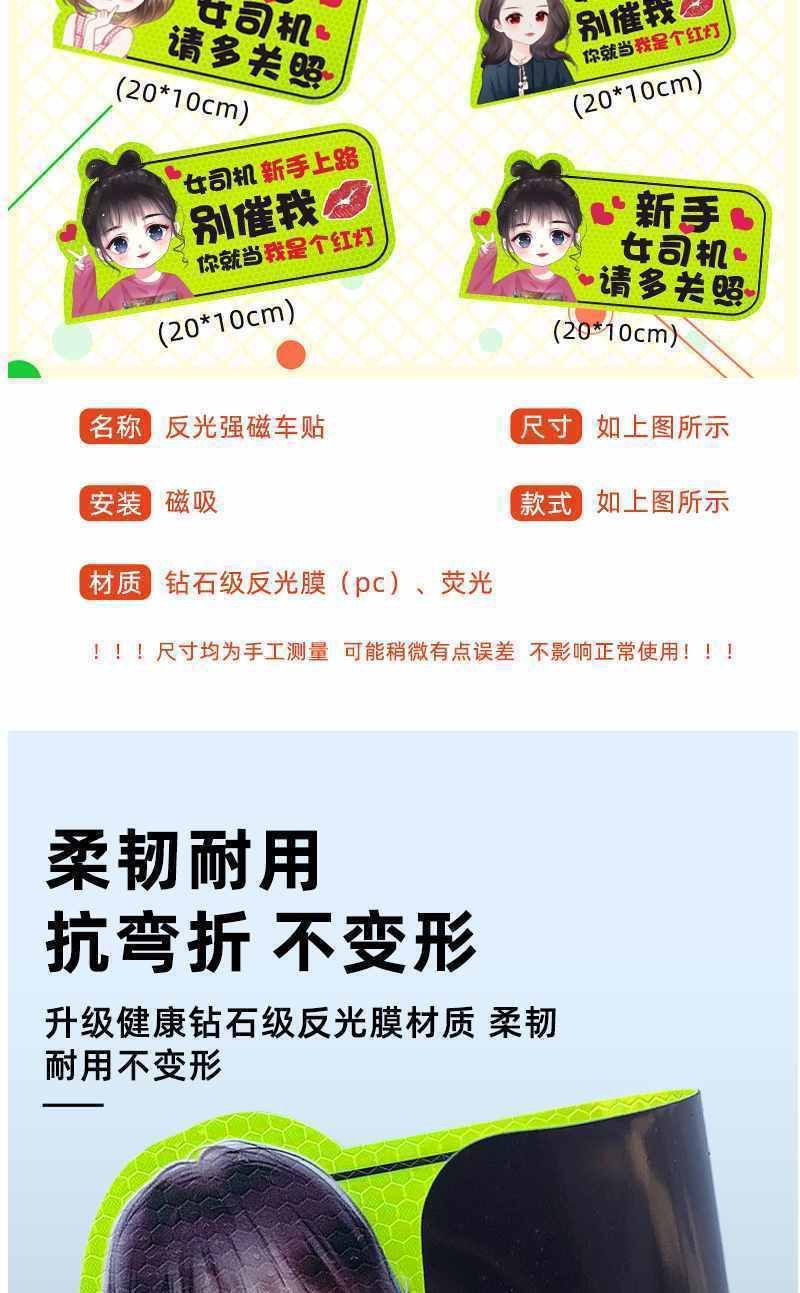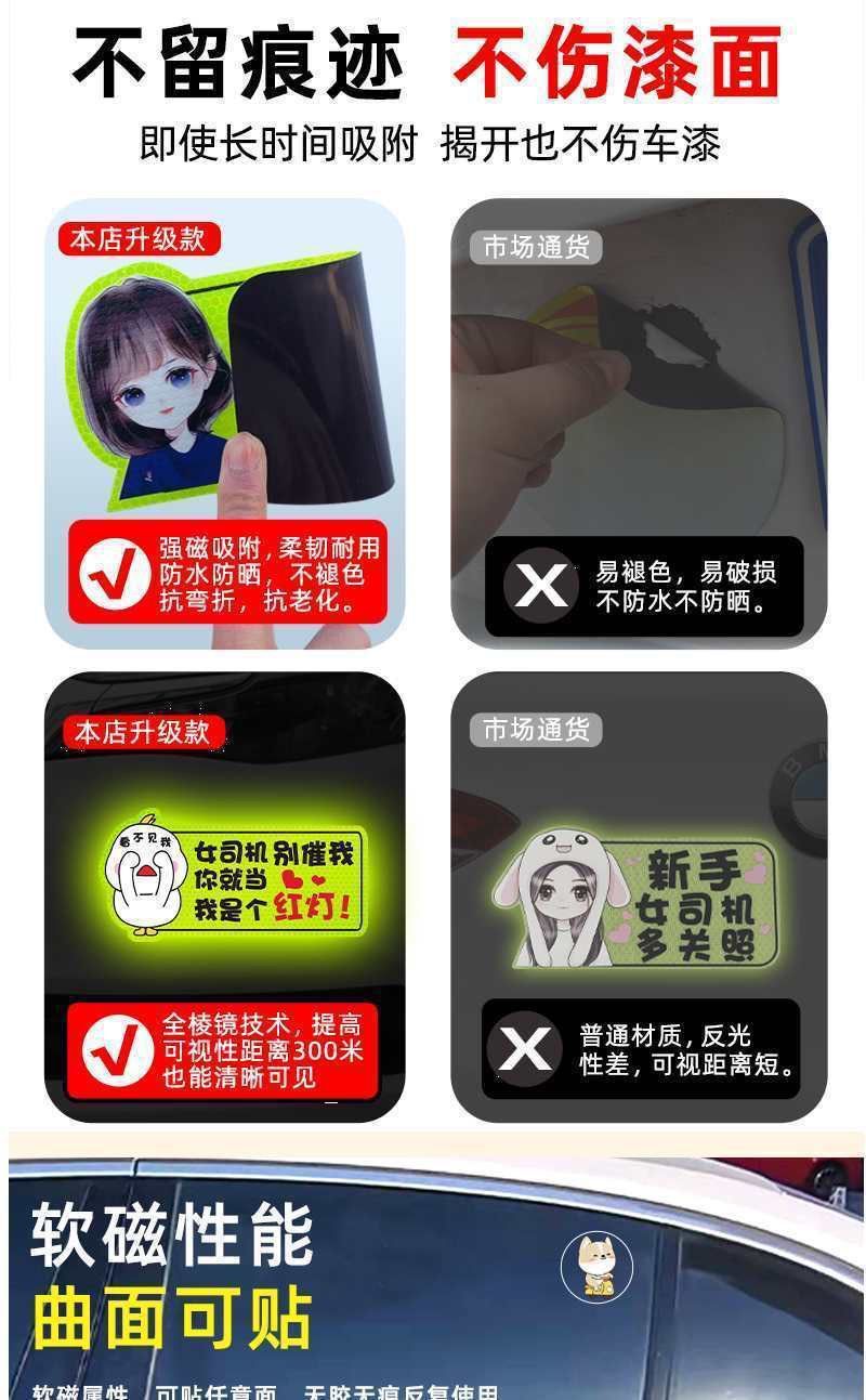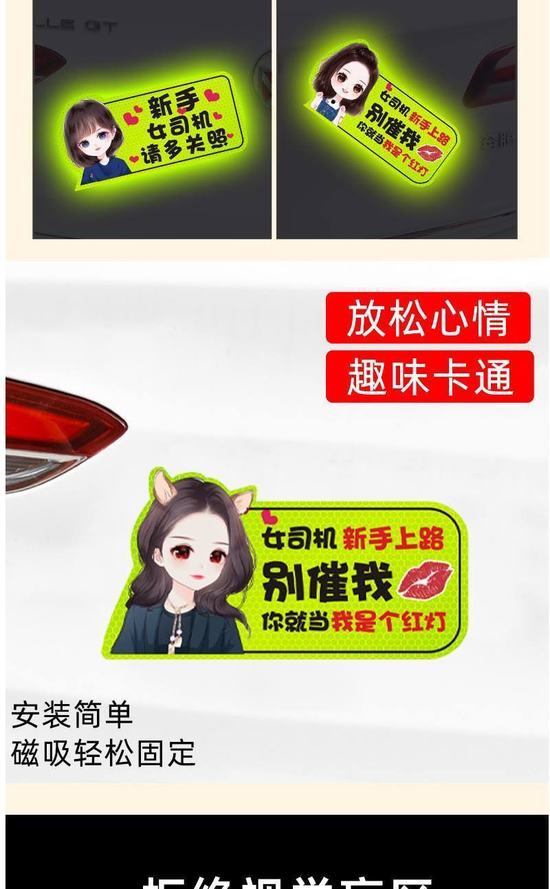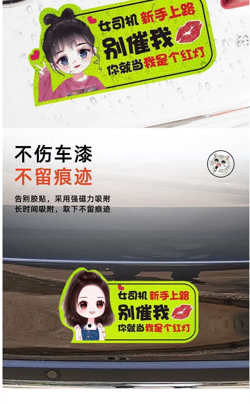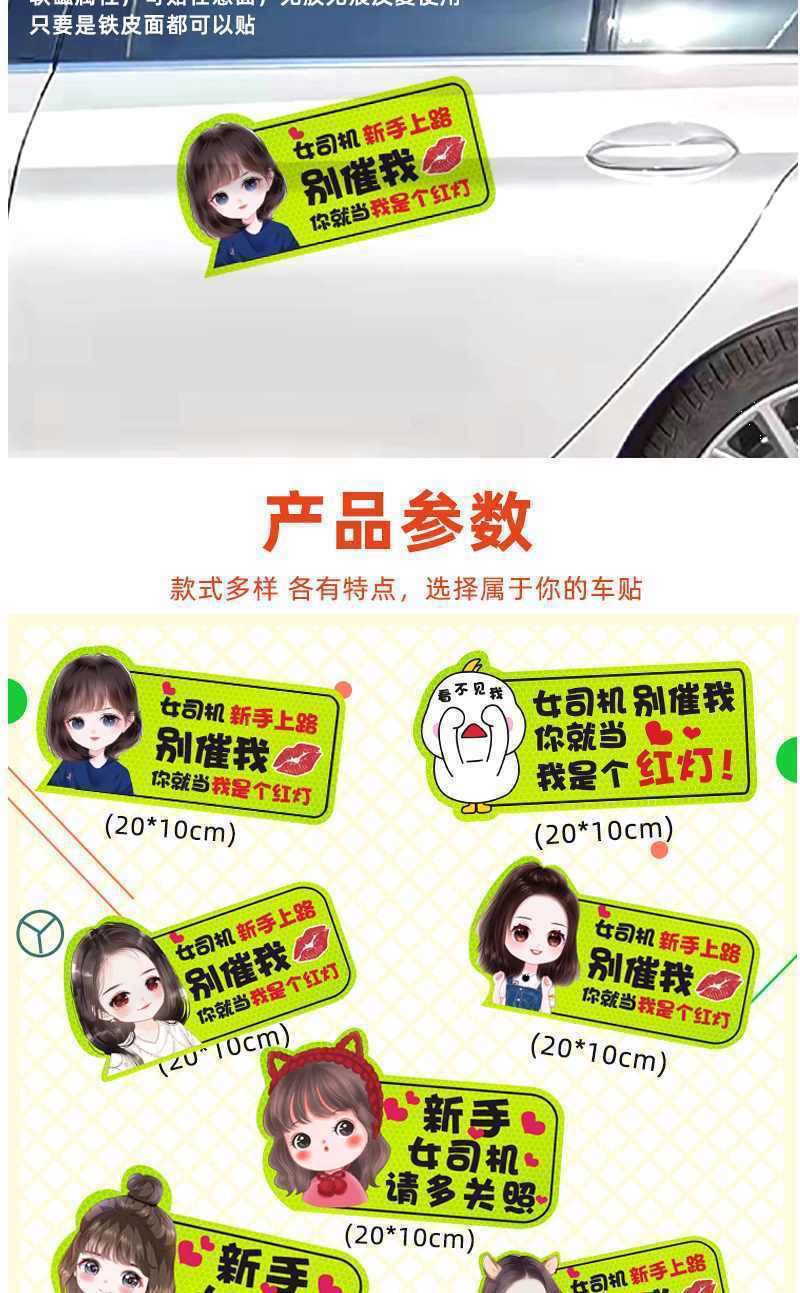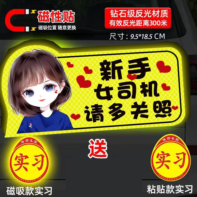도로 인턴십 기간 마그네틱 자동차 스티커 창조적 인 여성 운전자 자기 반사 재미있는 자동차 스티커 이 스티커 로고