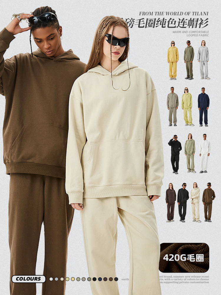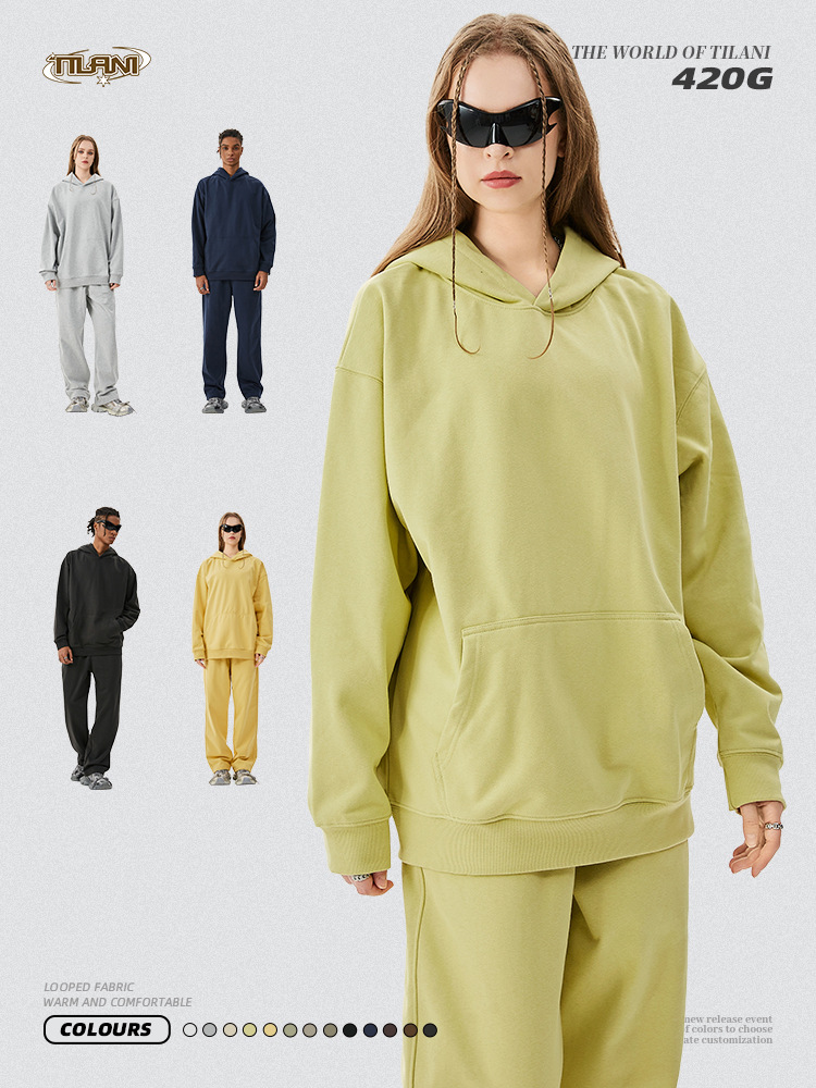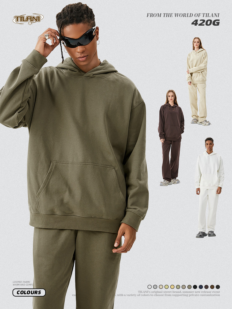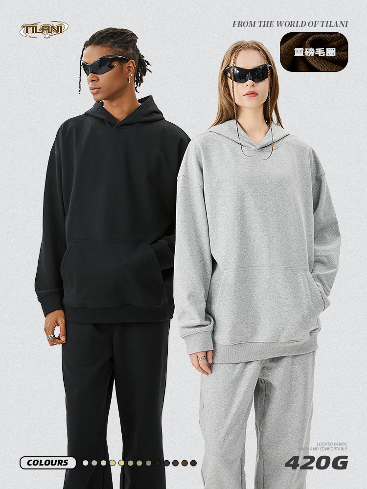 TILANI 남성복 2025 헤비웨이트 테리 스웨트 셔츠 아메리칸 트렌디 브랜드 캐주얼 루즈 스포츠 후드티 남성용 가을, 겨울 스웨트 셔츠