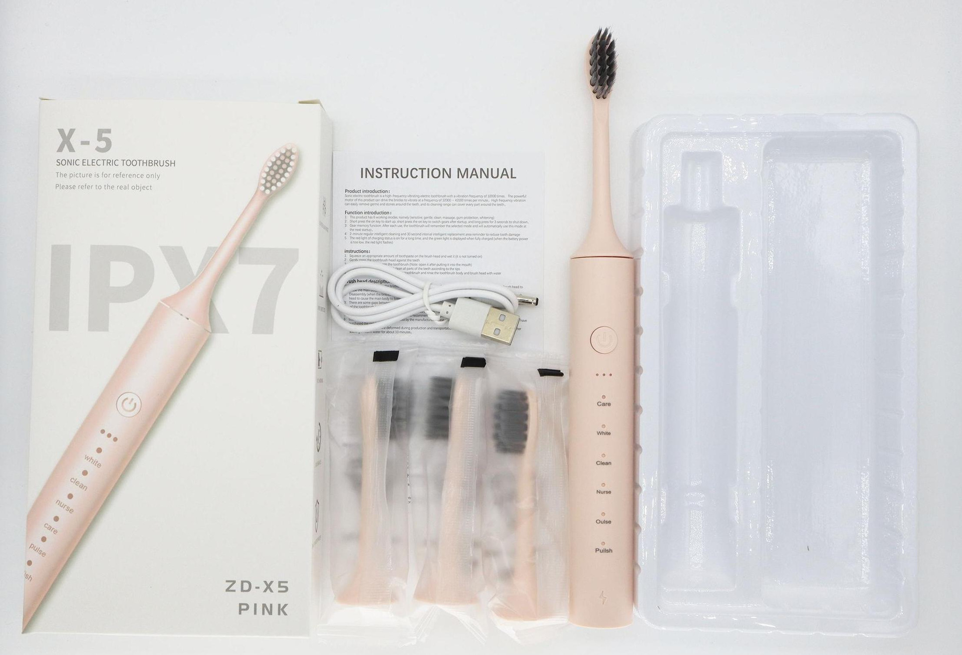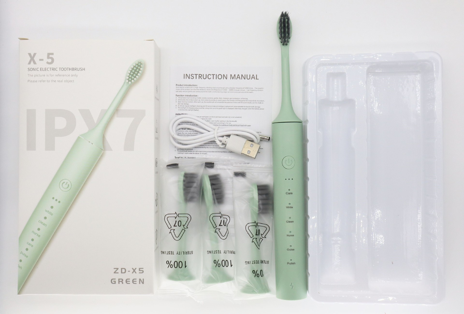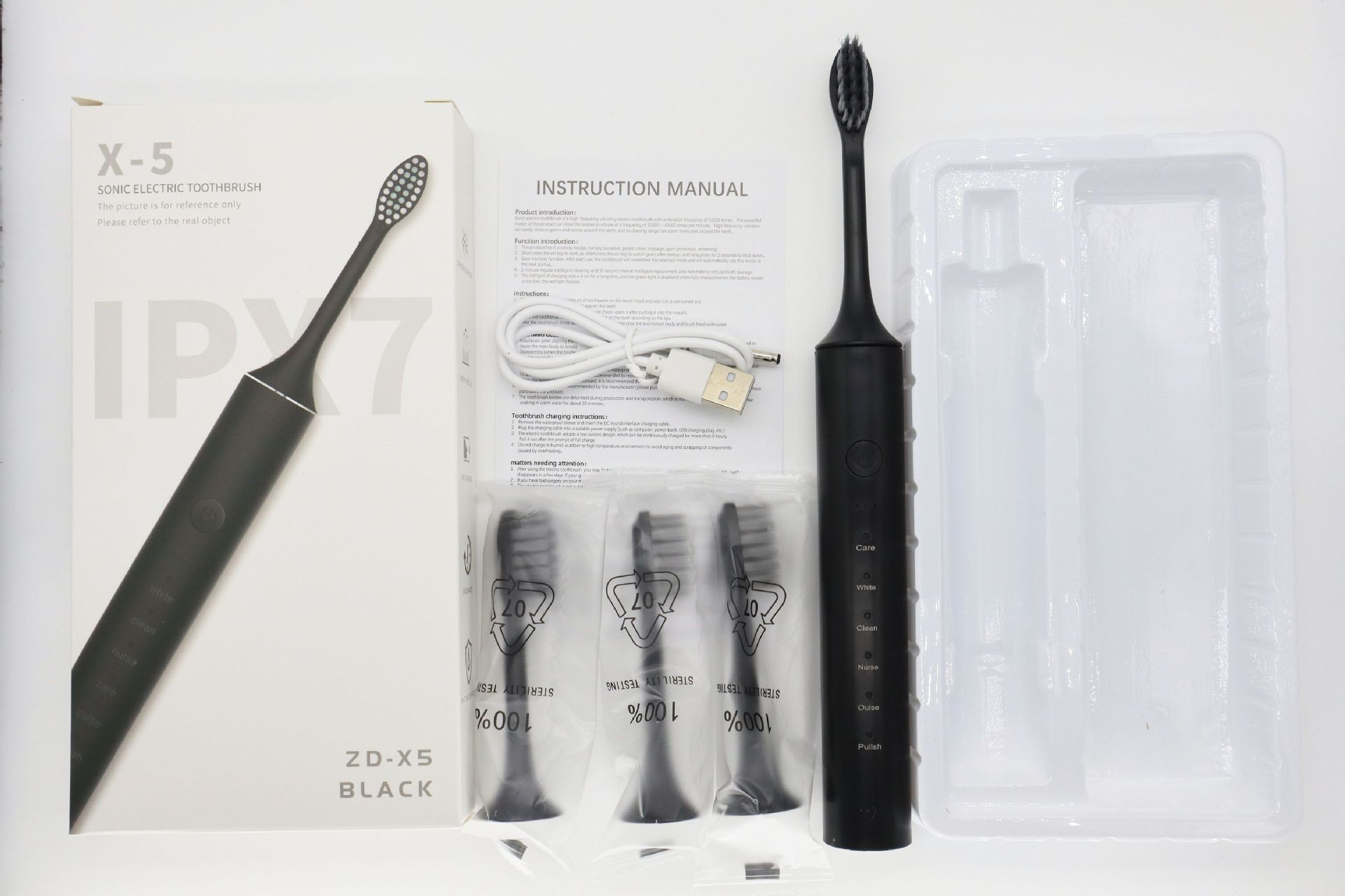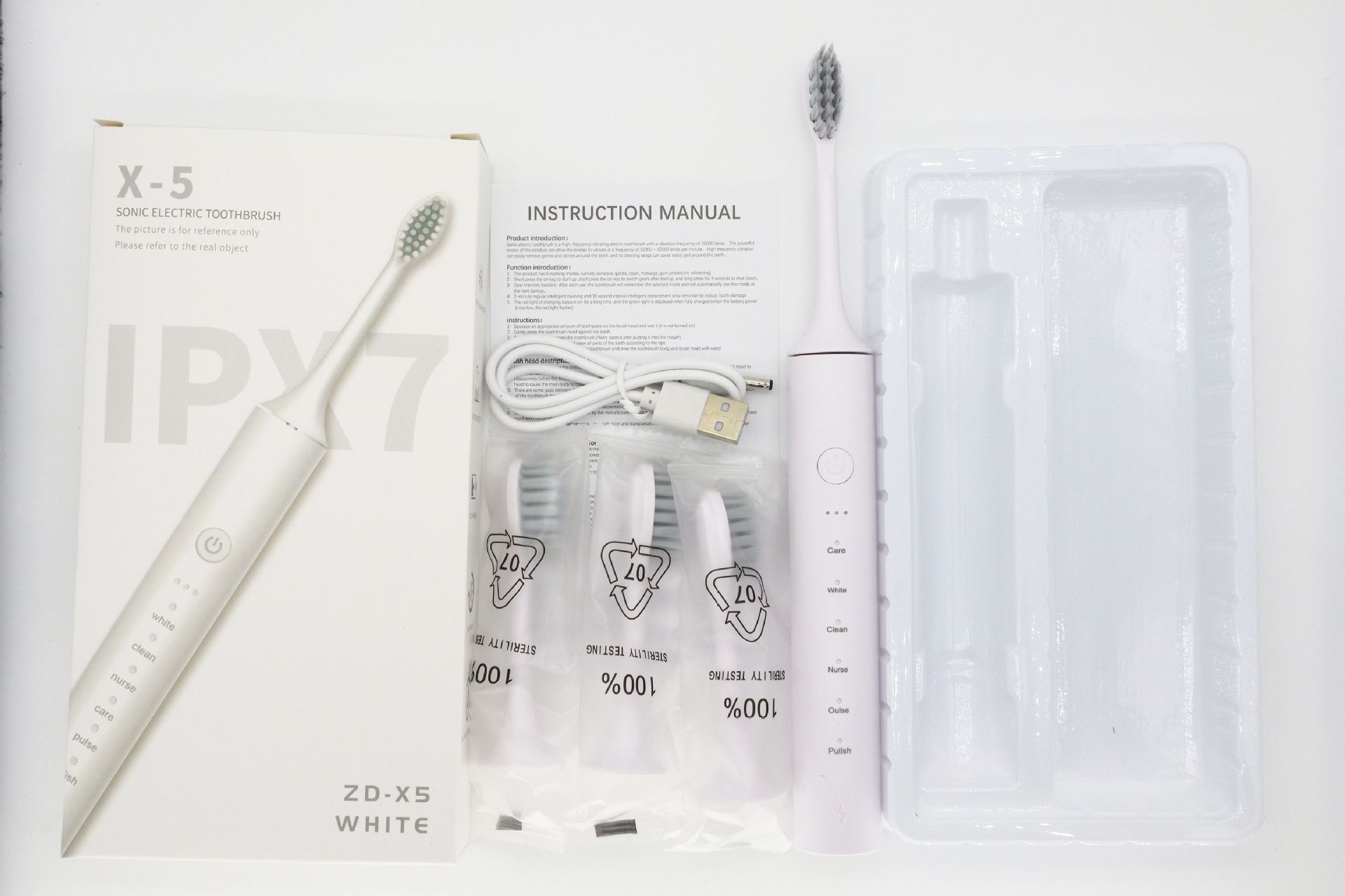 配件:主机+4刷头+USB充电线+说明书