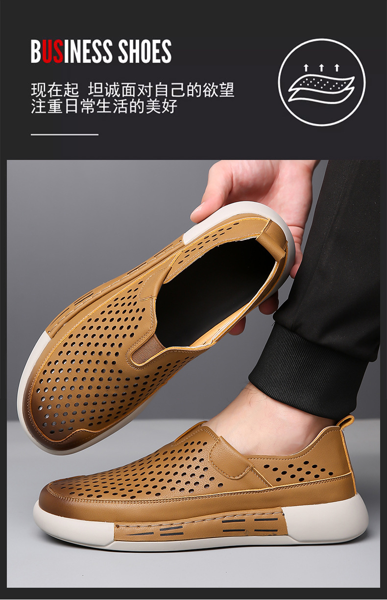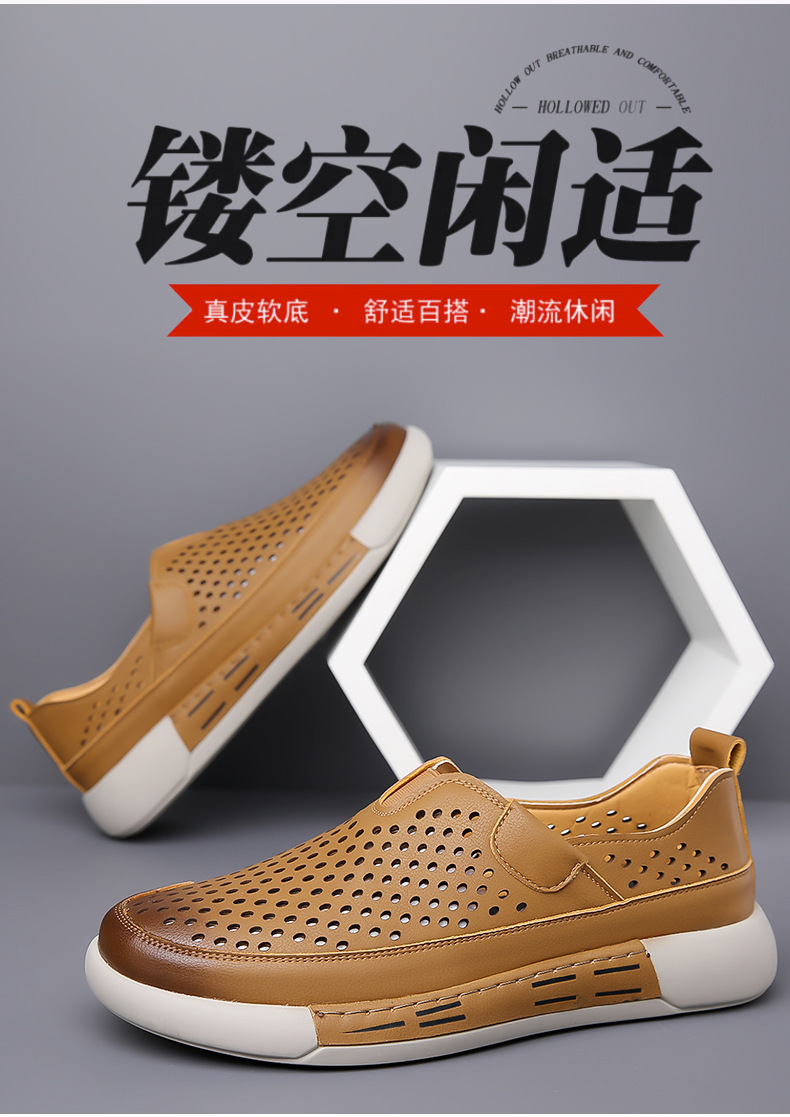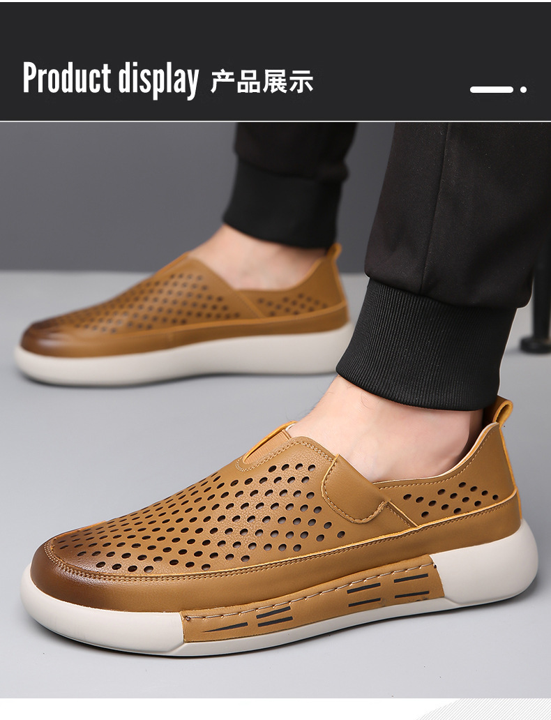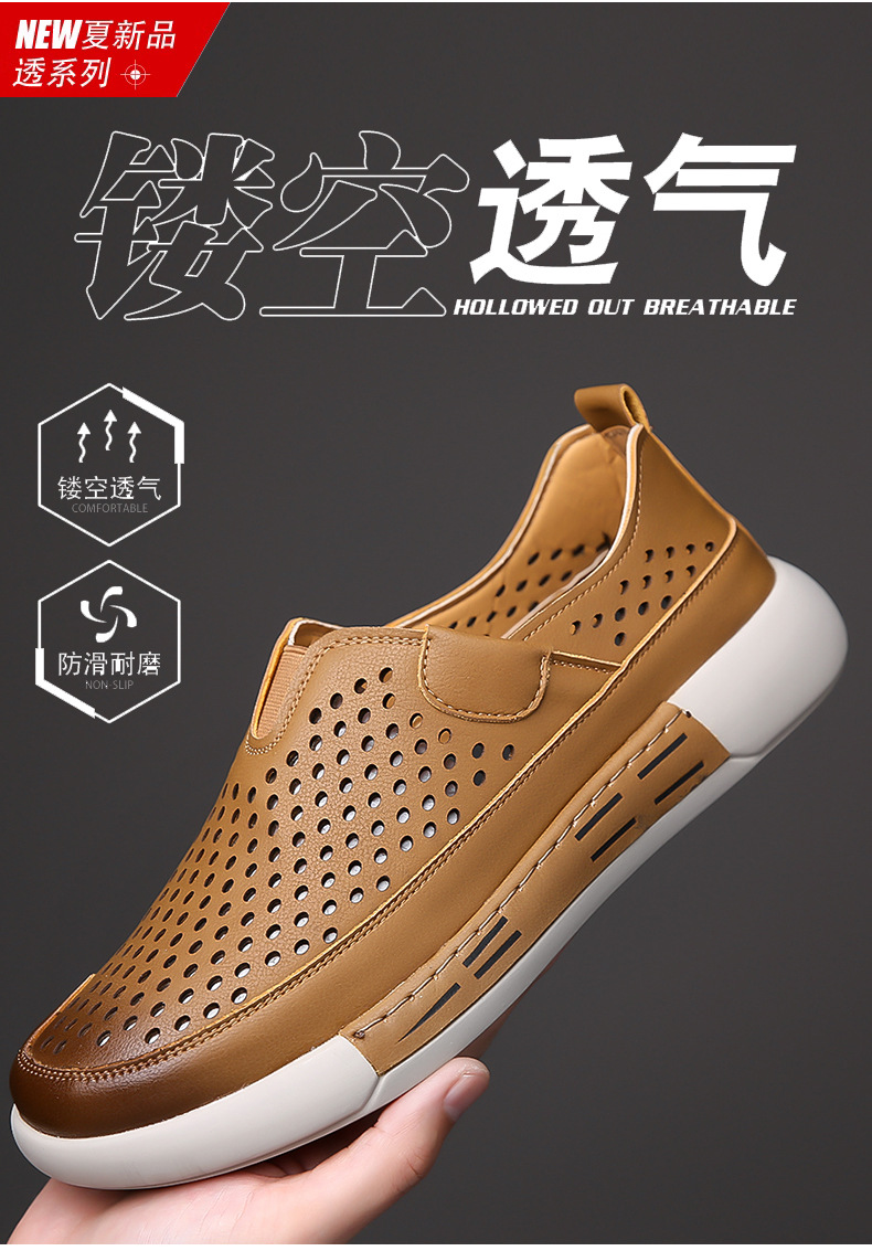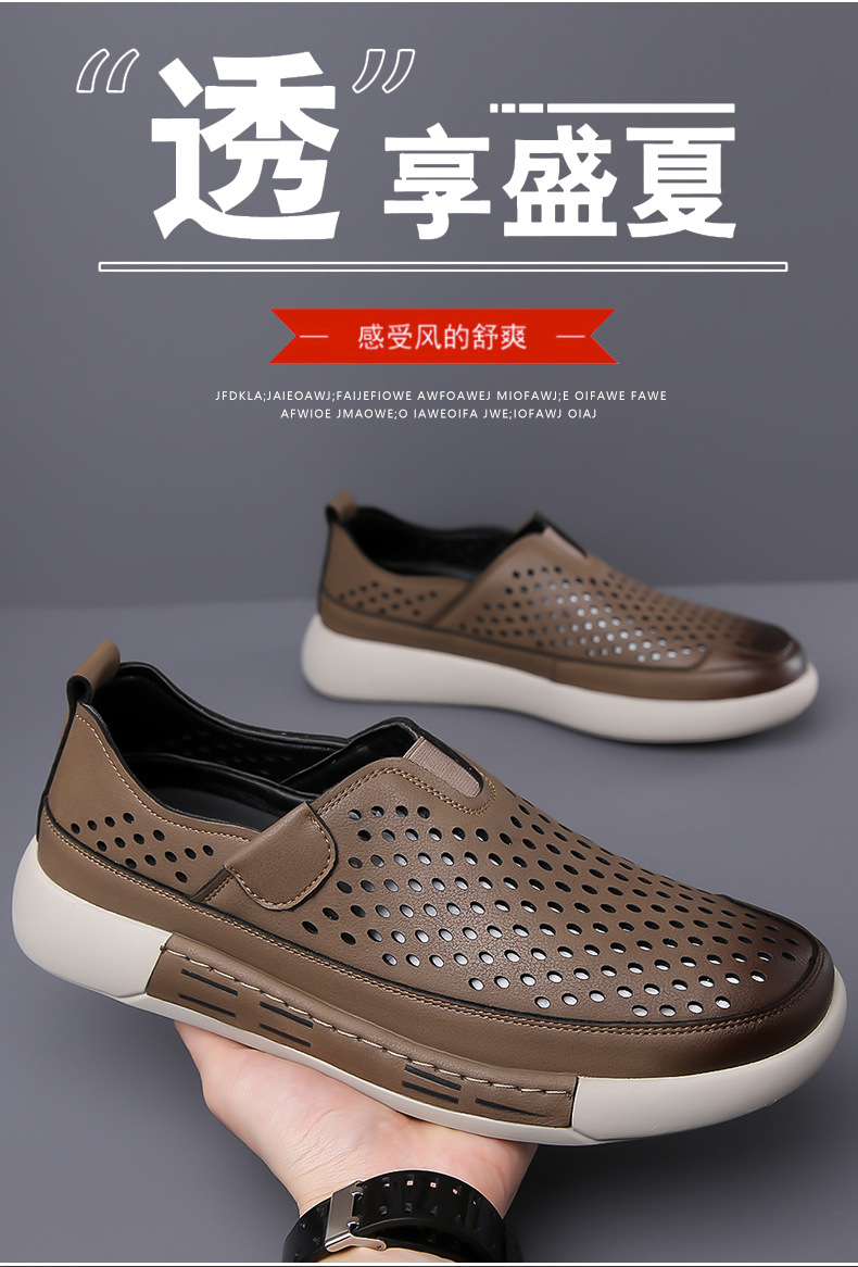 남성 신발 여름 새로운 정품 가죽 중공 캐주얼 가죽 신발 통기성 구멍 신발 트렌드 부드러운 단독 야외 스포츠 신발
