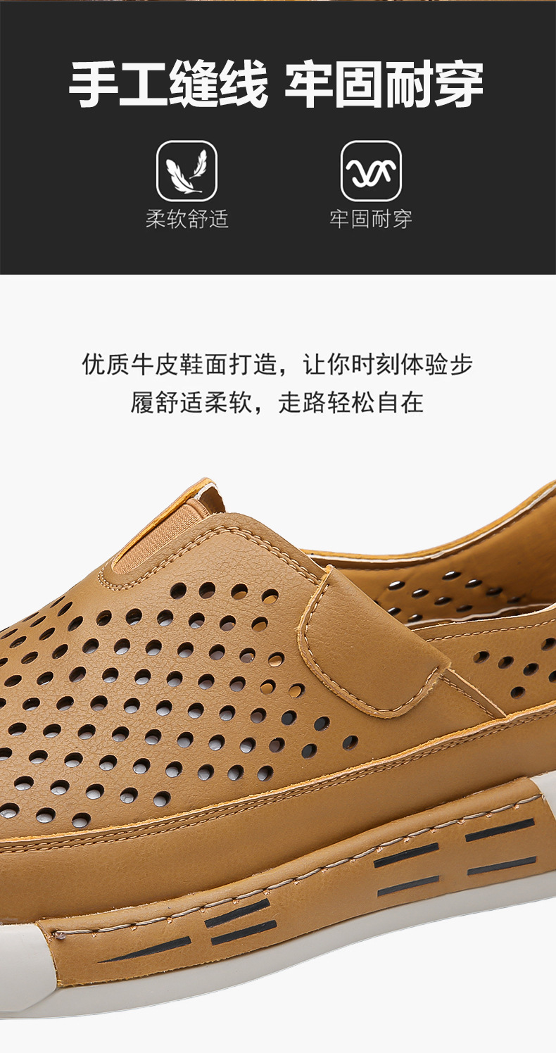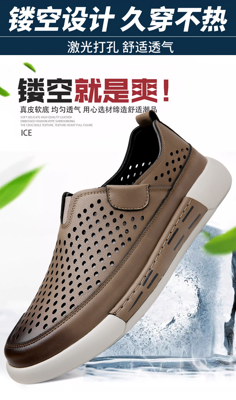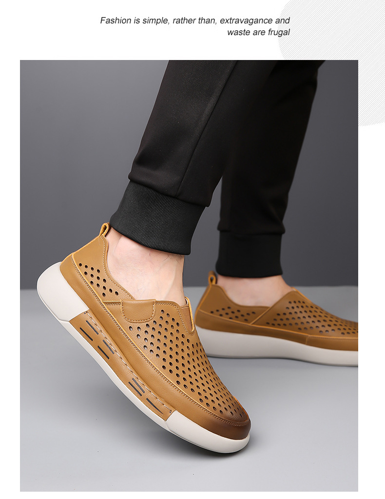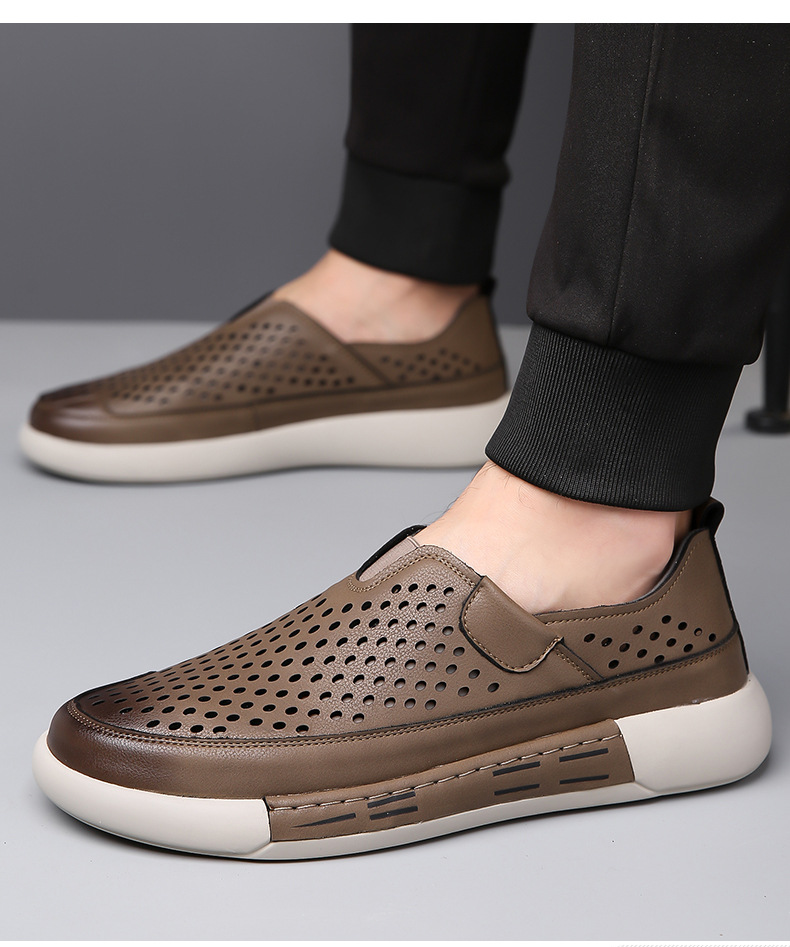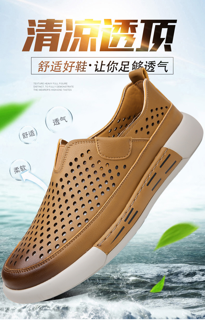 남성 신발 여름 새로운 정품 가죽 중공 캐주얼 가죽 신발 통기성 구멍 신발 트렌드 부드러운 단독 야외 스포츠 신발