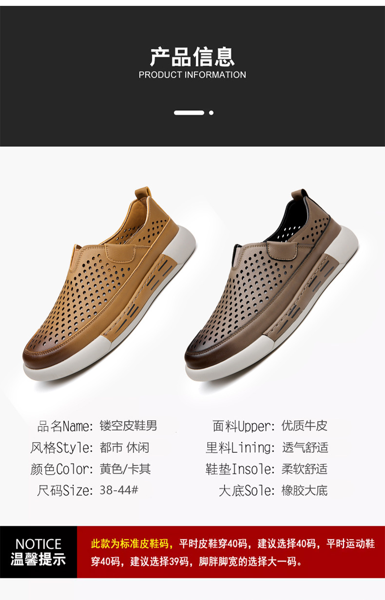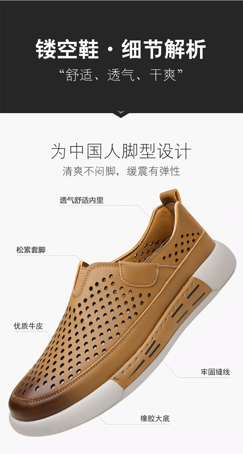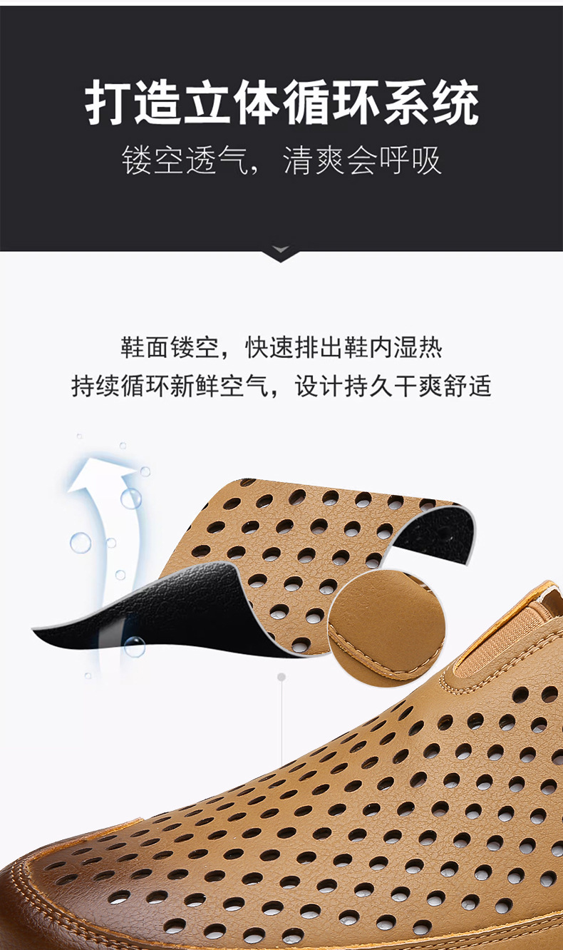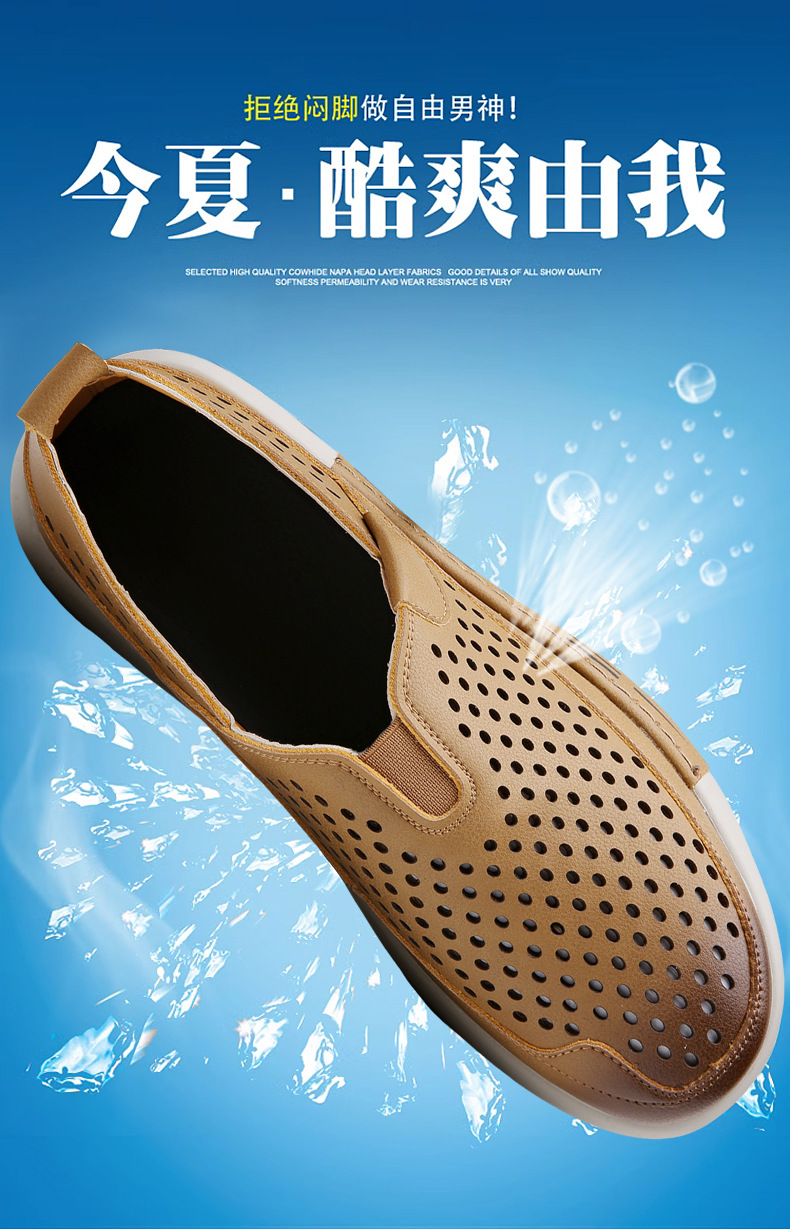 남성 신발 여름 새로운 정품 가죽 중공 캐주얼 가죽 신발 통기성 구멍 신발 트렌드 부드러운 단독 야외 스포츠 신발