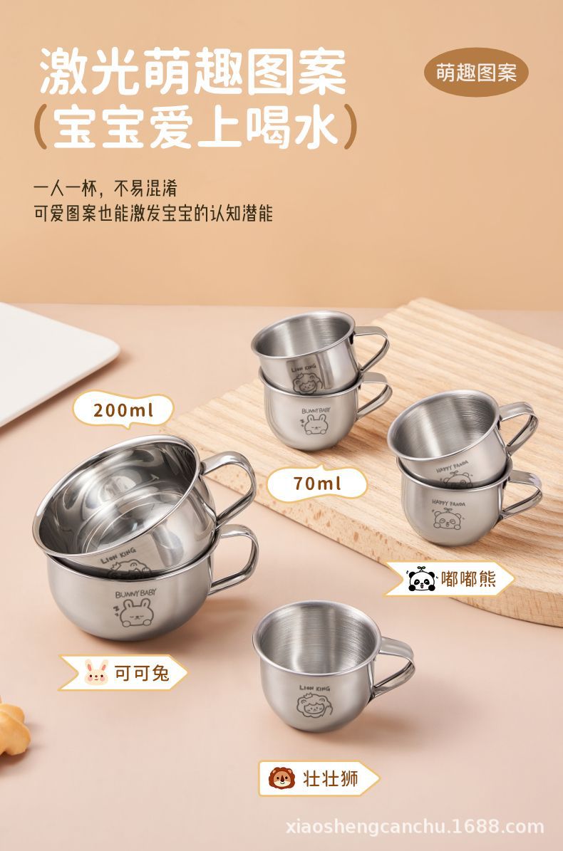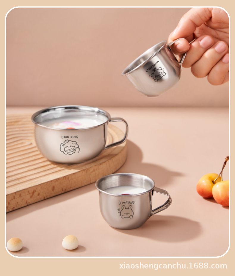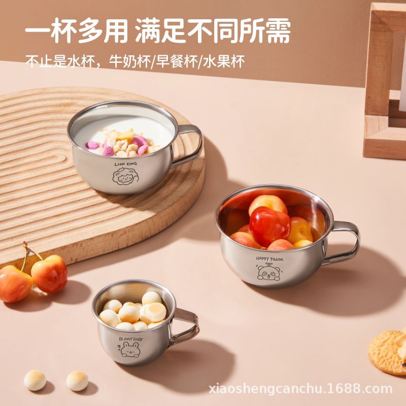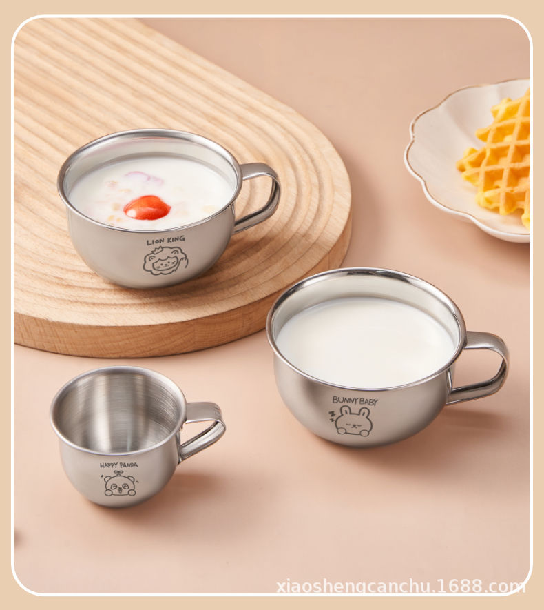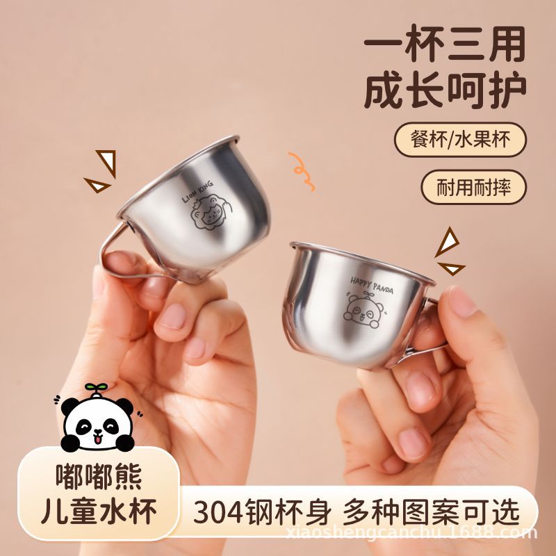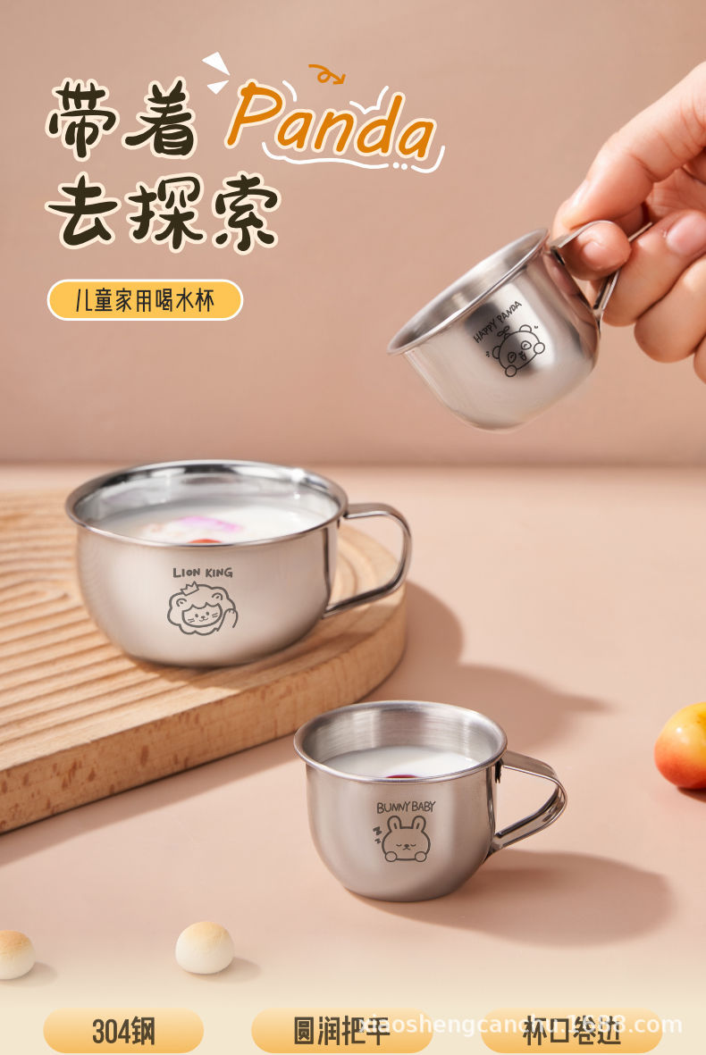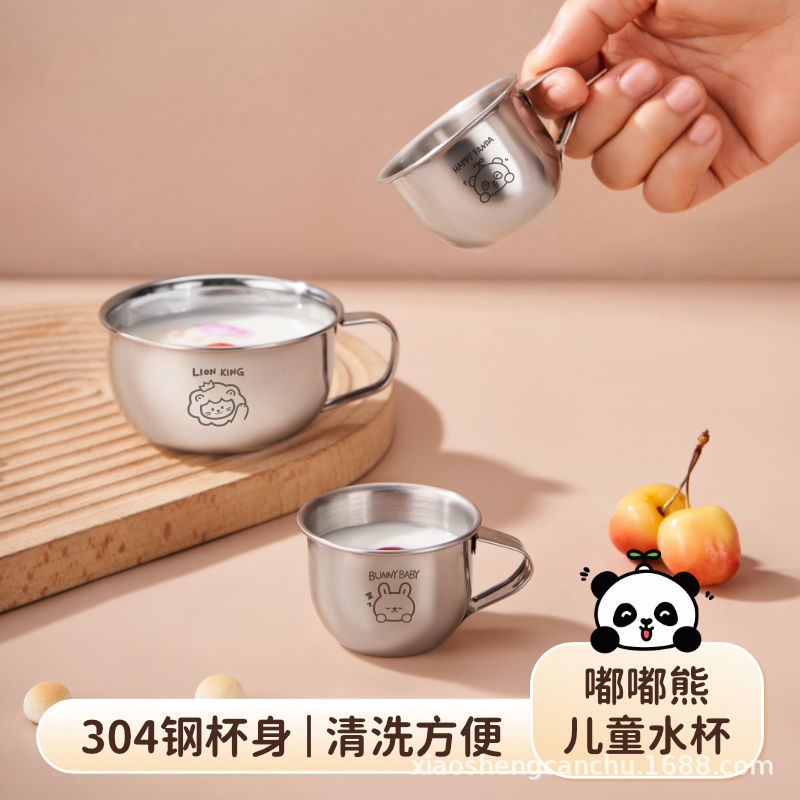 손잡이를 가진 어린이 우유 컵 스테인리스 물 컵 가정용 아기 마시는 식기 컵 만화 304 미니 컵
