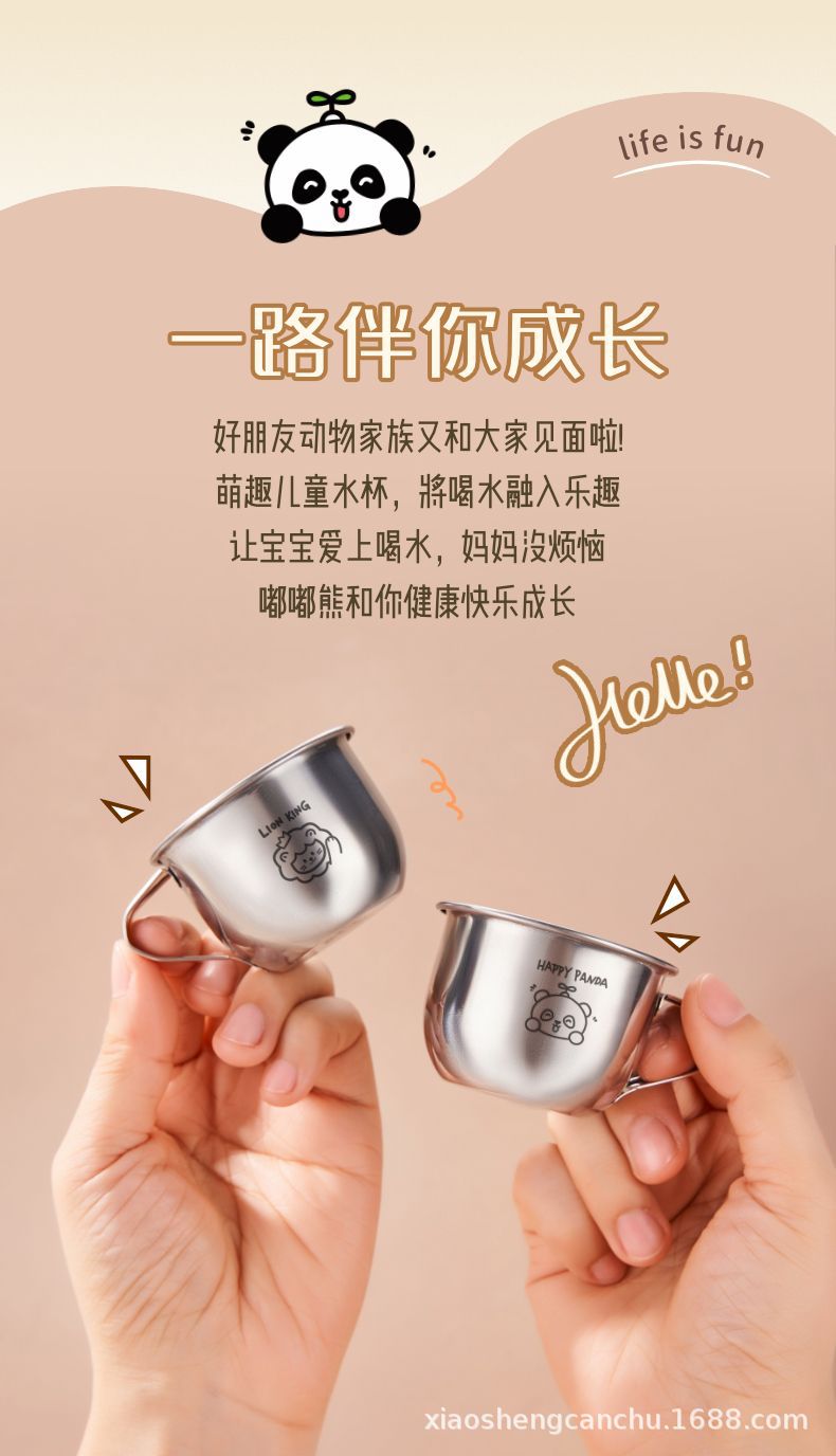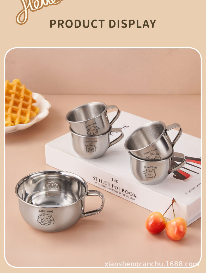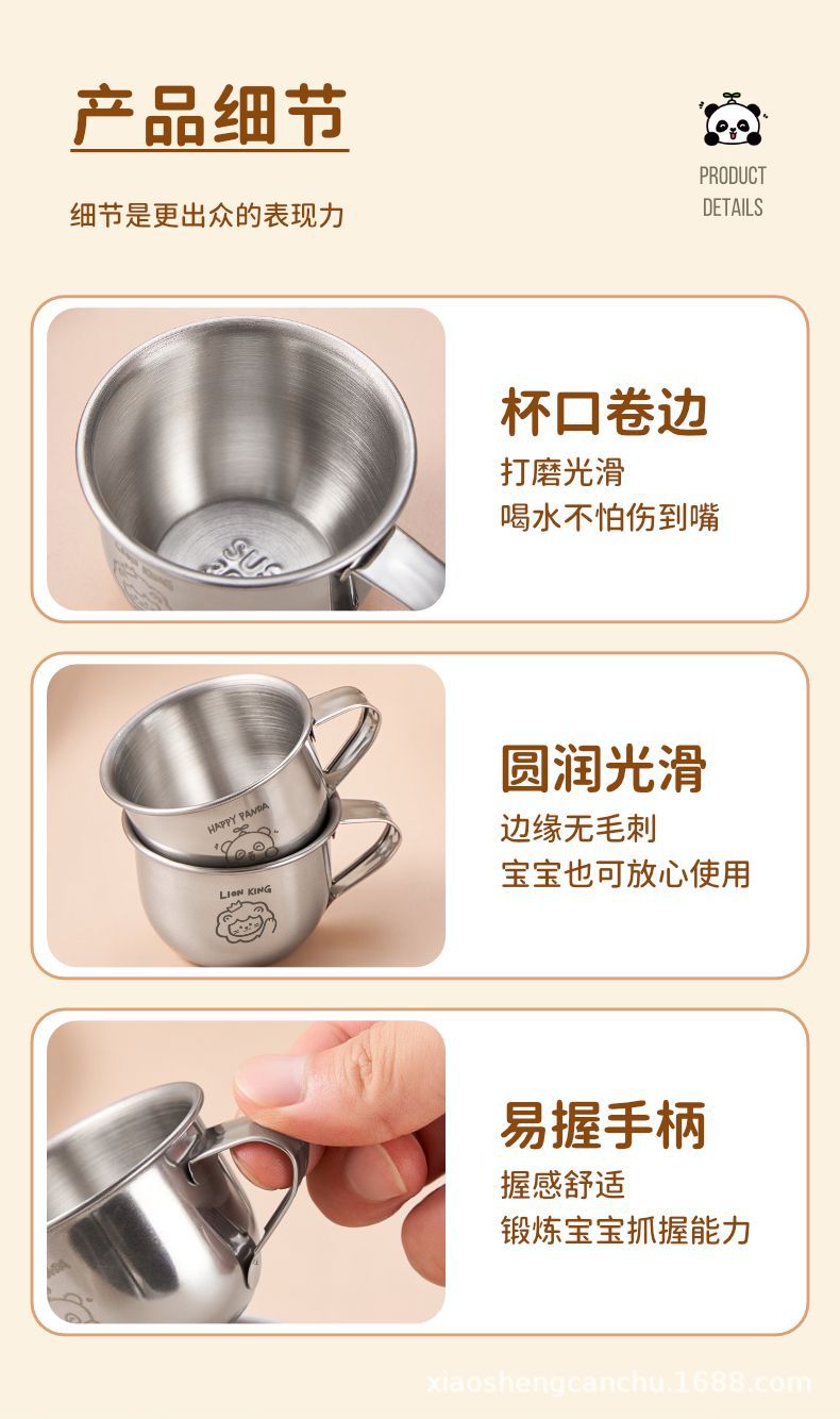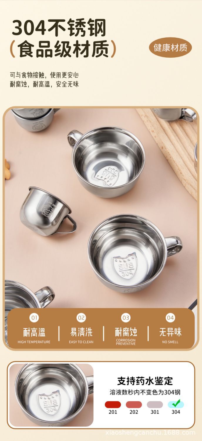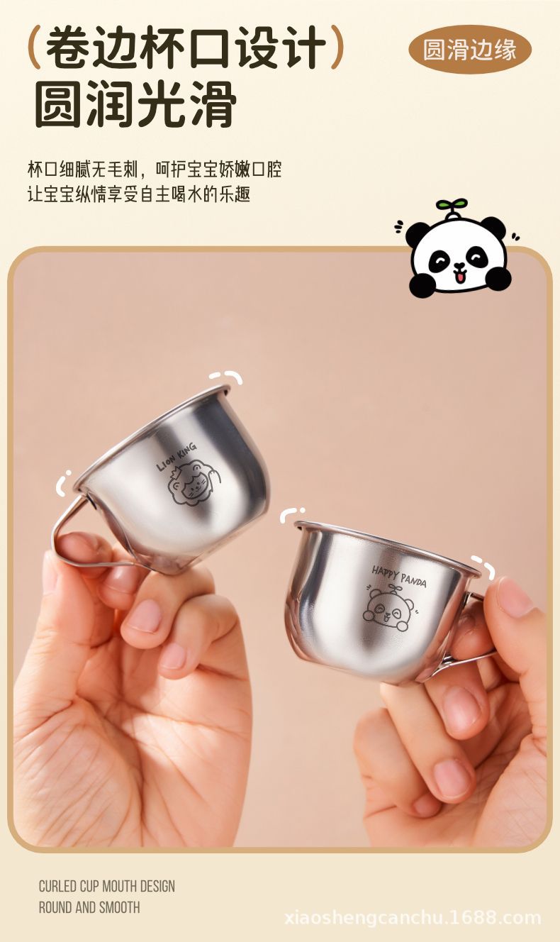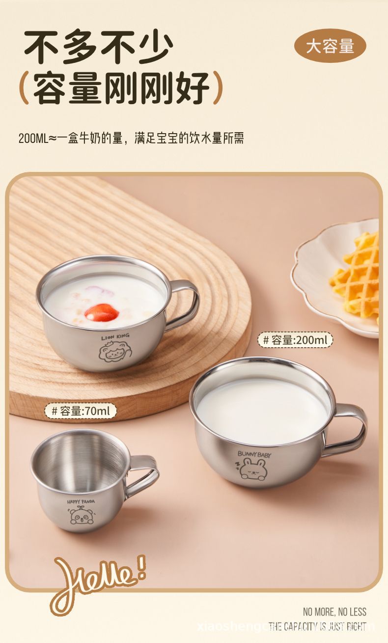 손잡이를 가진 어린이 우유 컵 스테인리스 물 컵 가정용 아기 마시는 식기 컵 만화 304 미니 컵