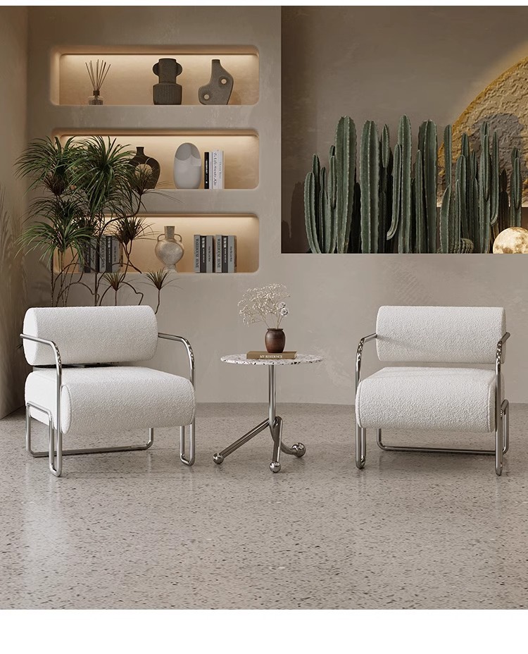 오리지널 버전 : 스테인레스 스틸 소파 의자 [트와일라잇 화이트-양 벨벳]