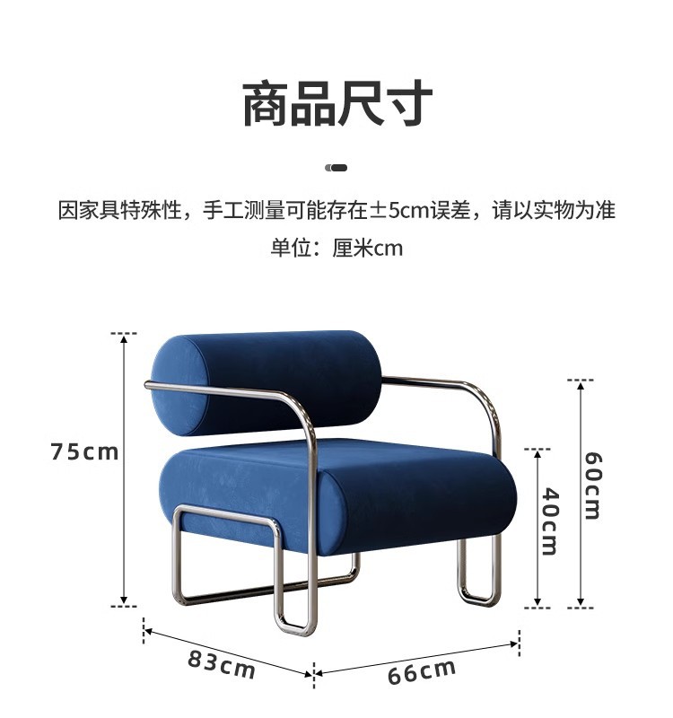 오리지널 버전: 스테인레스 스틸 소파 의자 [클라인 블루 프로스트 벨벳]