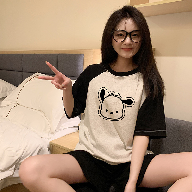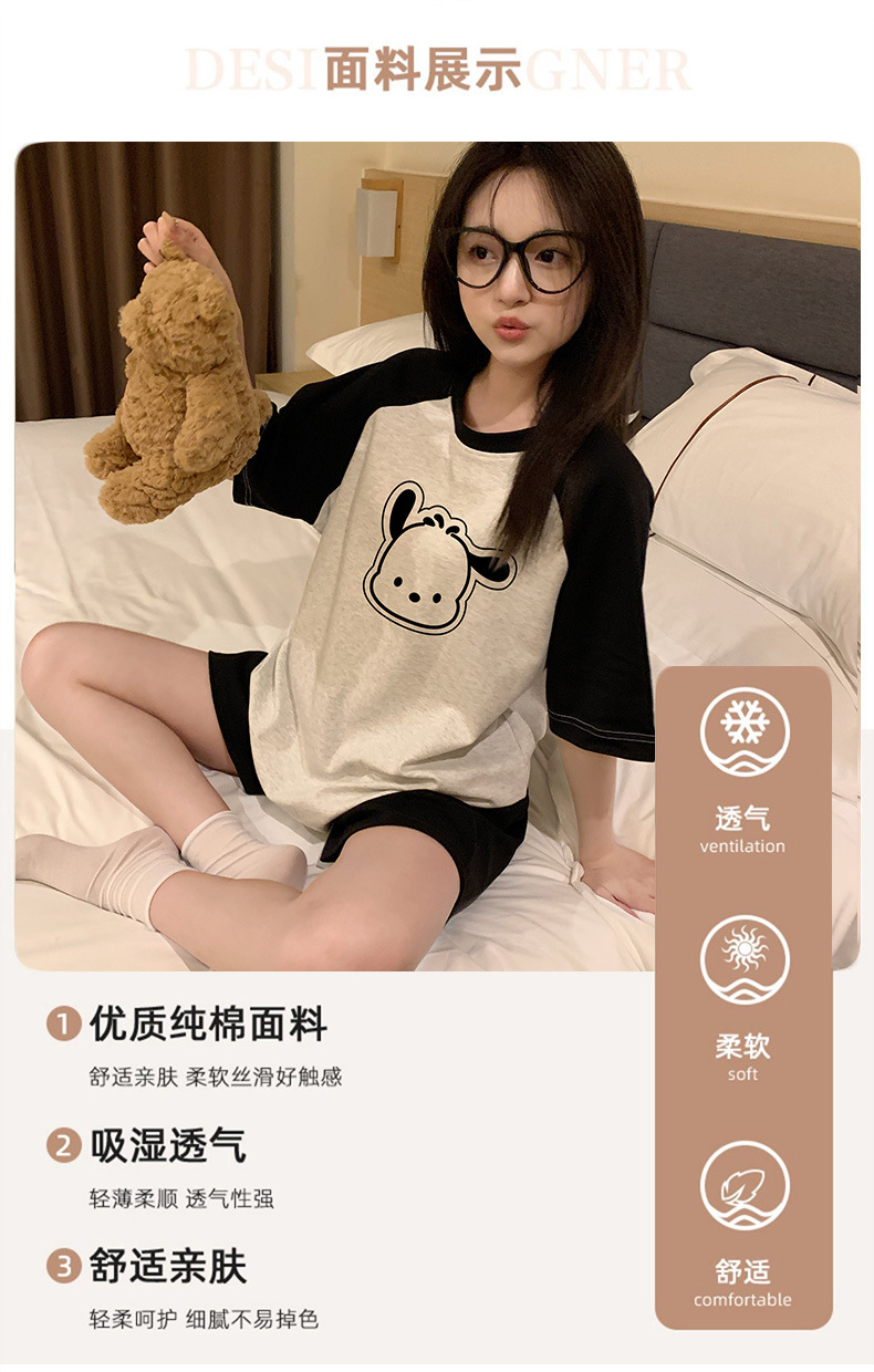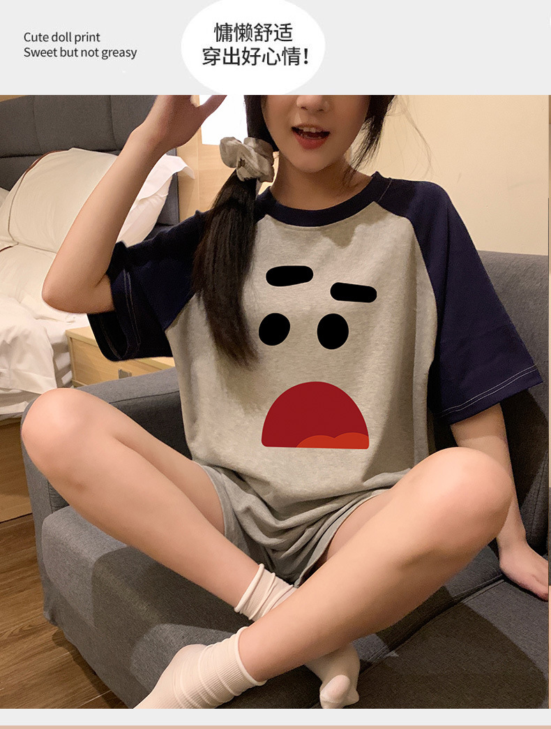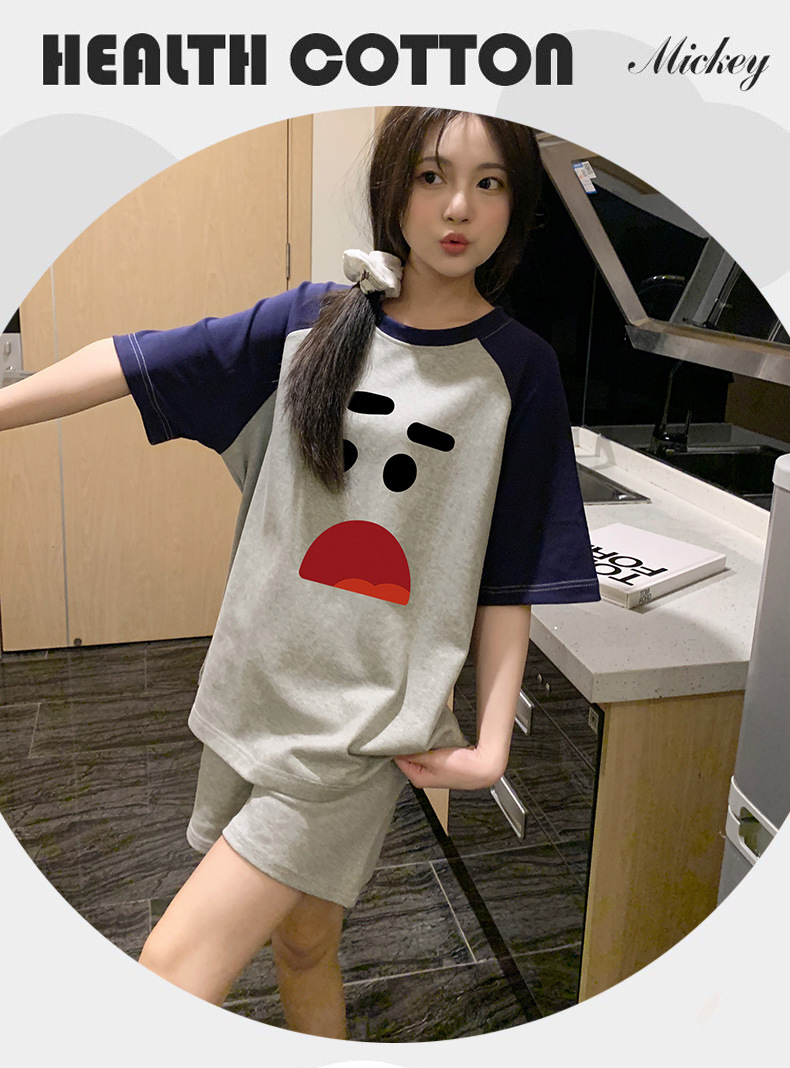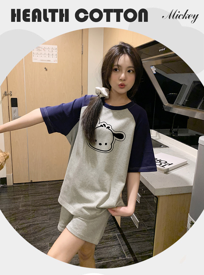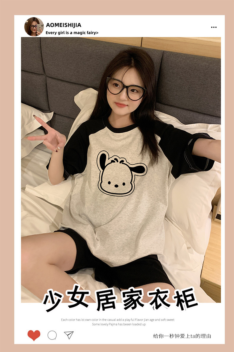 여름 여성을 위한 인터넷 연예인 인기 순면 잠옷 새로운 스타일 만화 학생 반팔 반바지 홈웨어 세트는 트렌디하게 착용 가능