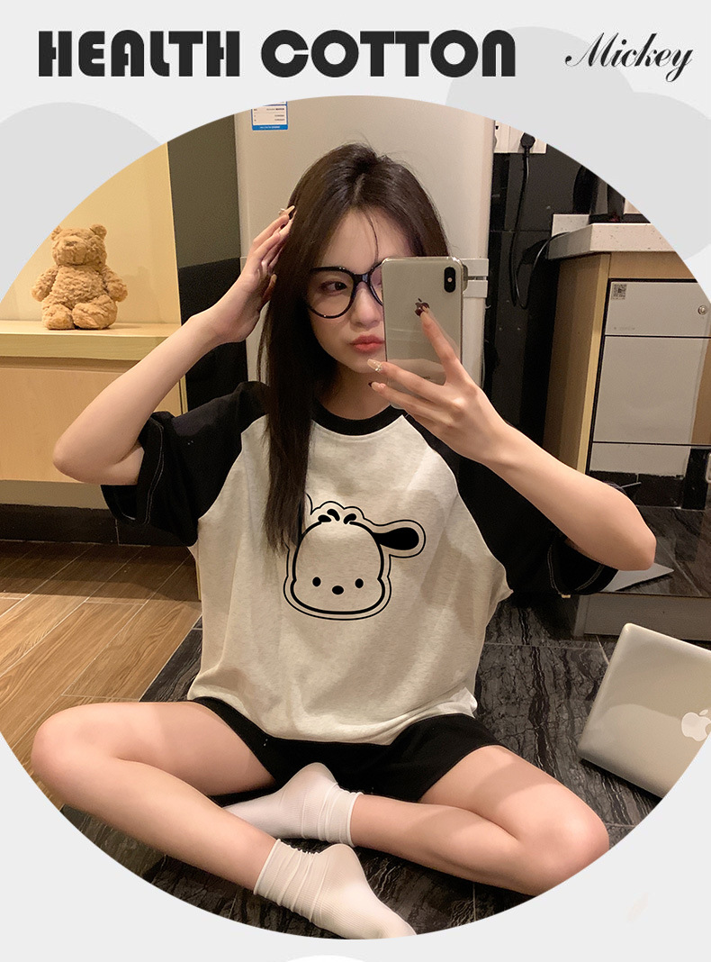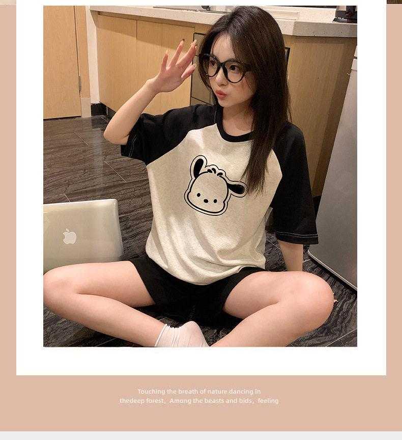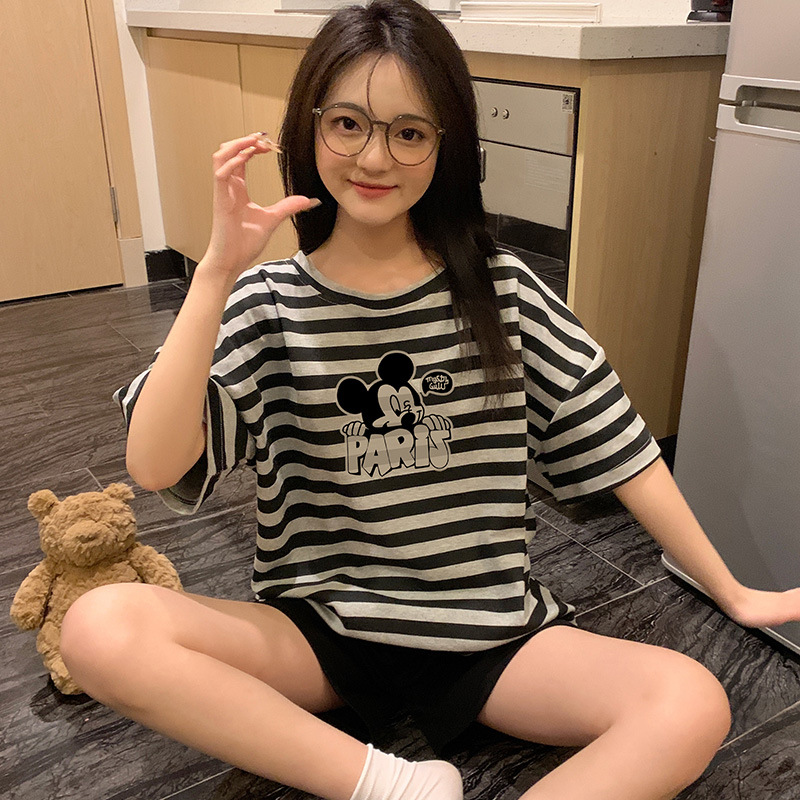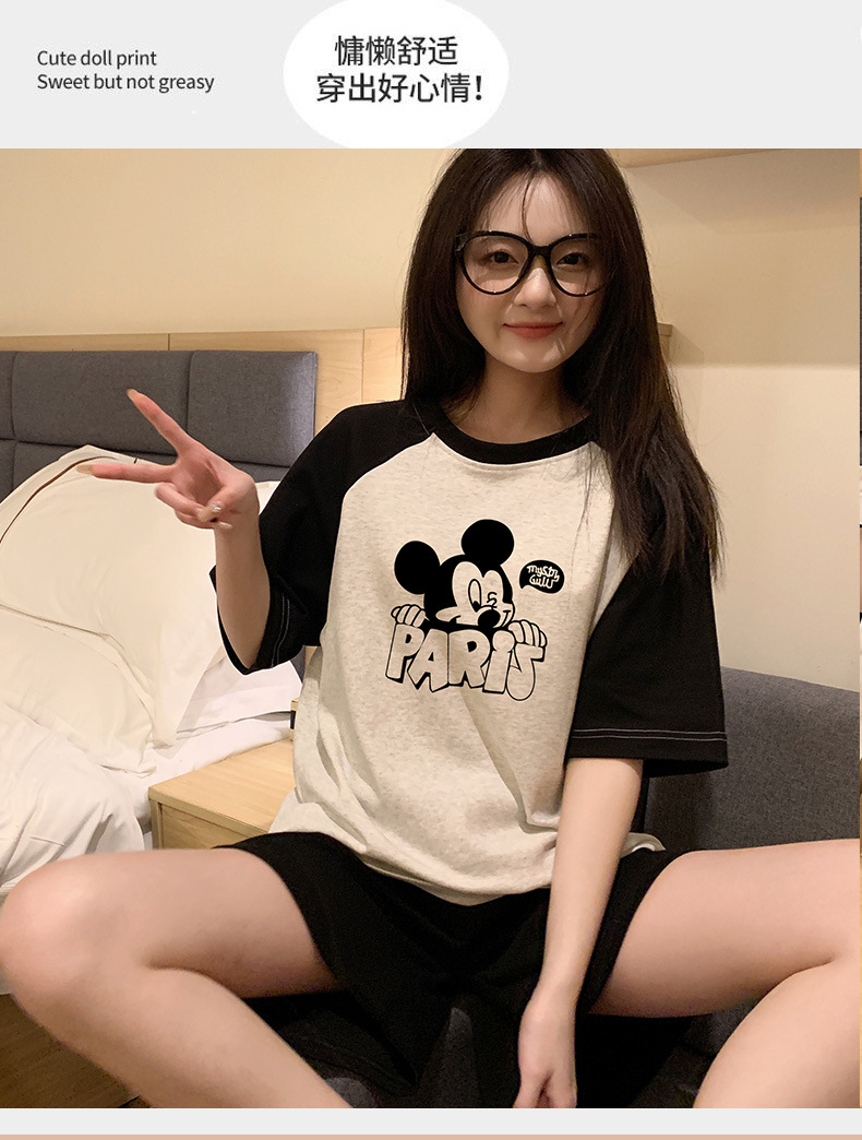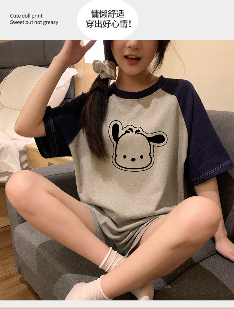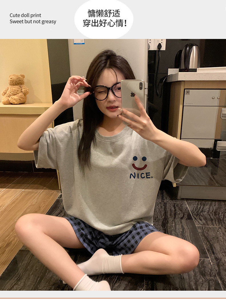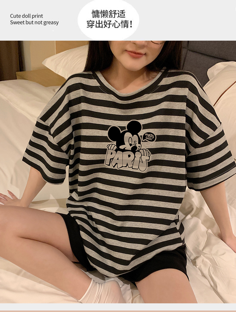 여름 여성을 위한 인터넷 연예인 인기 순면 잠옷 새로운 스타일 만화 학생 반팔 반바지 홈웨어 세트는 트렌디하게 착용 가능