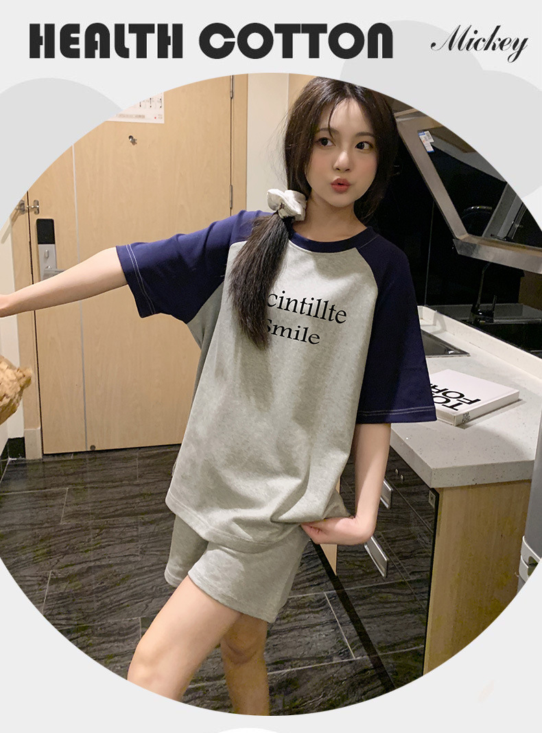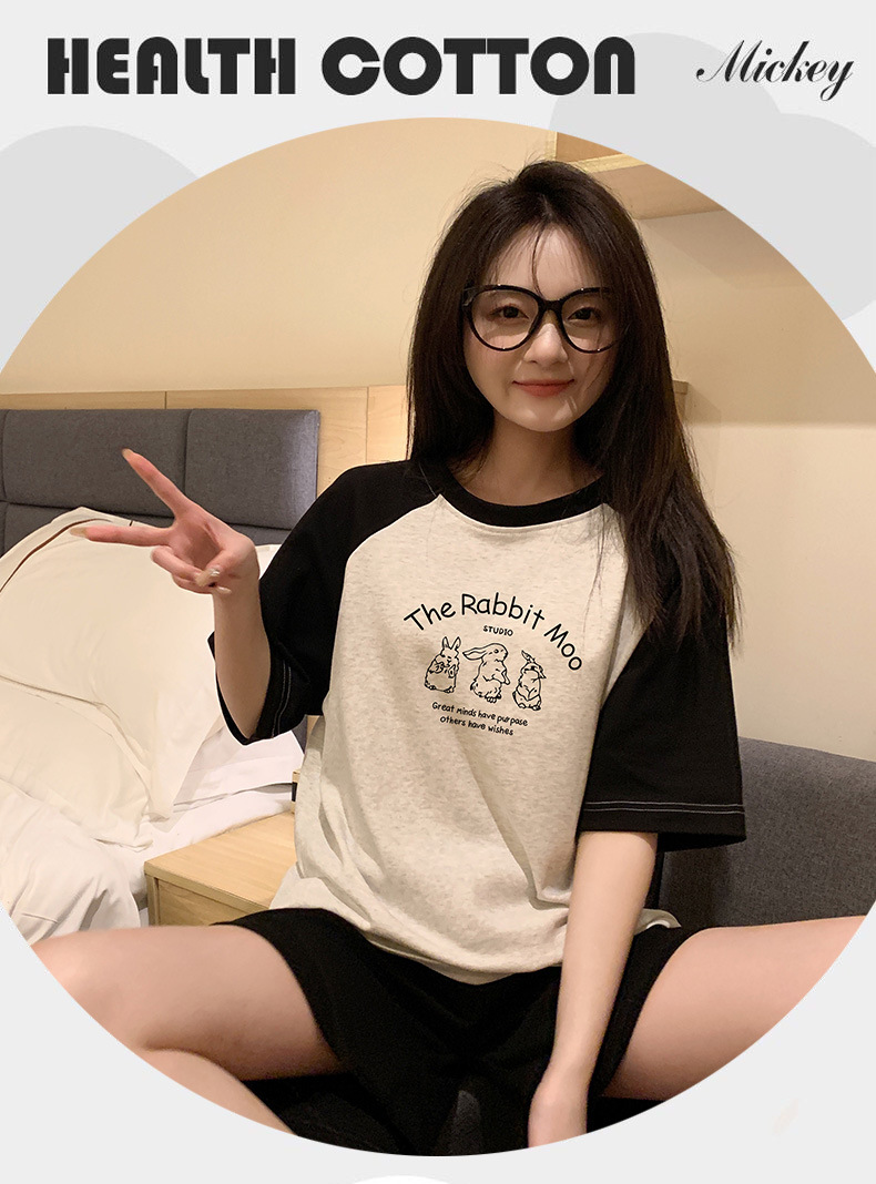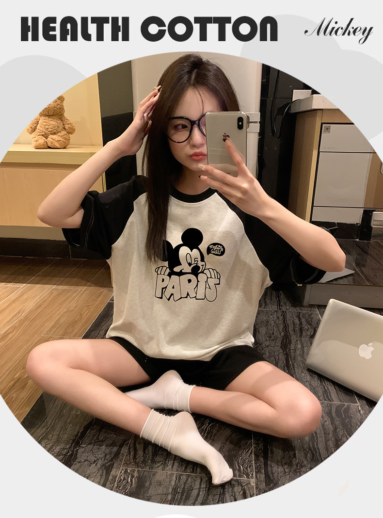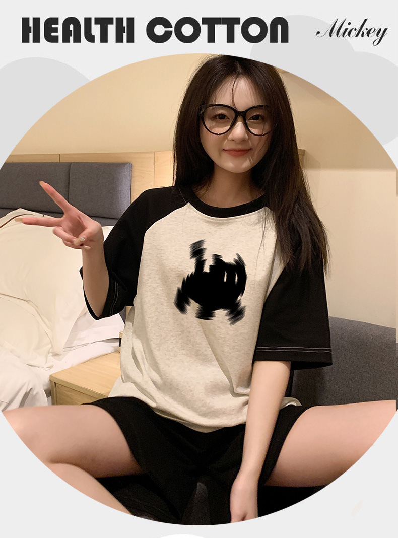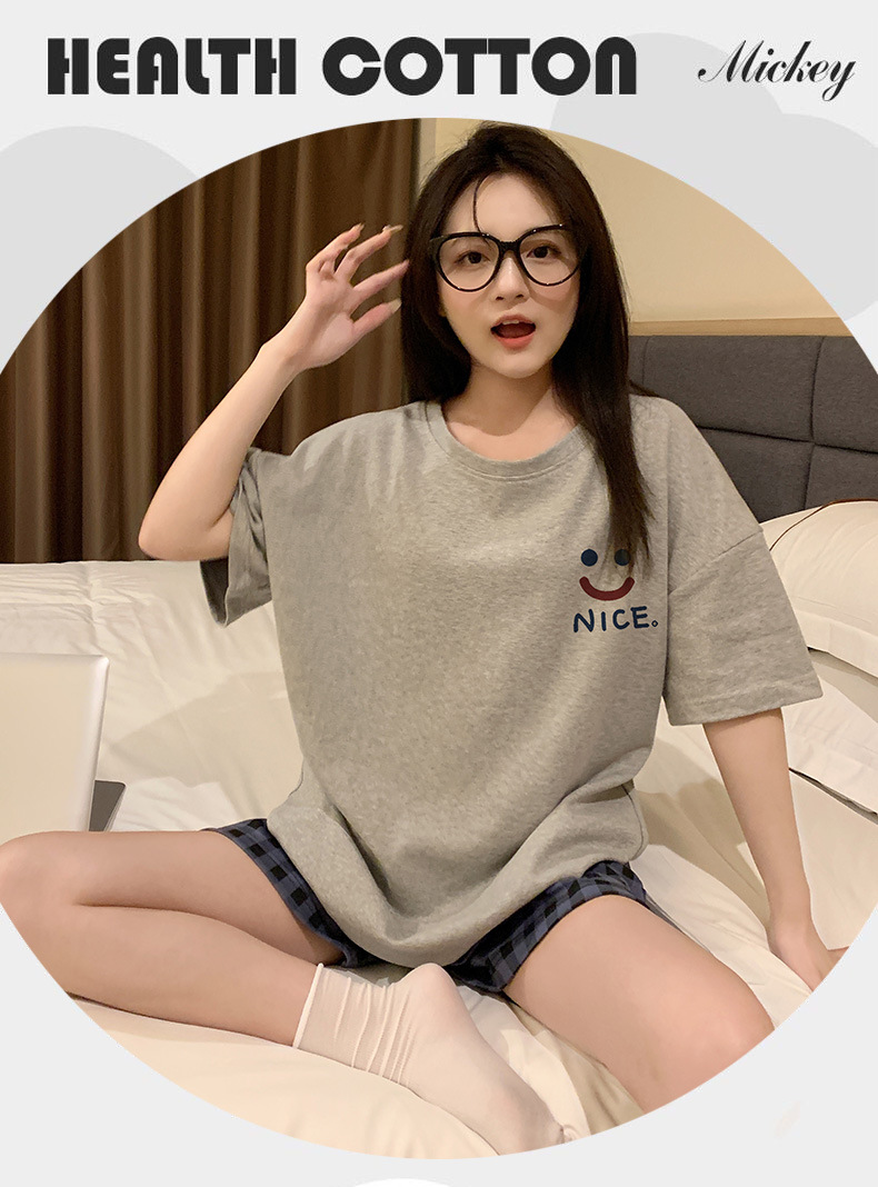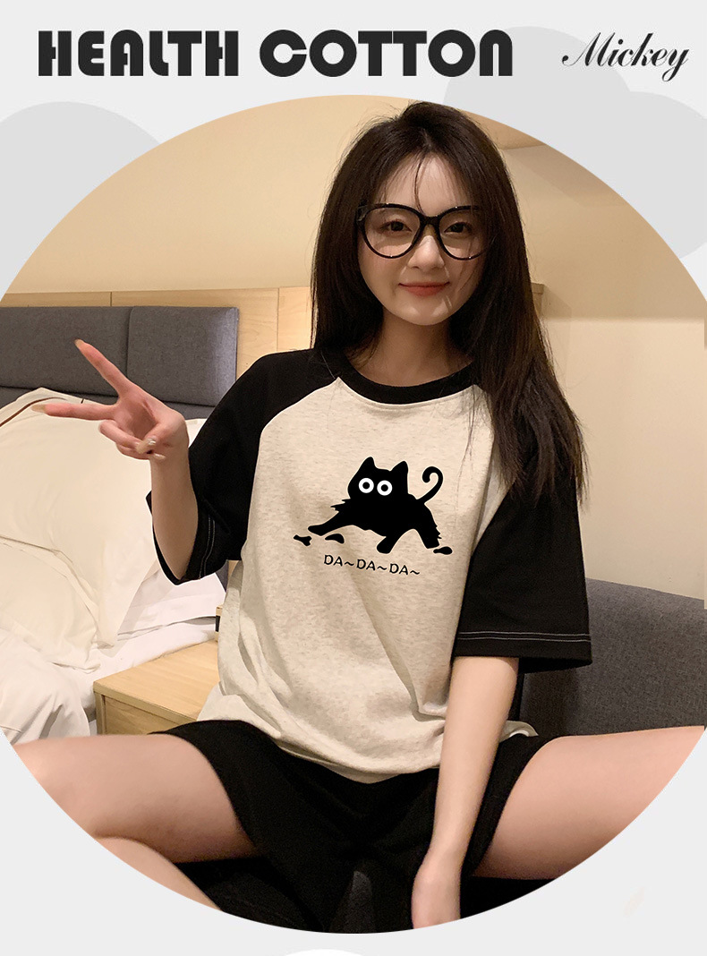 여름 여성을 위한 인터넷 연예인 인기 순면 잠옷 새로운 스타일 만화 학생 반팔 반바지 홈웨어 세트는 트렌디하게 착용 가능