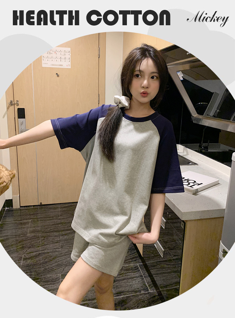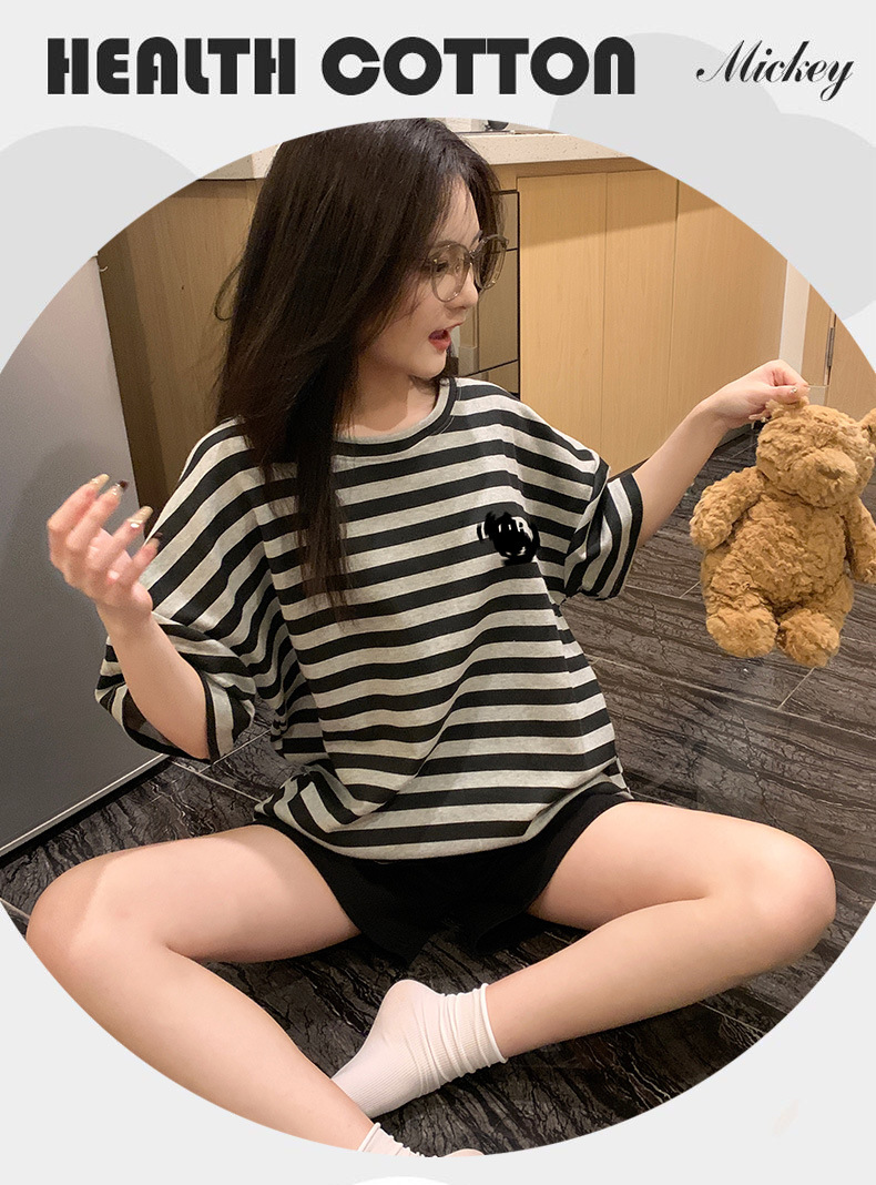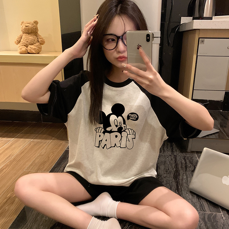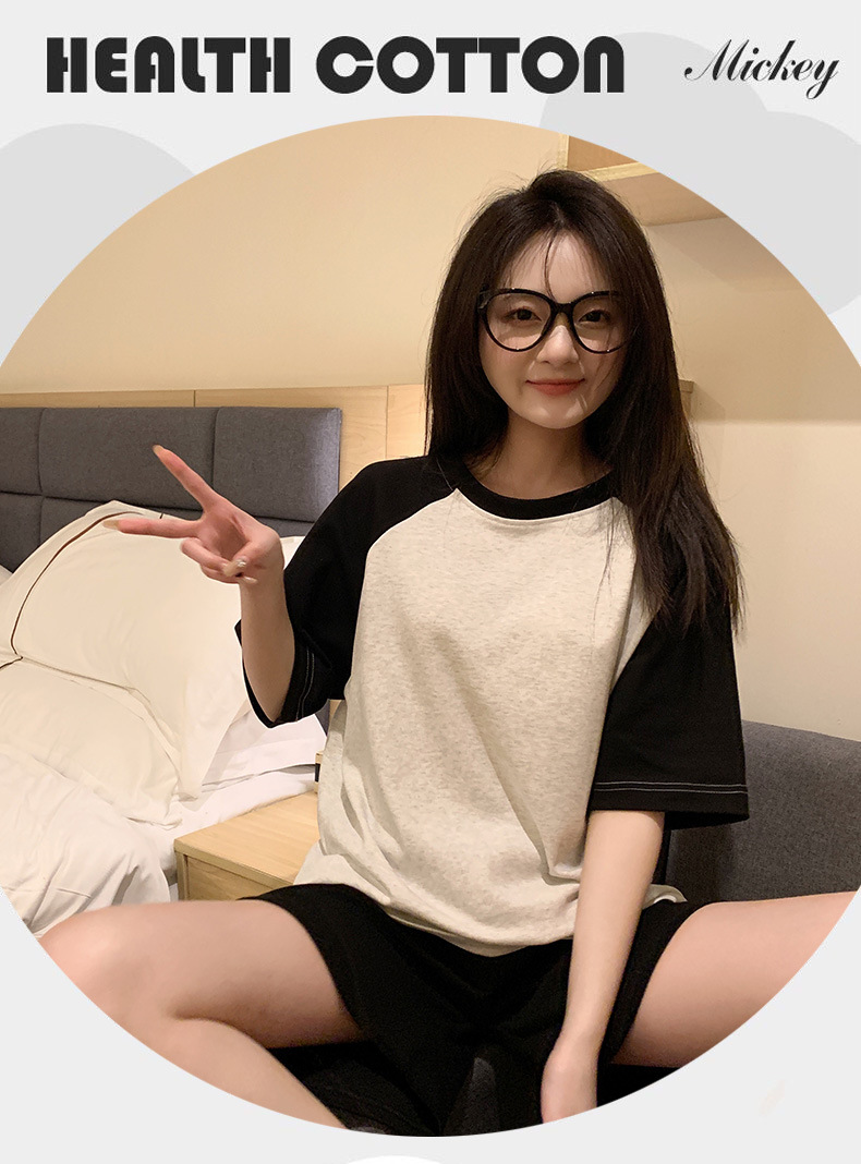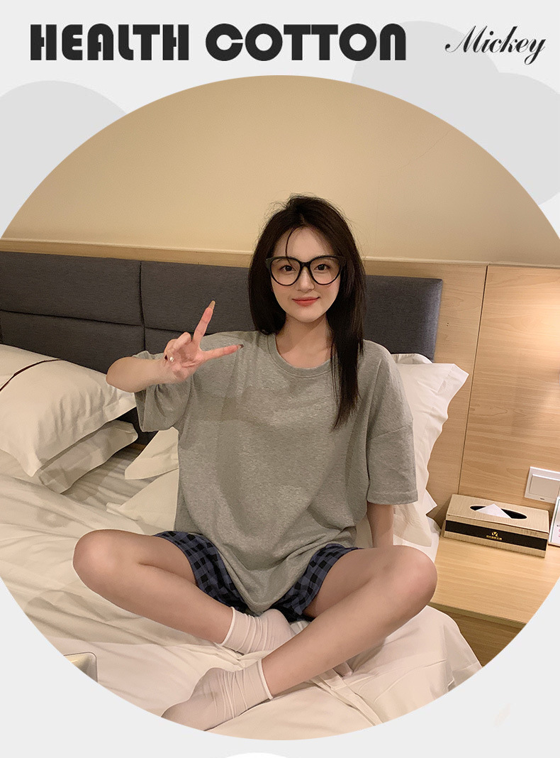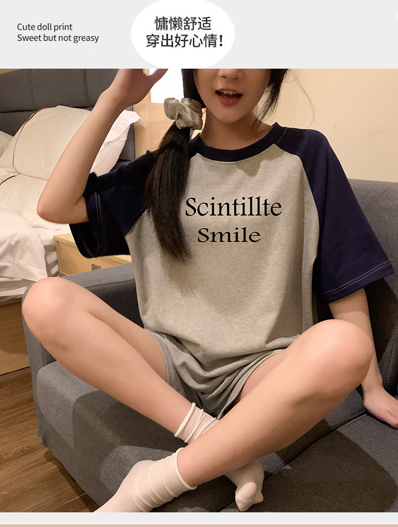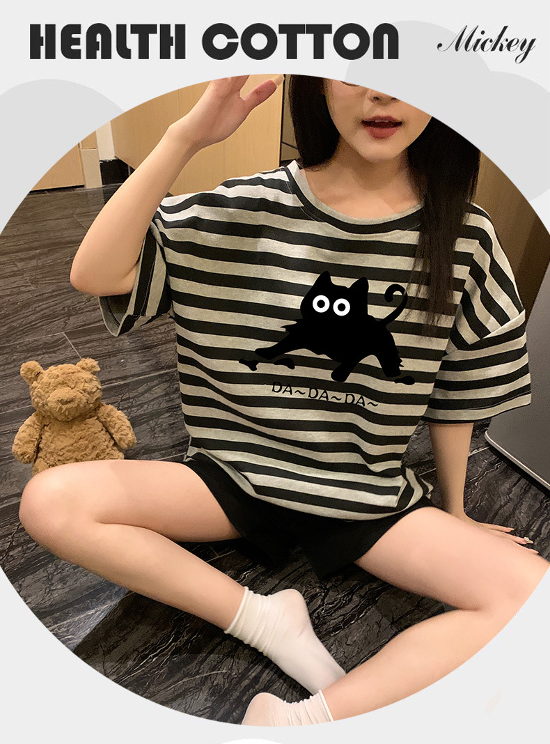 여름 여성을 위한 인터넷 연예인 인기 순면 잠옷 새로운 스타일 만화 학생 반팔 반바지 홈웨어 세트는 트렌디하게 착용 가능