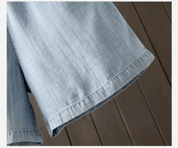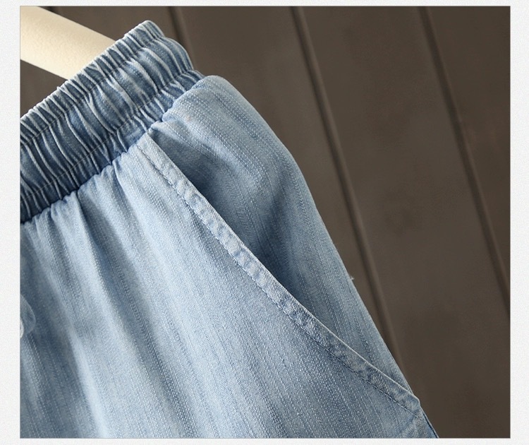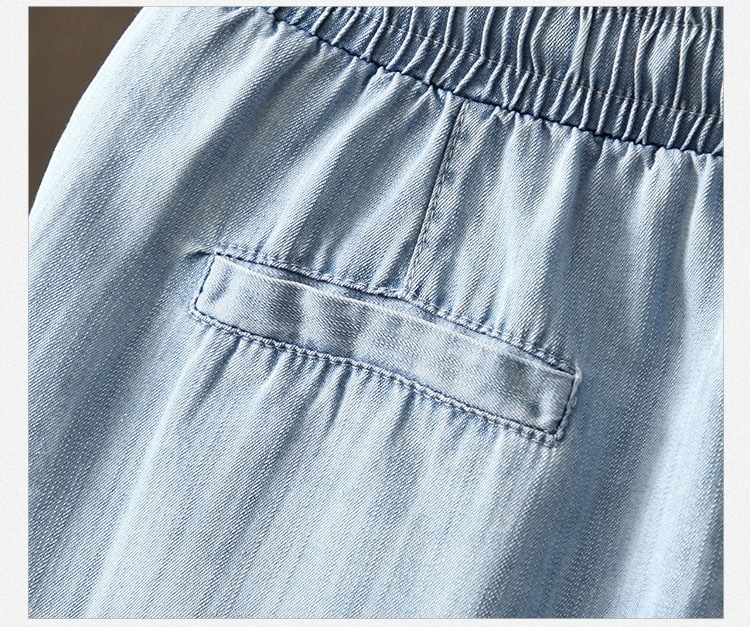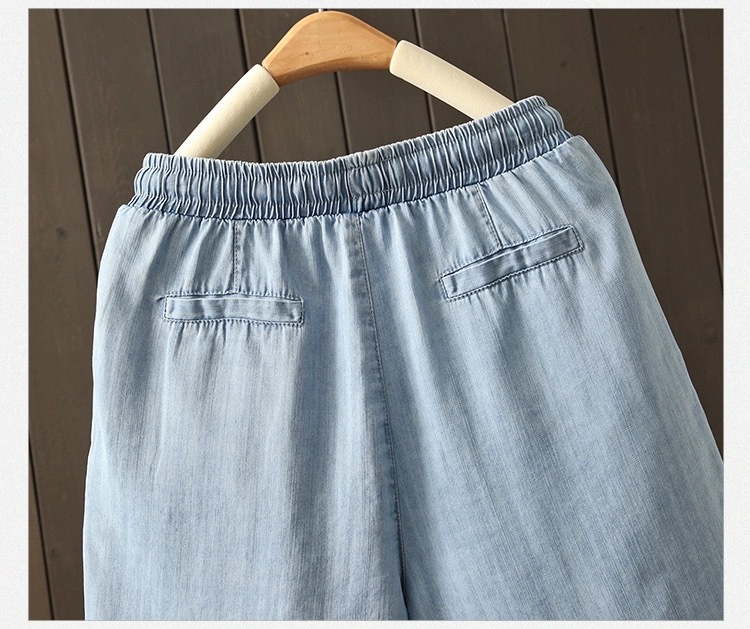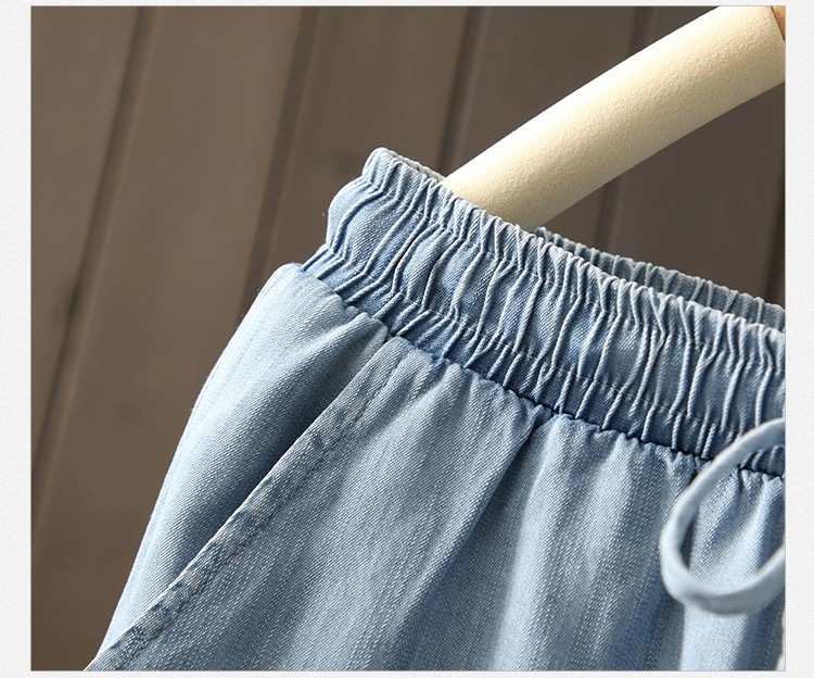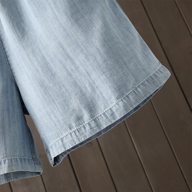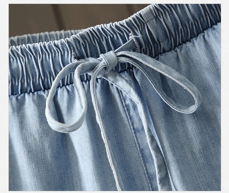 2026 여름 얇은 텐셀 데님 반바지 여성용 신축성 허리끈 루즈핏 캐주얼 와이드 레그 블루 5부 데님 팬츠