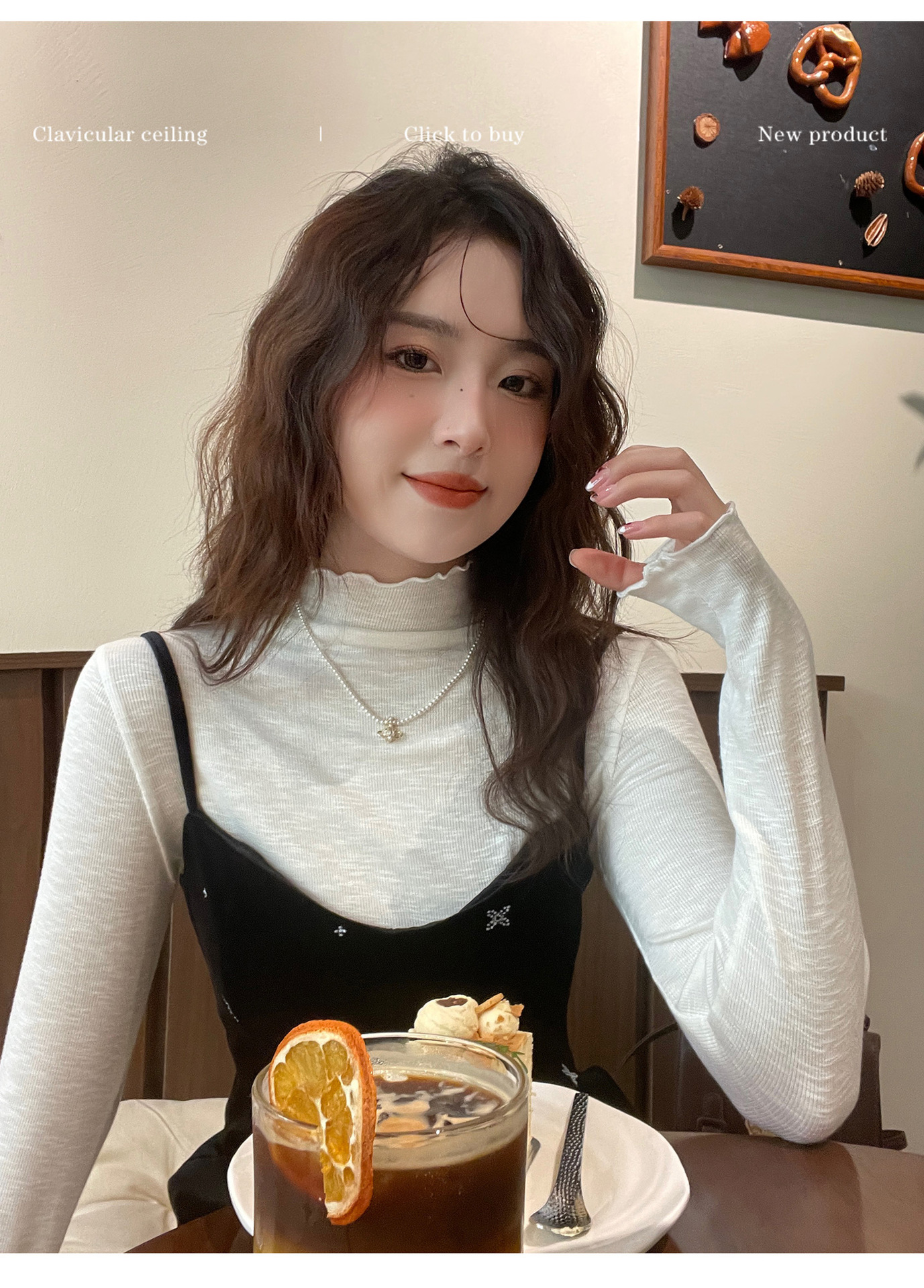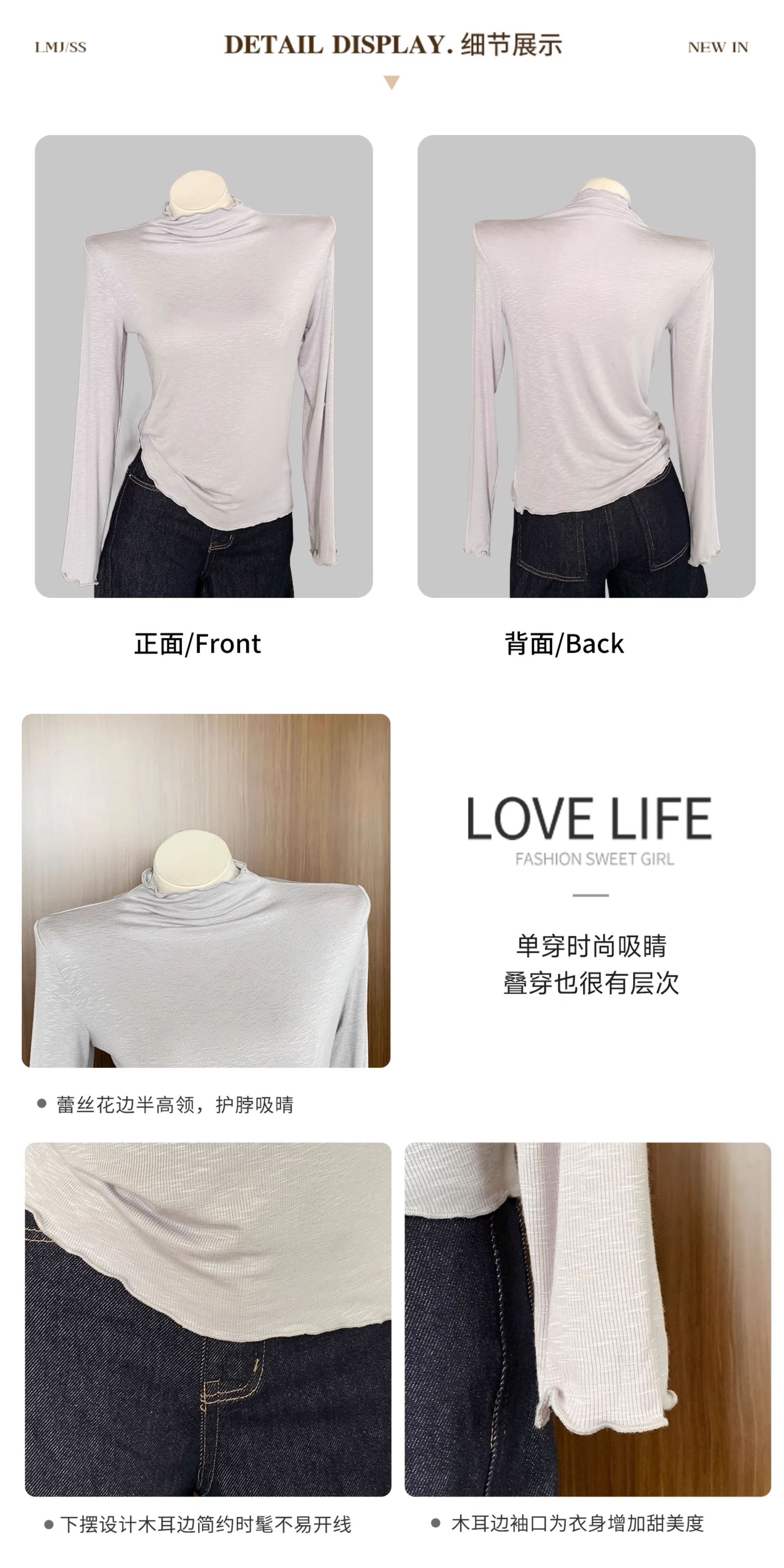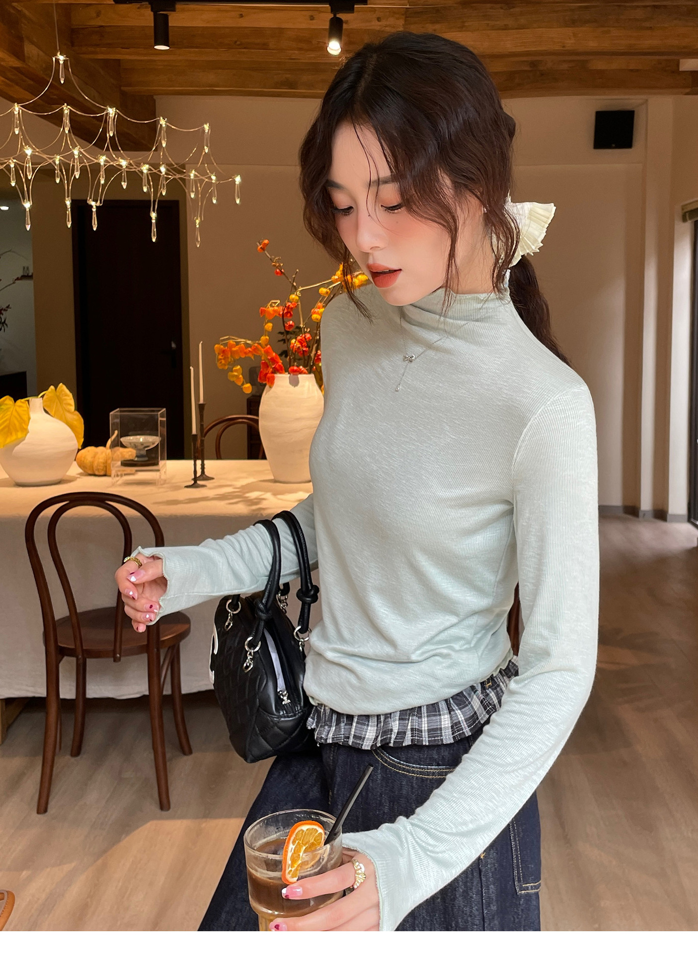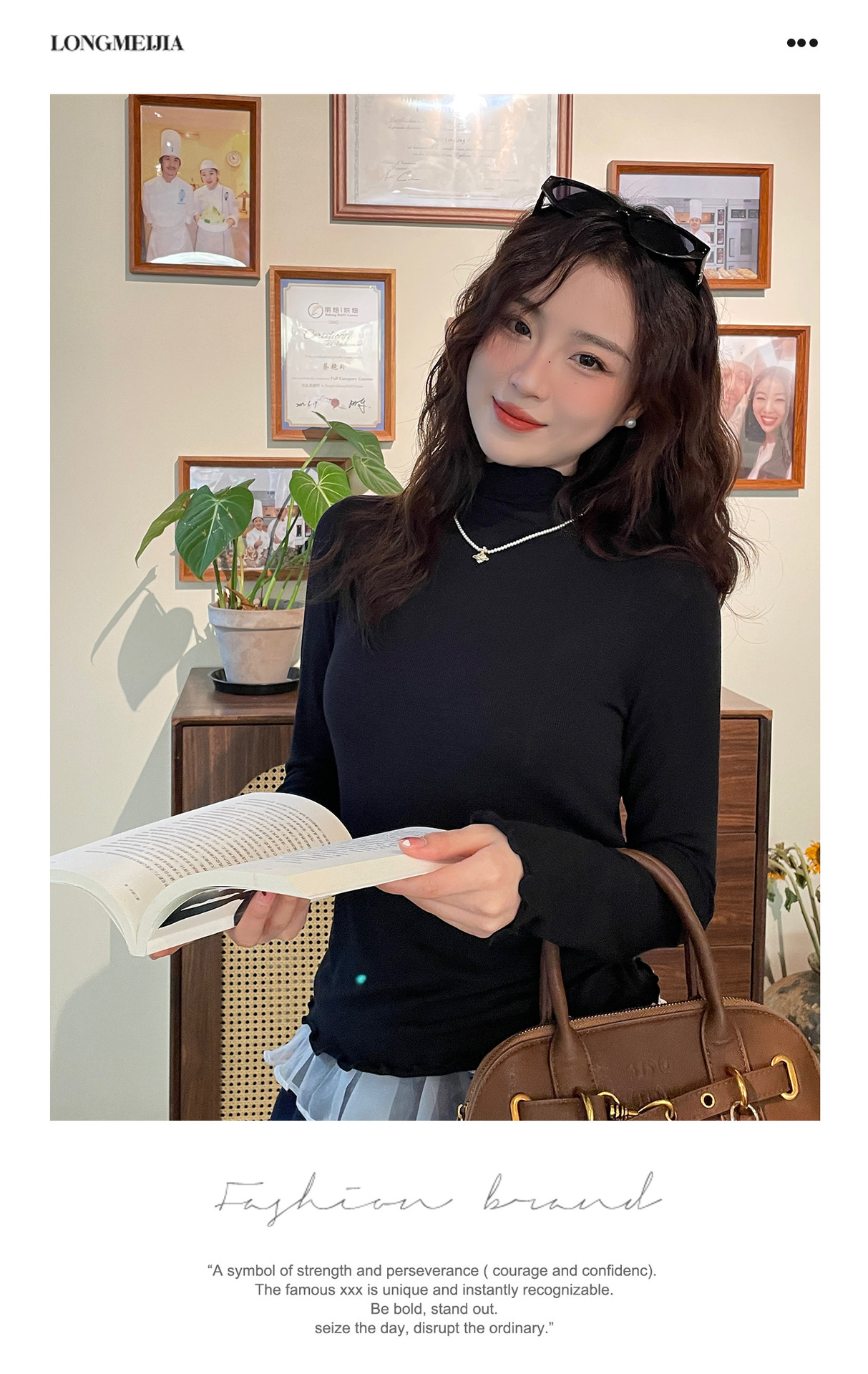 반하이넥 여성용 이너웨어 얇은 긴팔 티셔츠 2026 가을 러플탑 여성 슬림핏