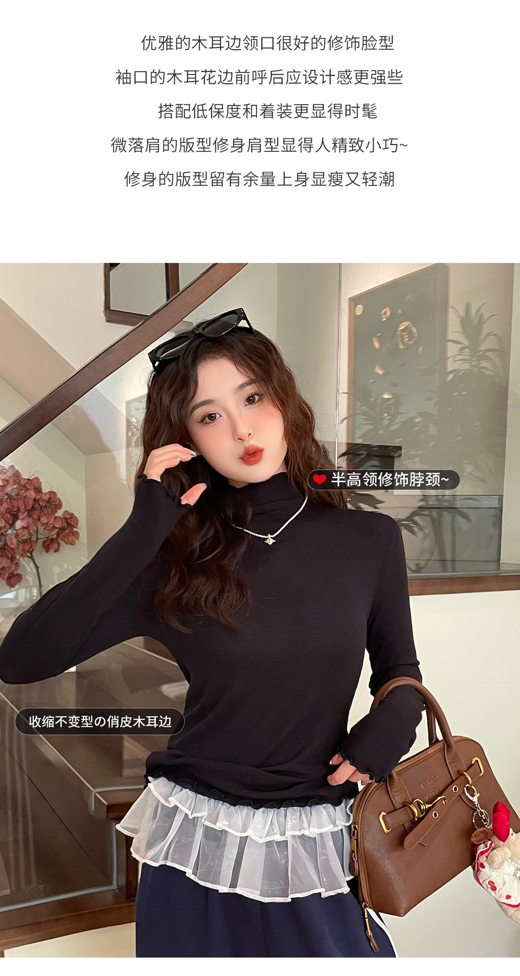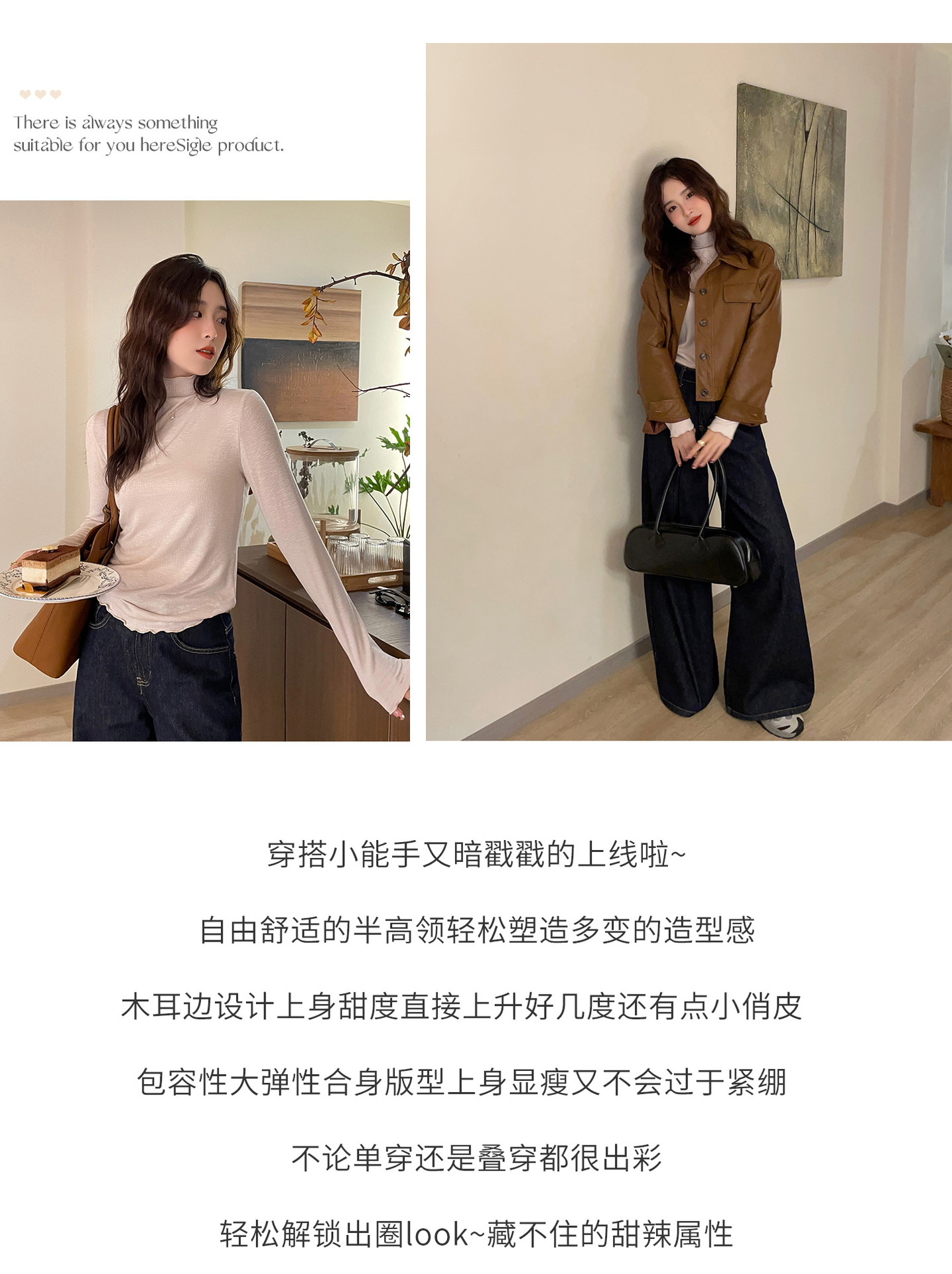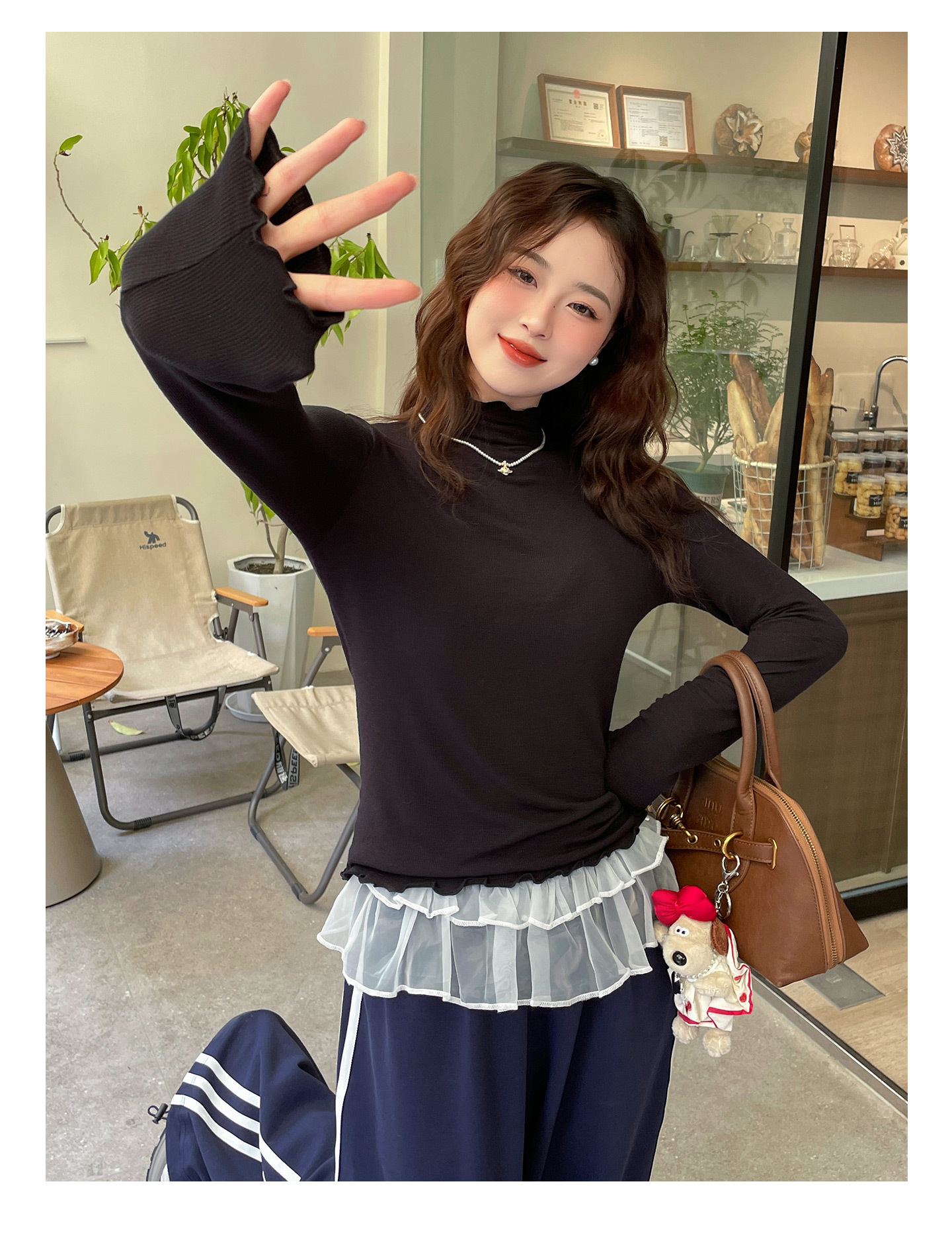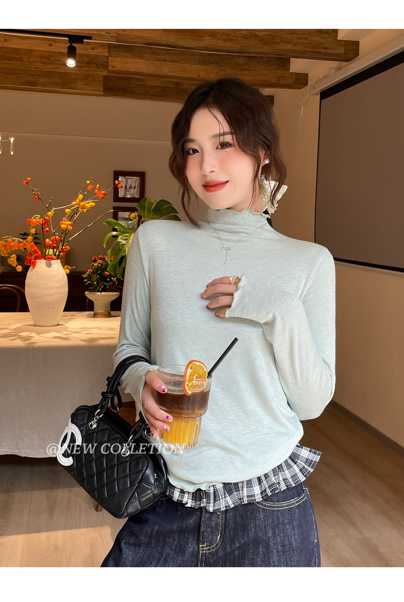 반하이넥 여성용 이너웨어 얇은 긴팔 티셔츠 2026 가을 러플탑 여성 슬림핏