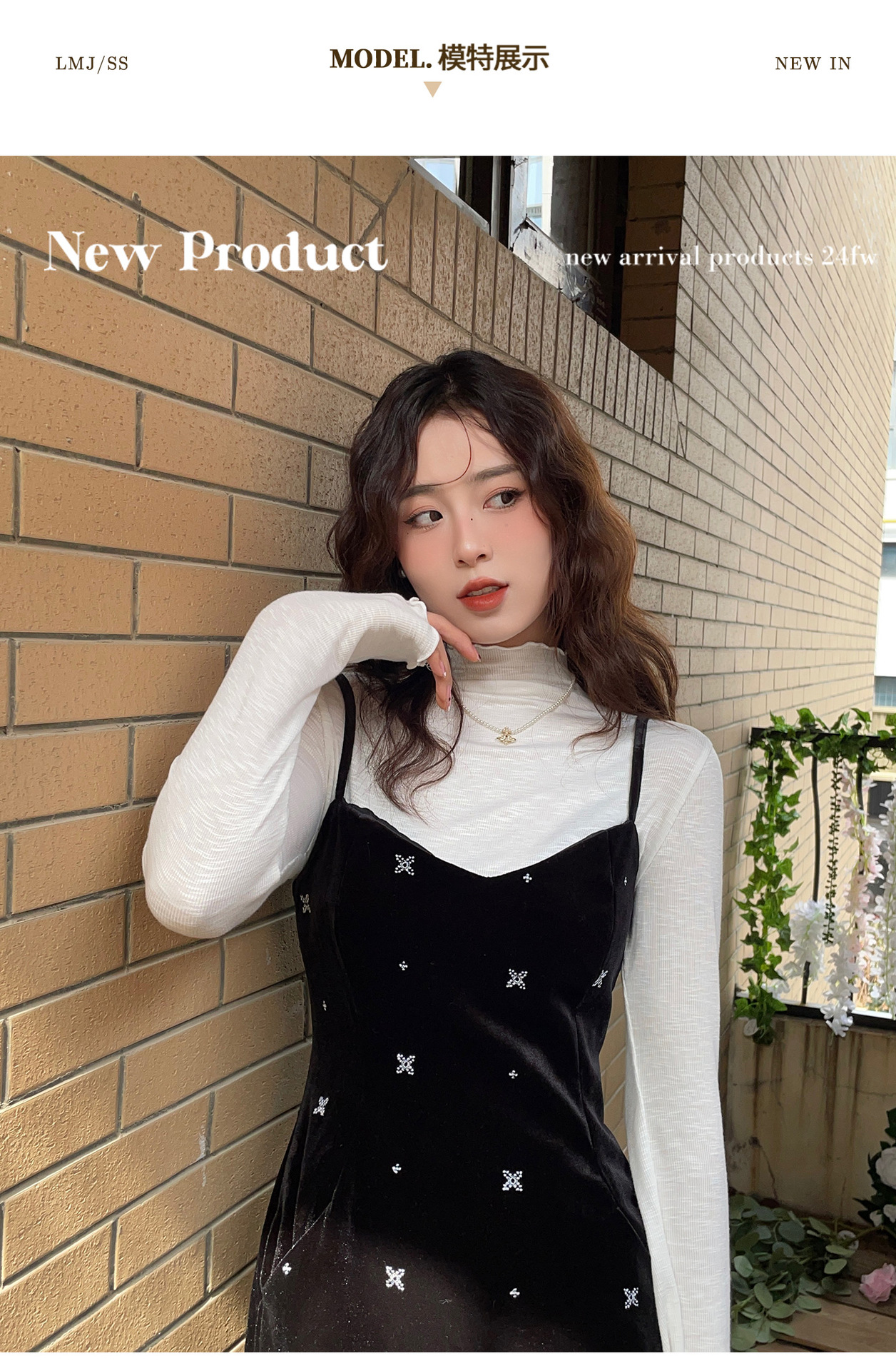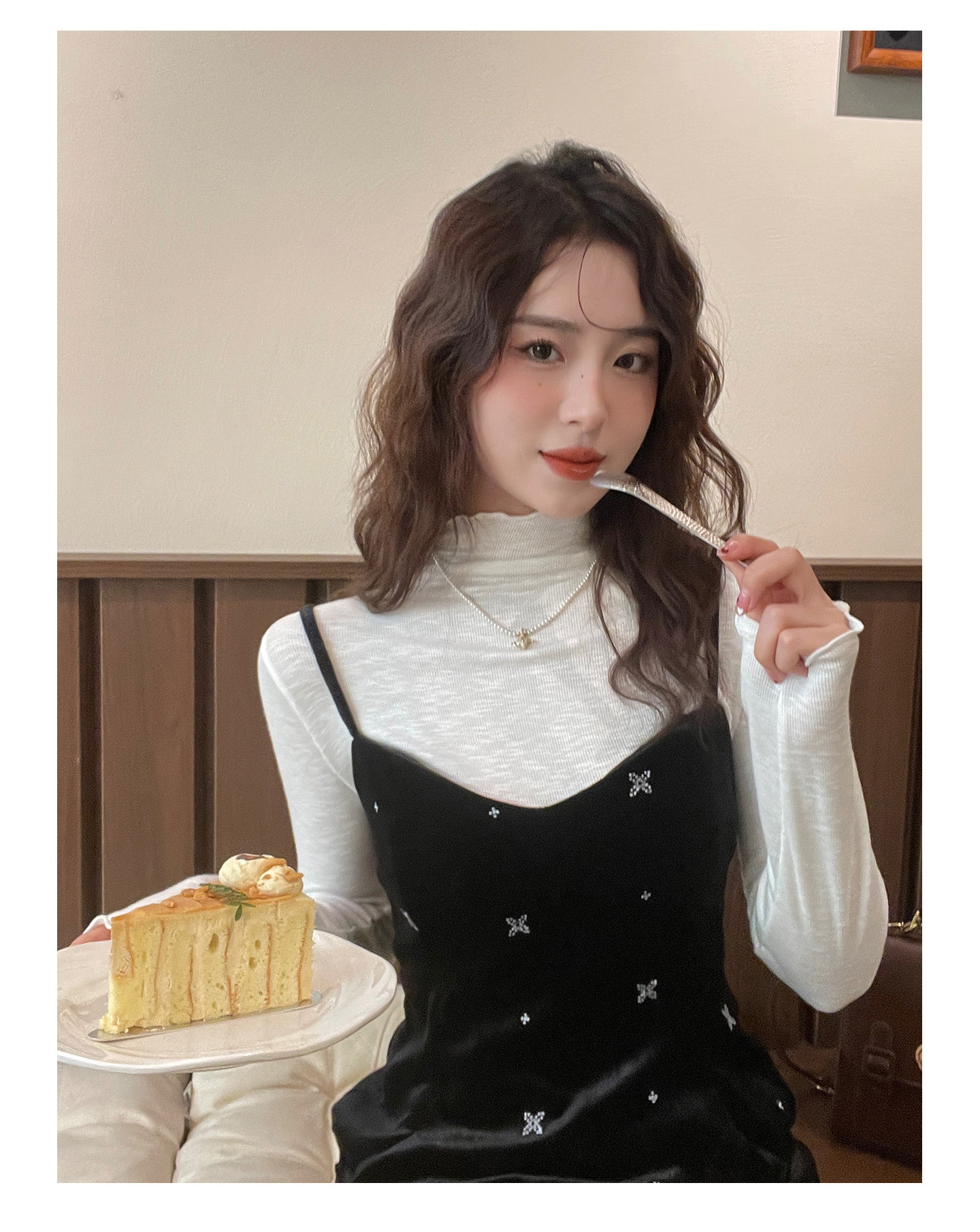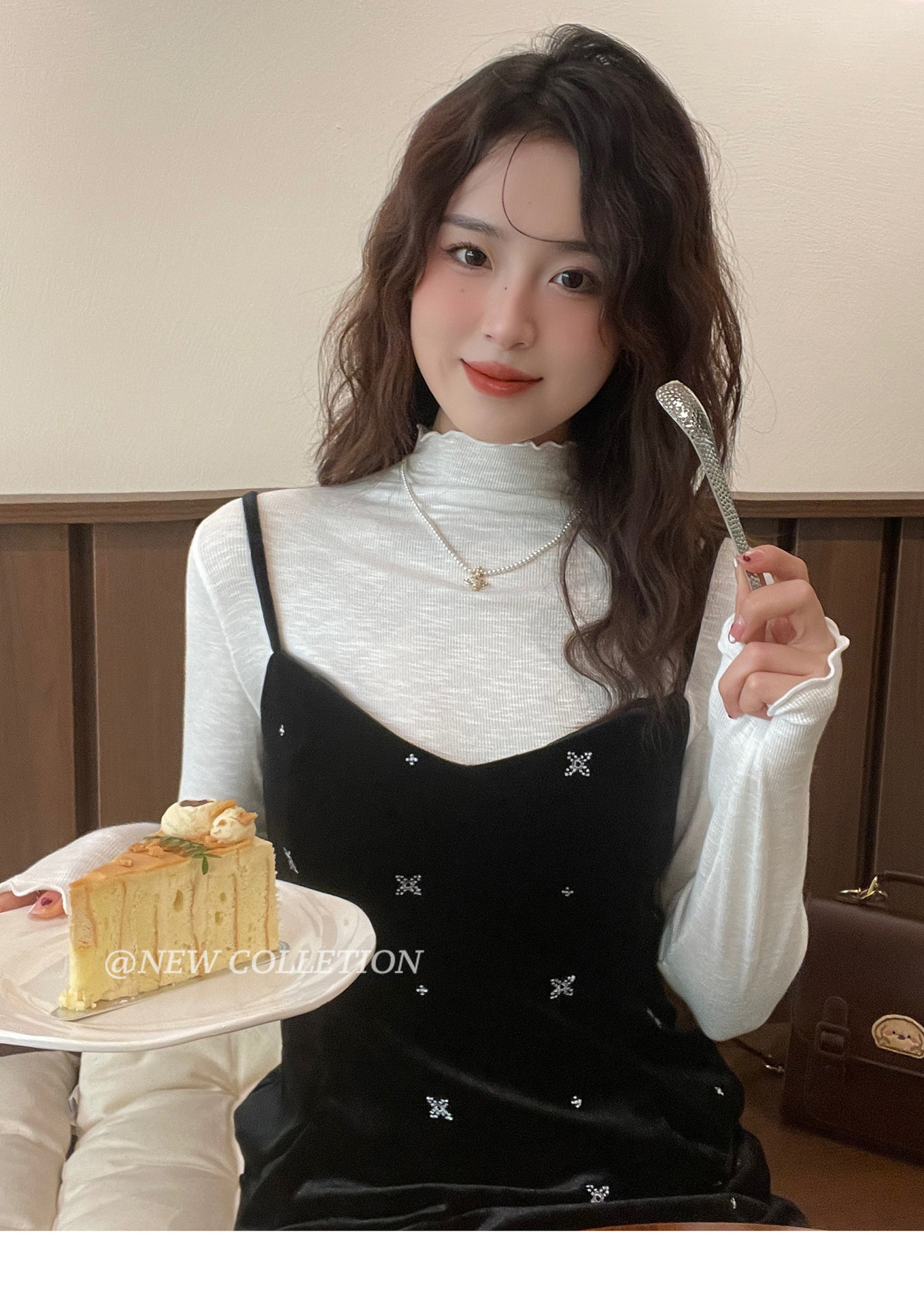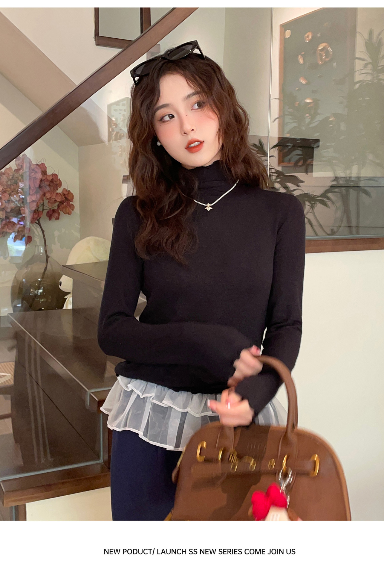 반하이넥 여성용 이너웨어 얇은 긴팔 티셔츠 2026 가을 러플탑 여성 슬림핏