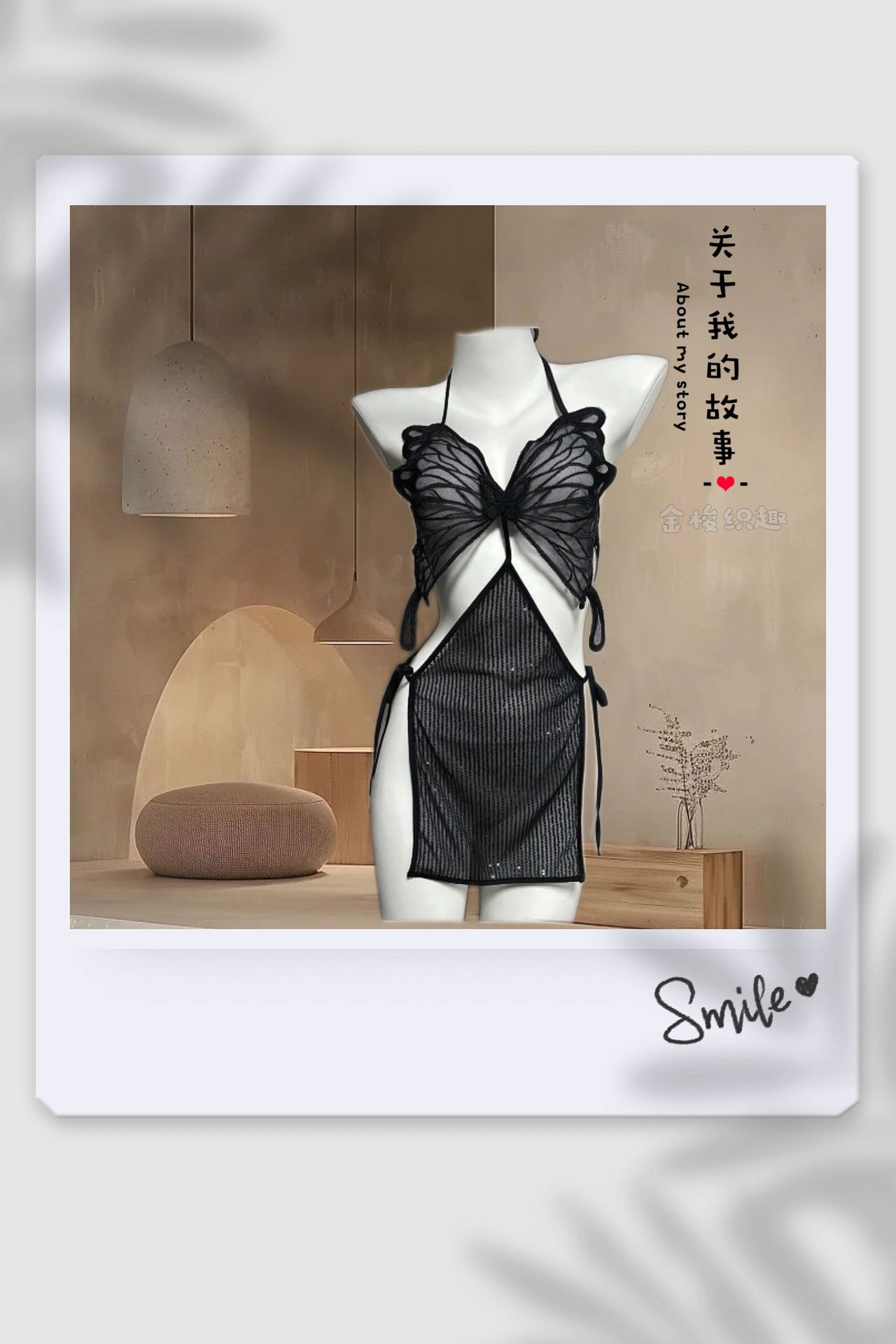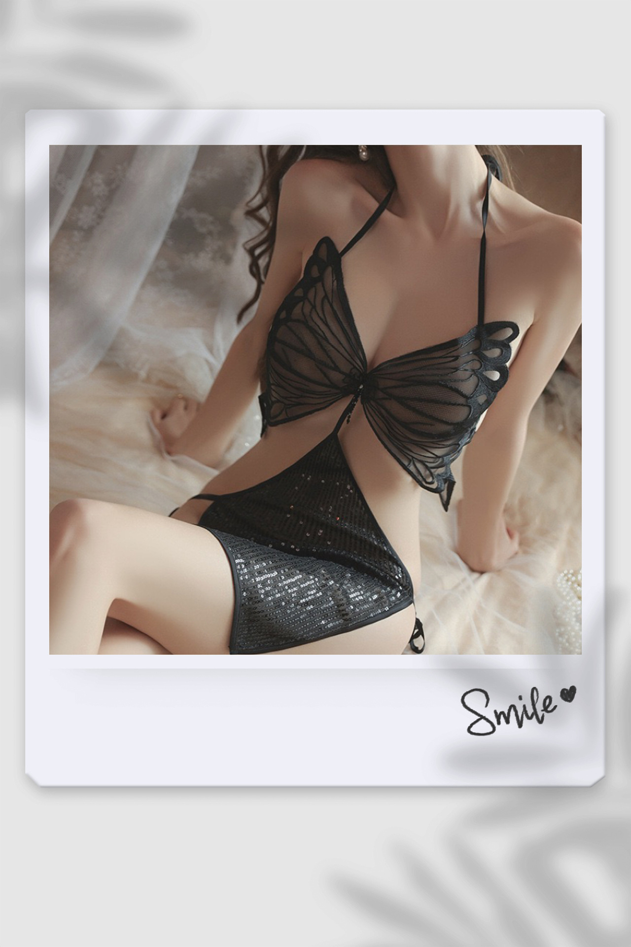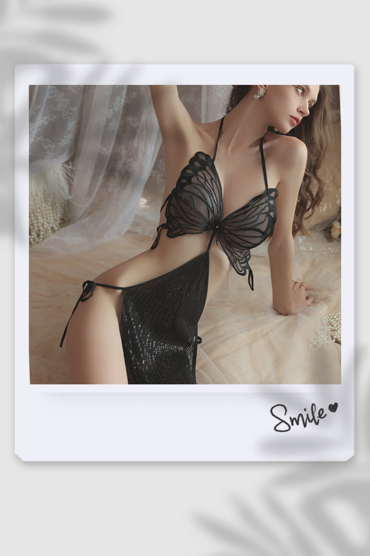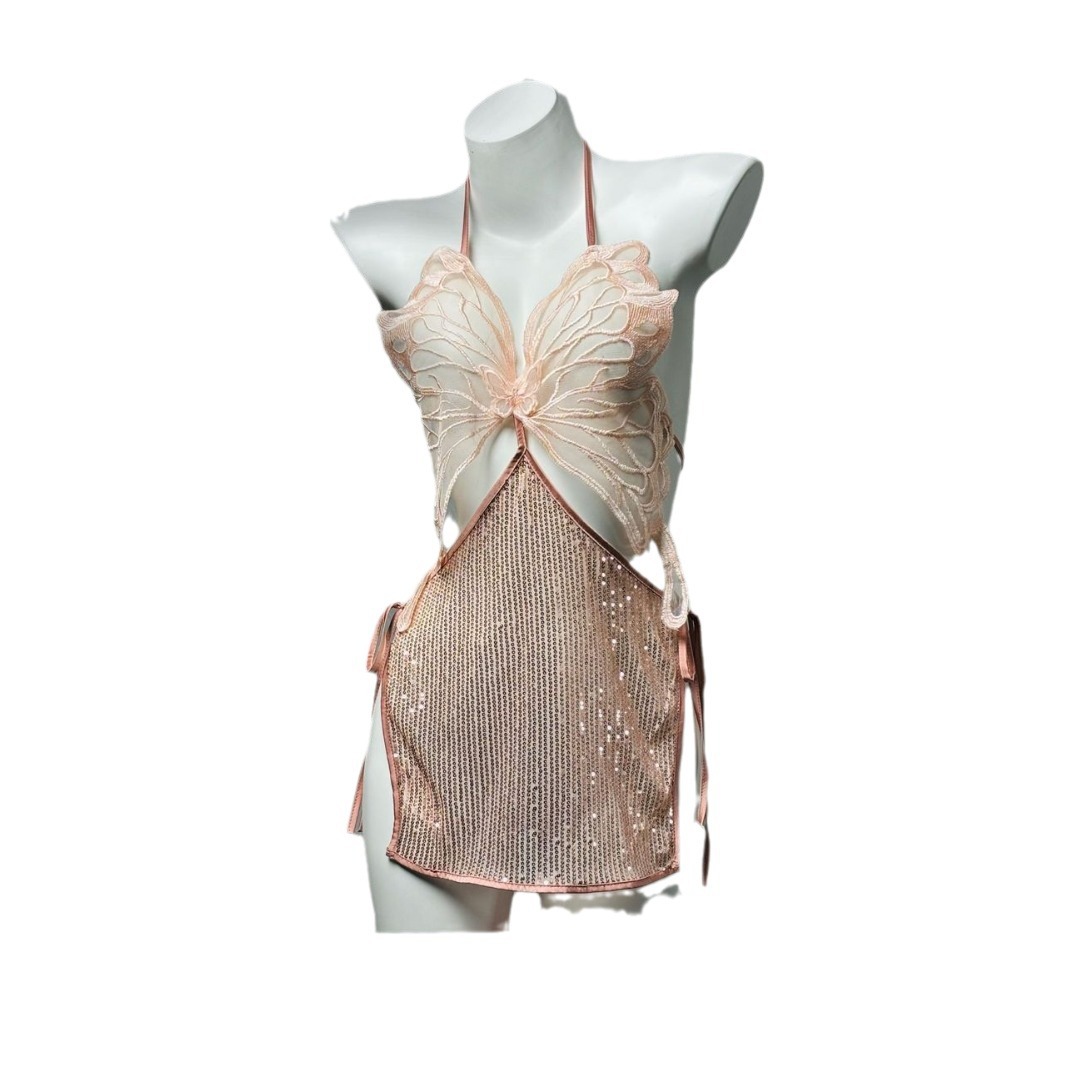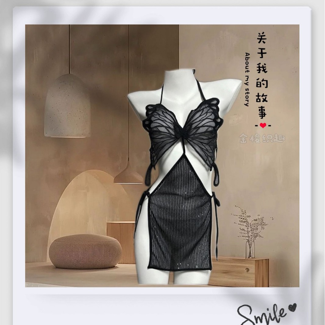 섹시한 란제리, 섹시한 끈나시, 순수한 욕망 스타일의 잠옷, 큰 나비끈, 투명한 메쉬 섹시 잠옷 075