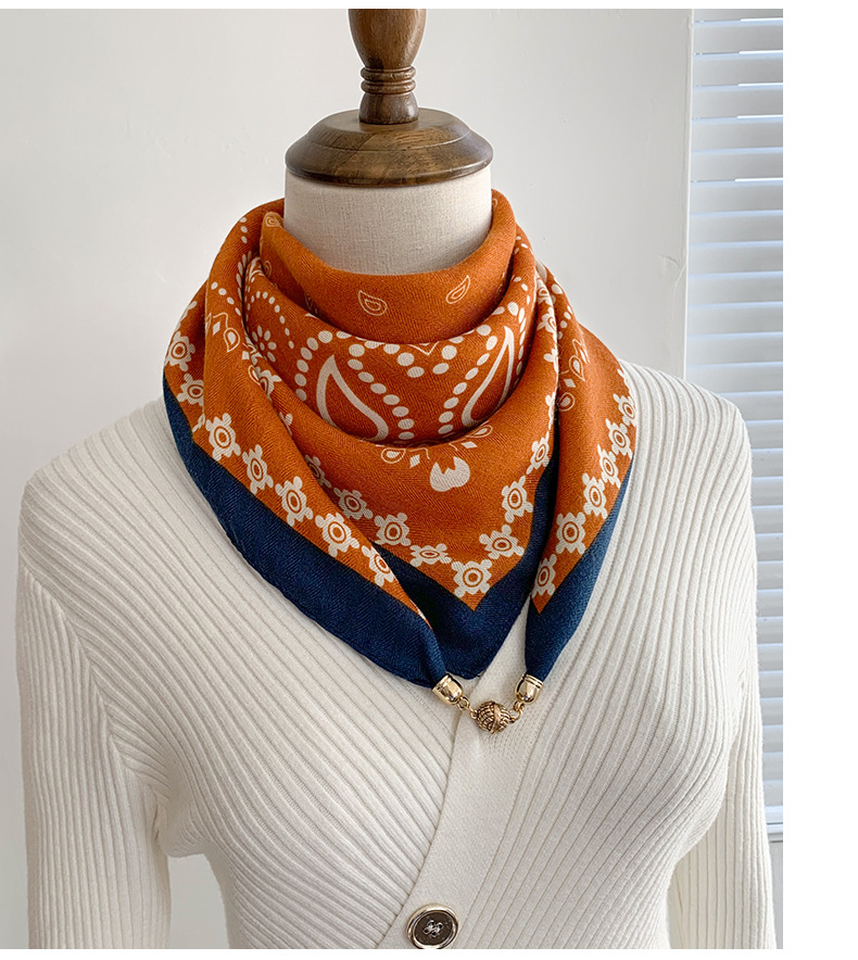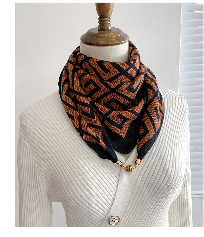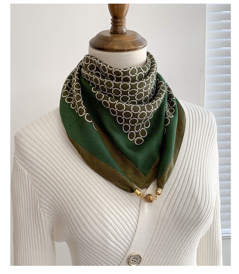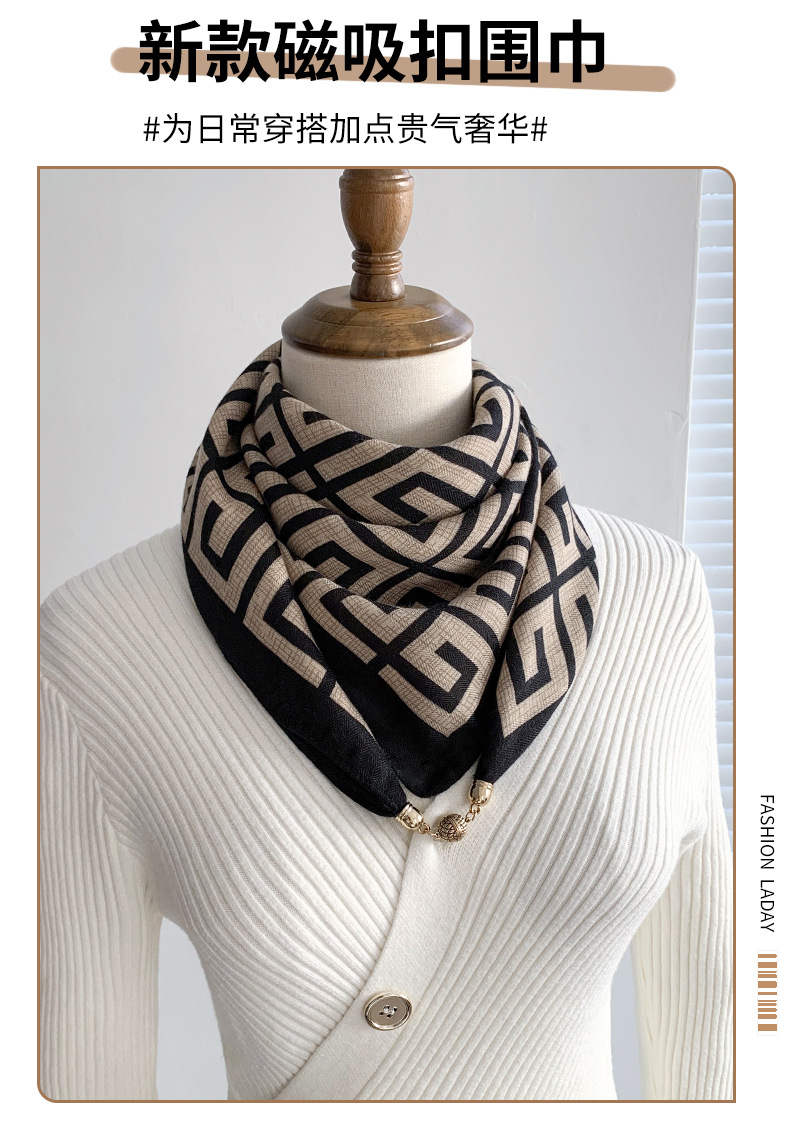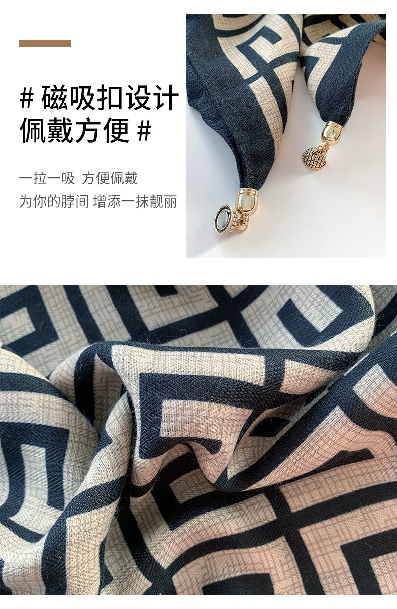 자석 삼각형 목 보호 스카프 여성용 가을 겨울 면 린넨 실크 스카프 목 스카프 체크무늬 리본