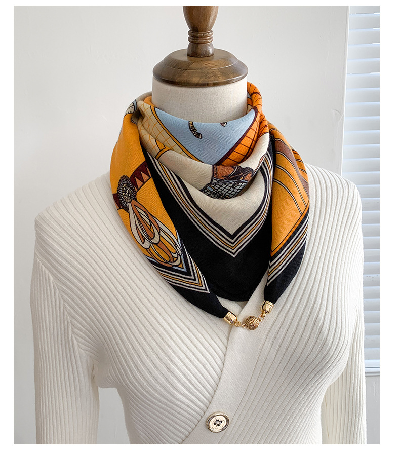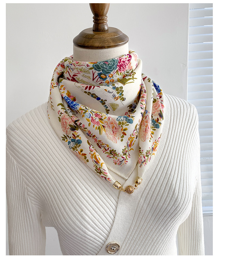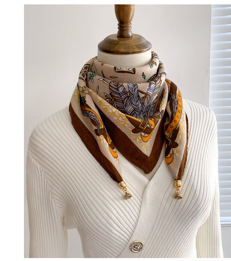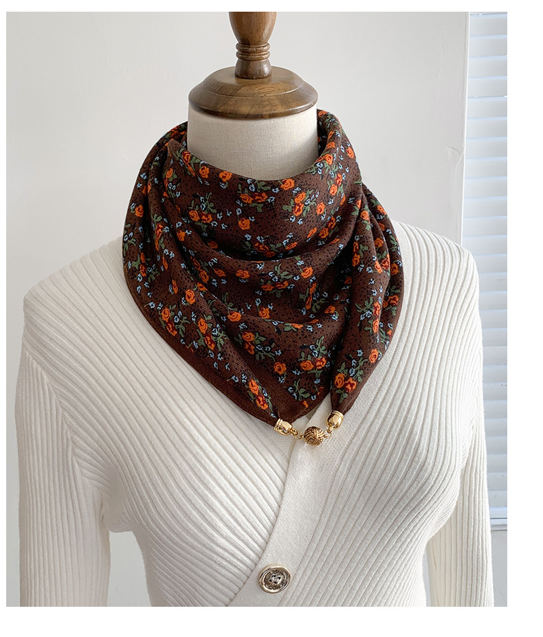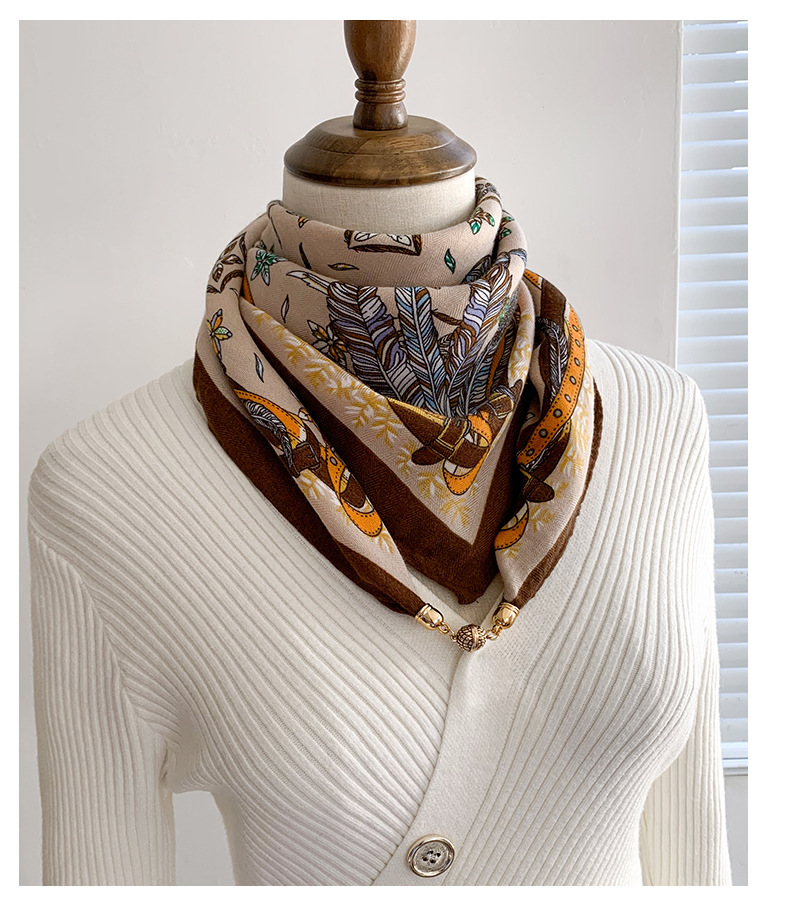 자석 삼각형 목 보호 스카프 여성용 가을 겨울 면 린넨 실크 스카프 목 스카프 체크무늬 리본