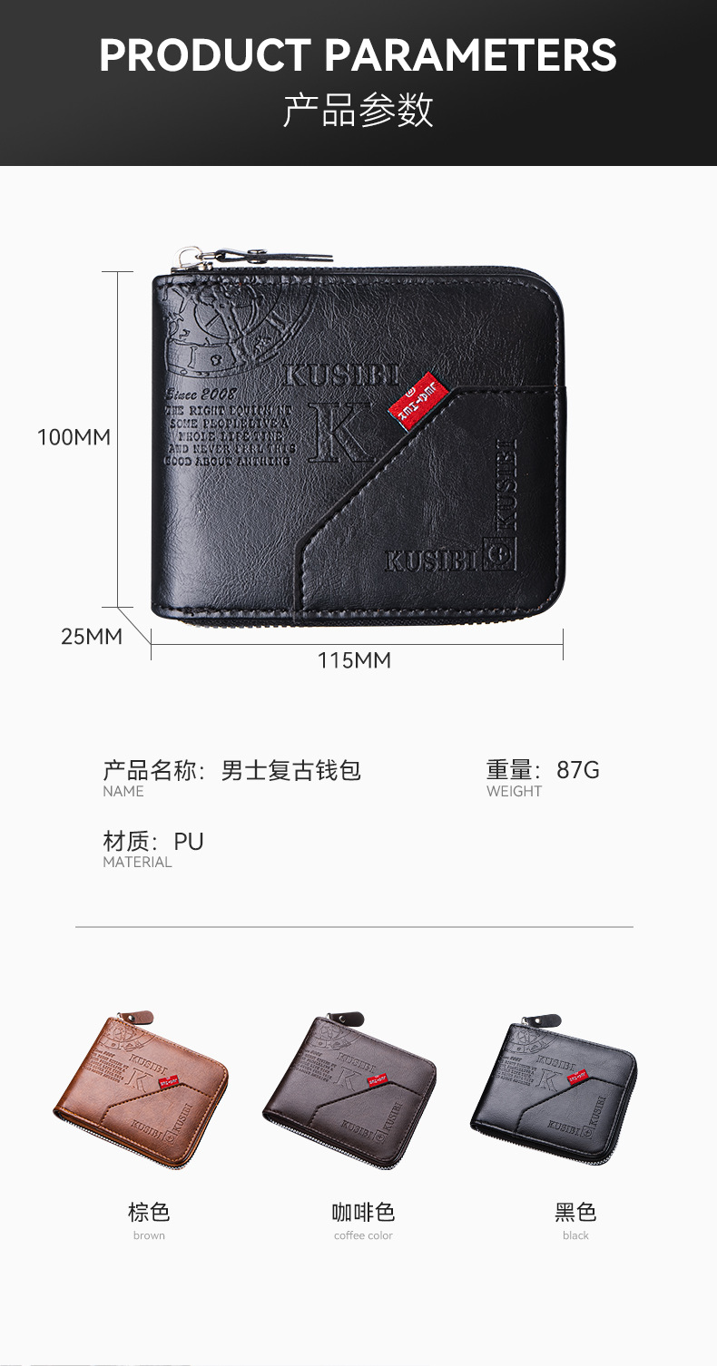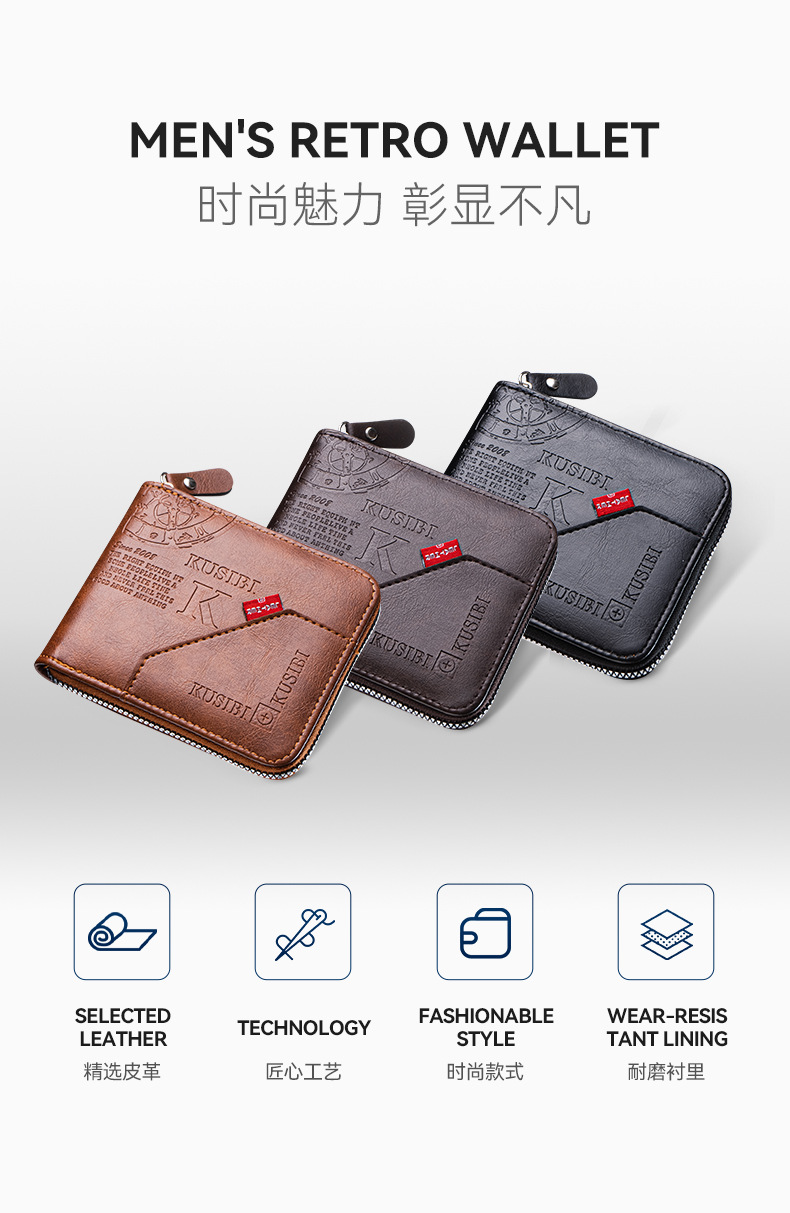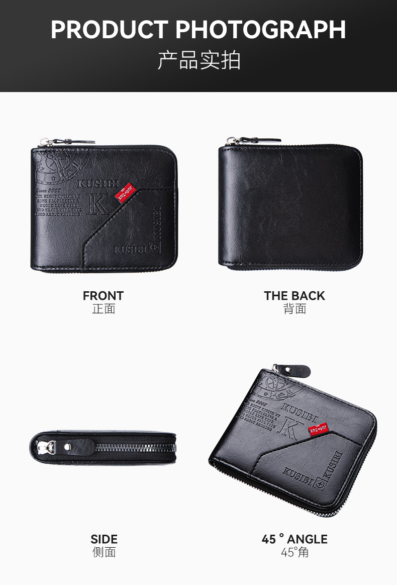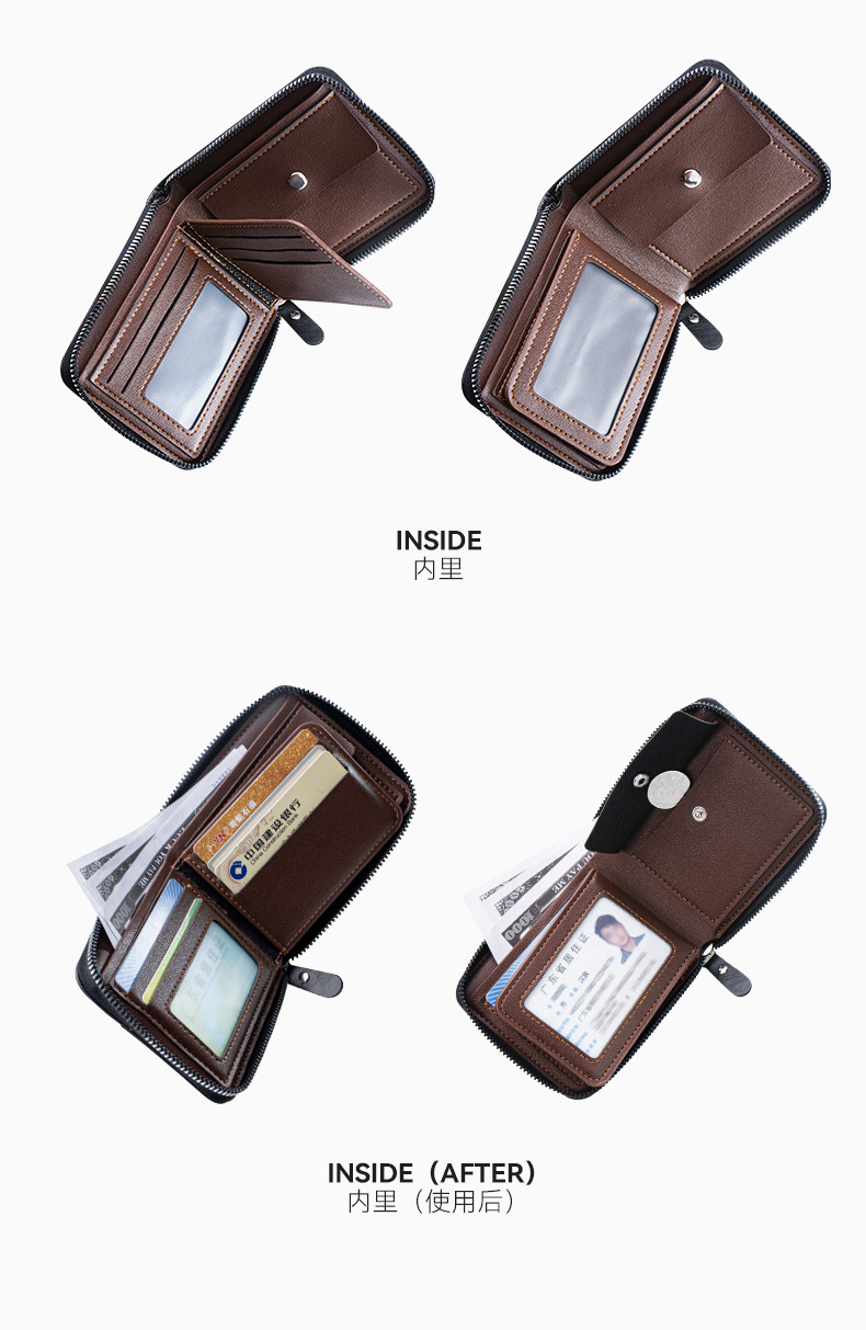 국경 간 다기능 동전 지갑, 카드 및 신분증 수납 가방, 도매 남성용 지갑, 가로형 가죽 카드 지갑, 지퍼형 휴대용