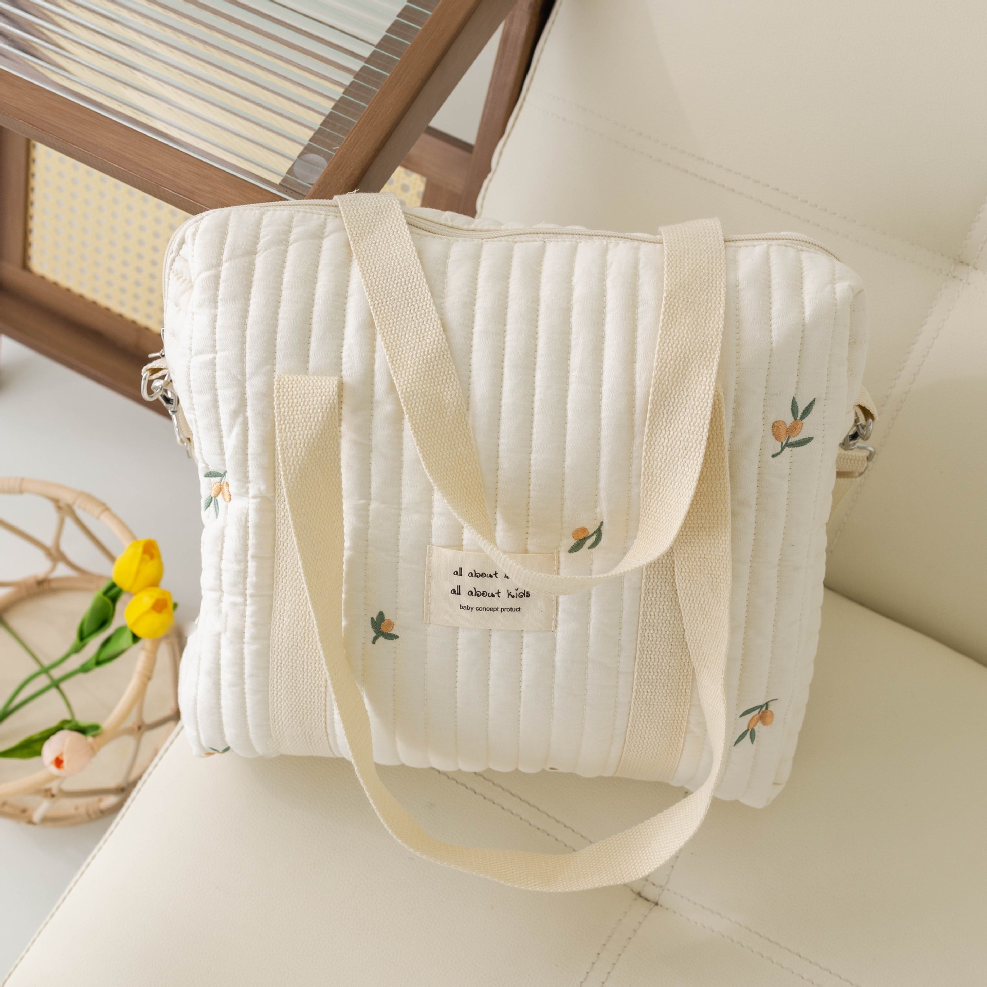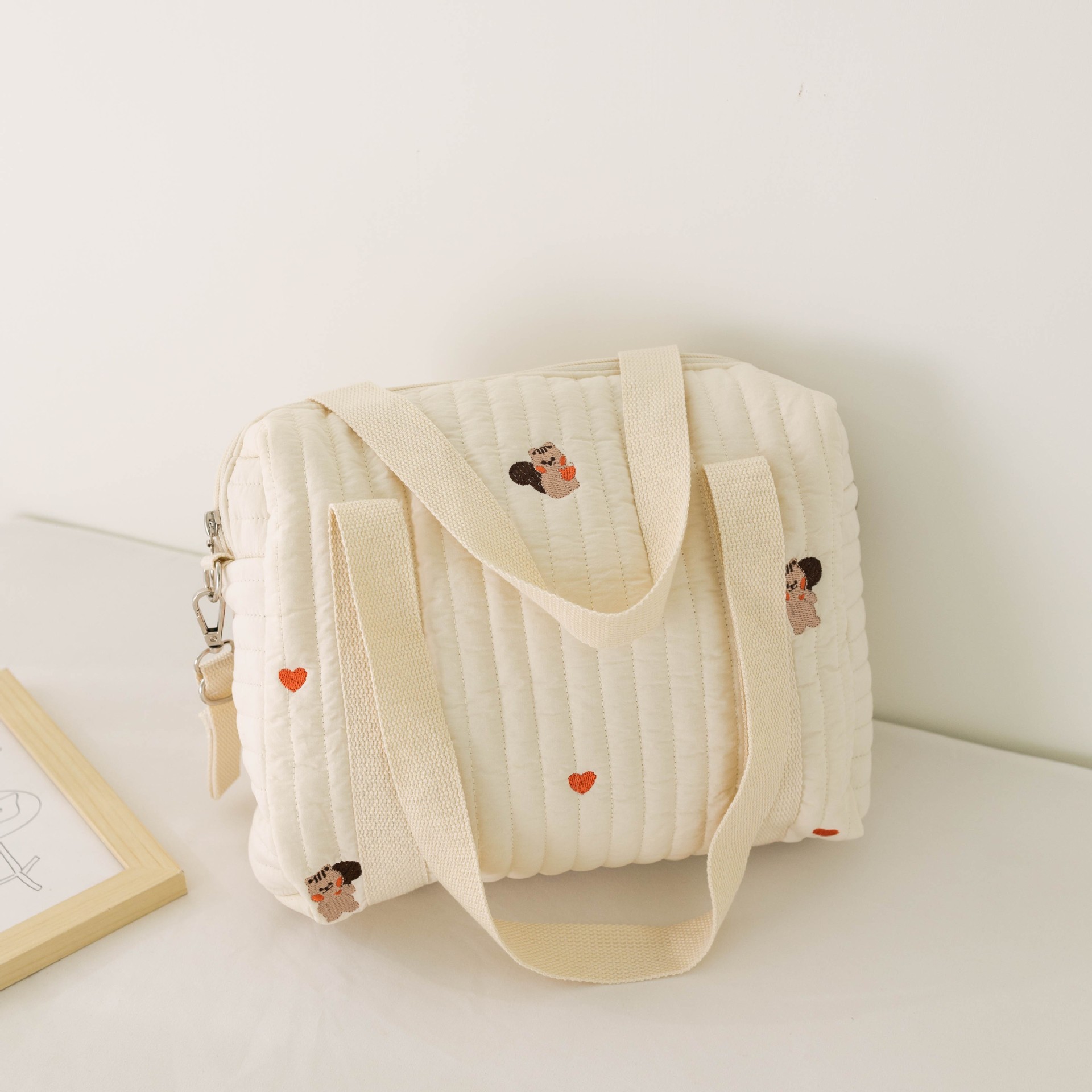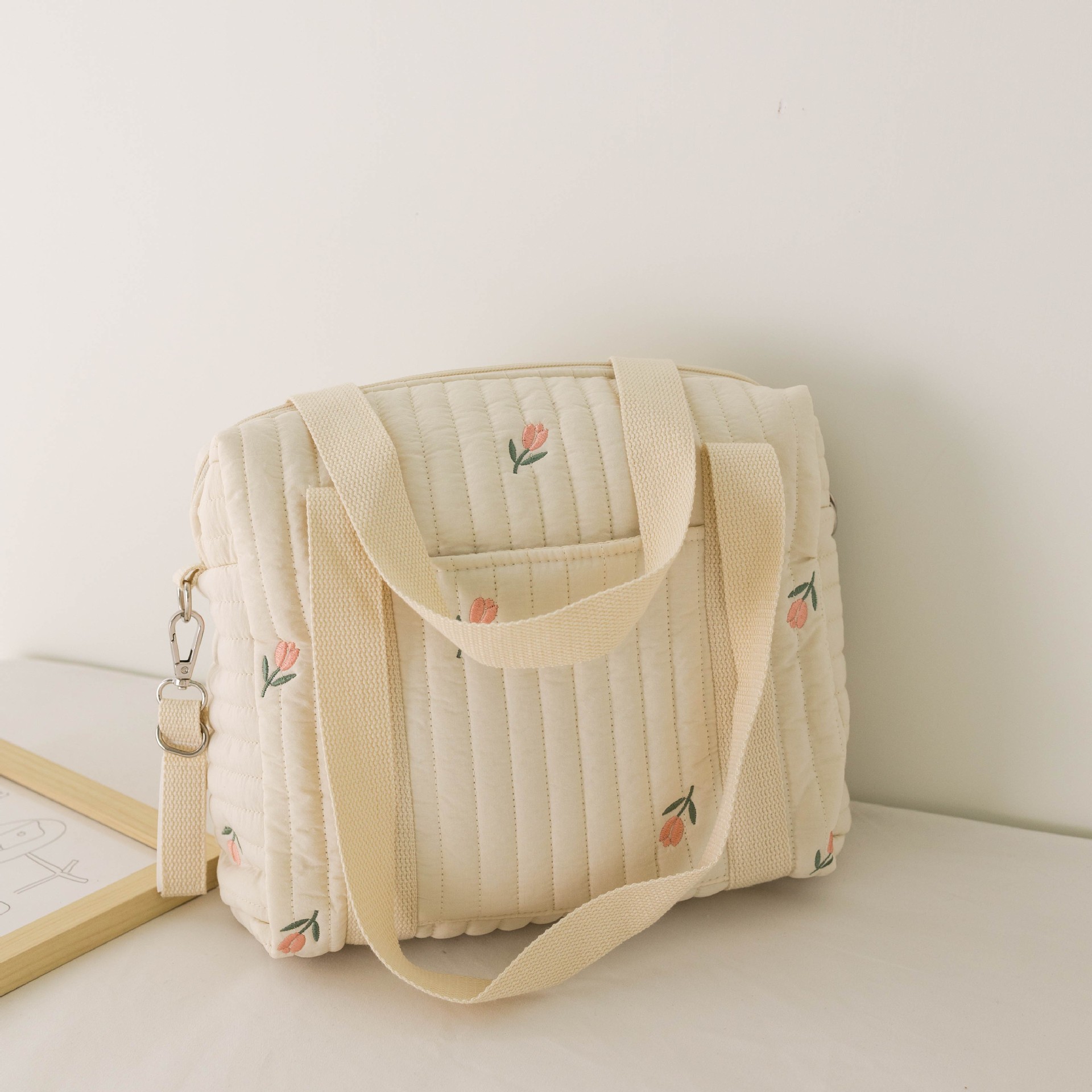 大容量新款妈咪包拉链刺绣衍棉背包婴儿手推车挂包尿布包出行便携