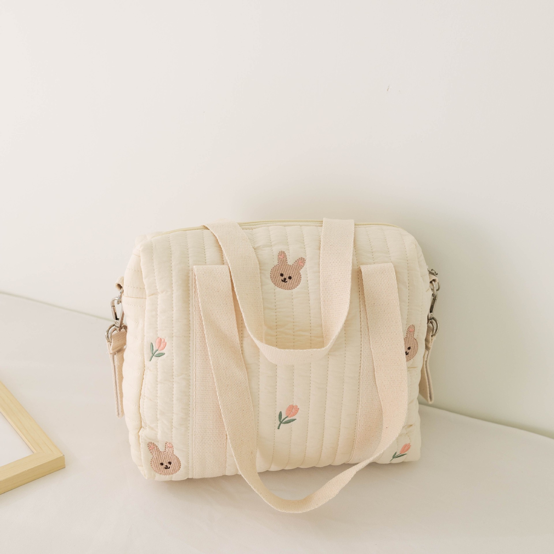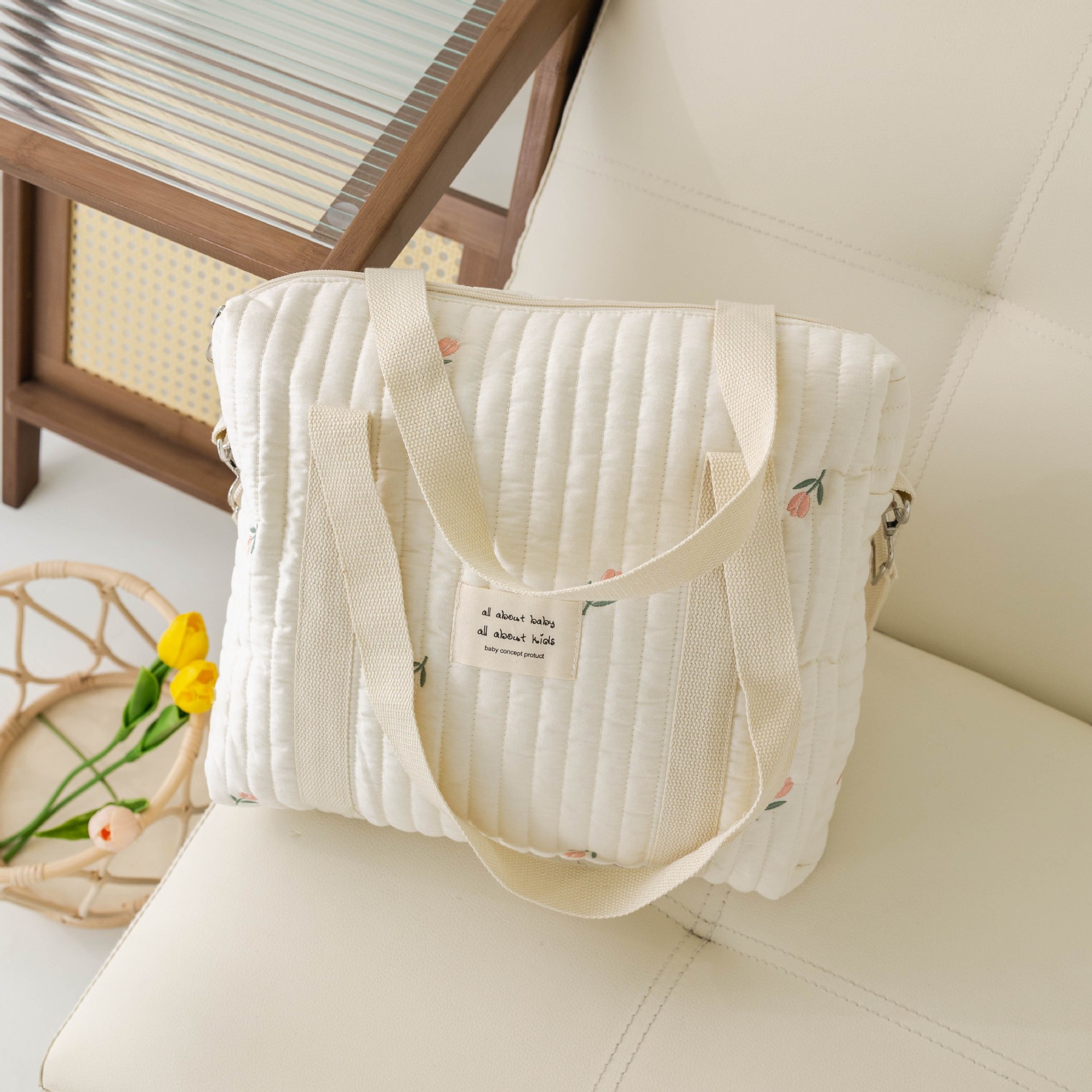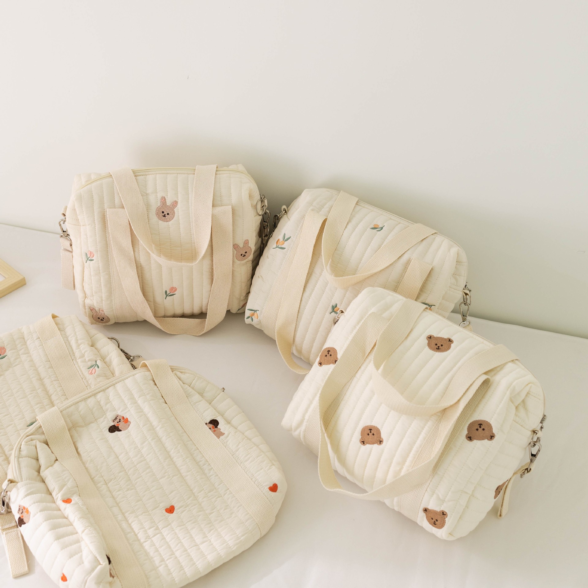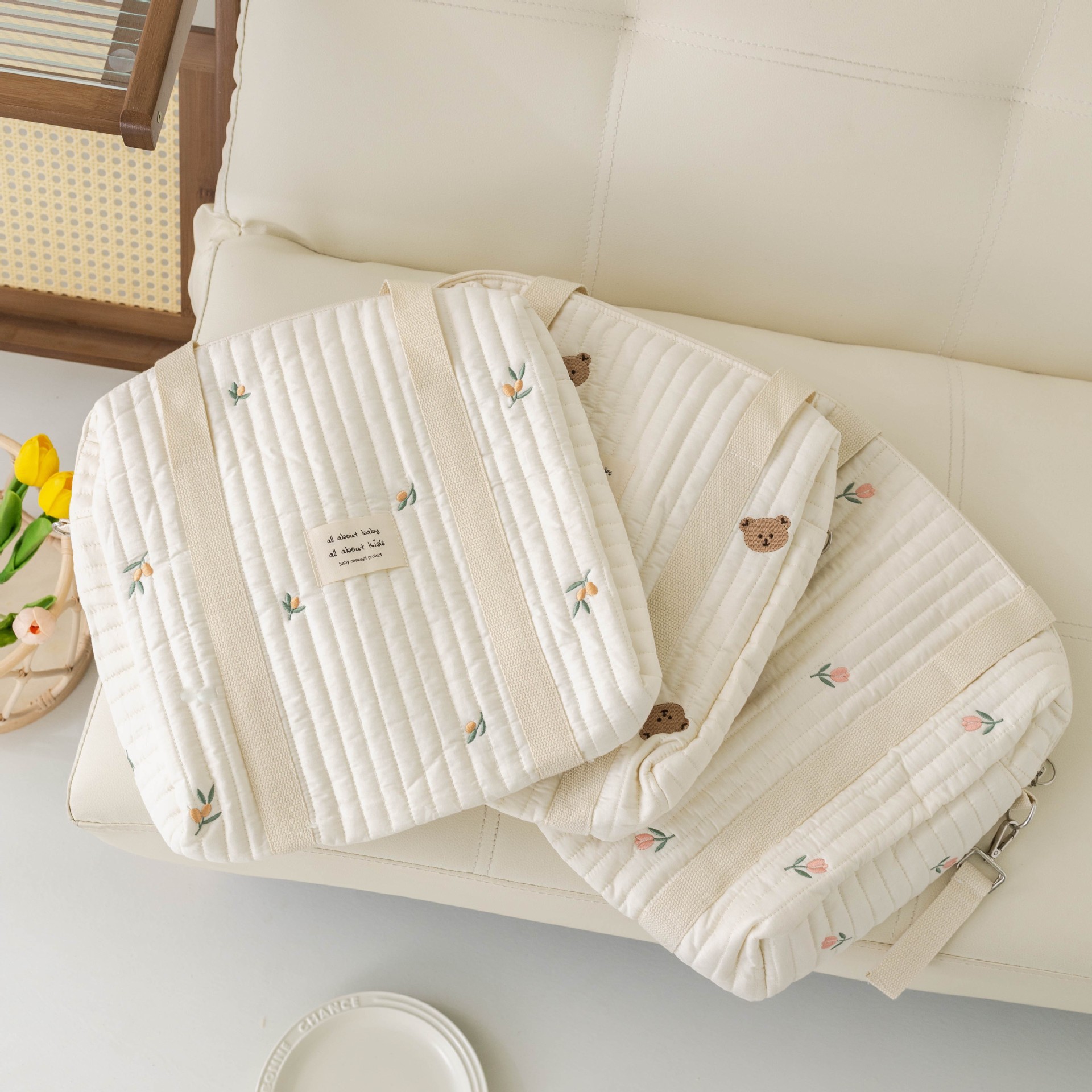 大容量新款妈咪包拉链刺绣衍棉背包婴儿手推车挂包尿布包出行便携