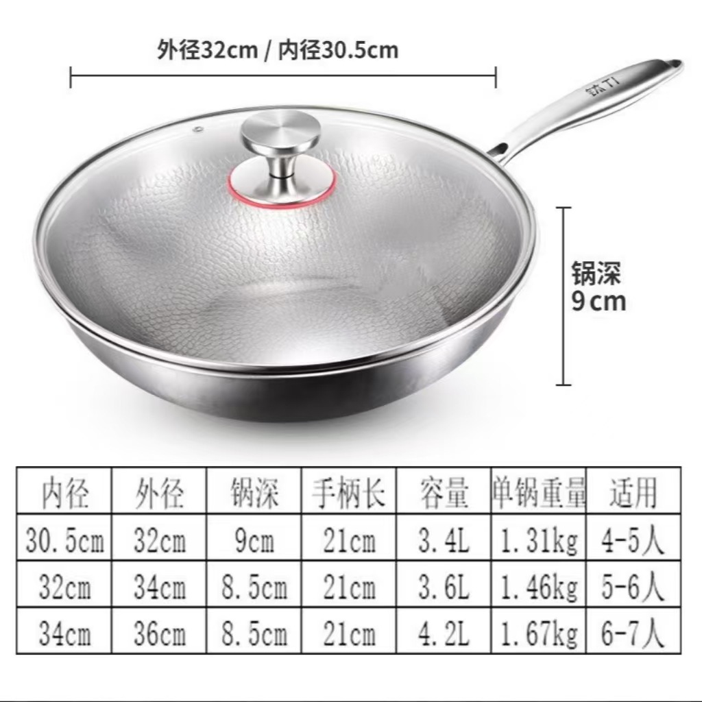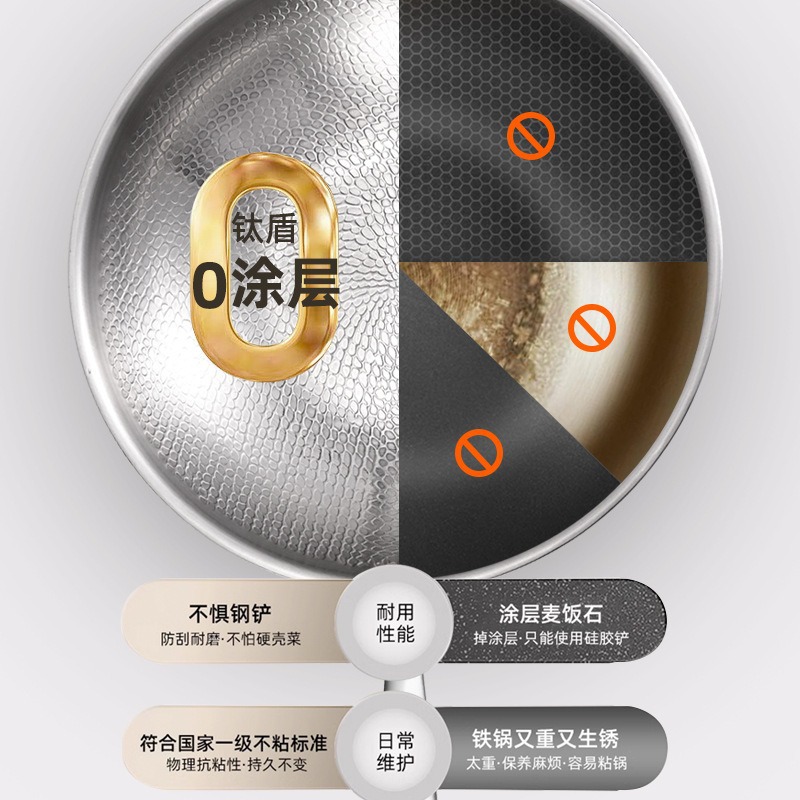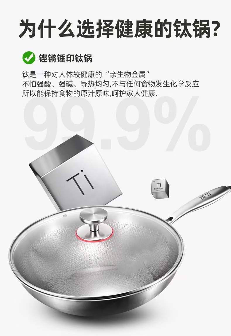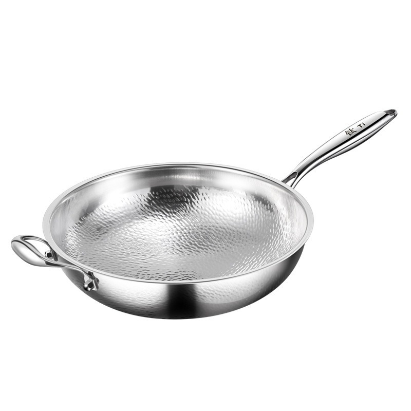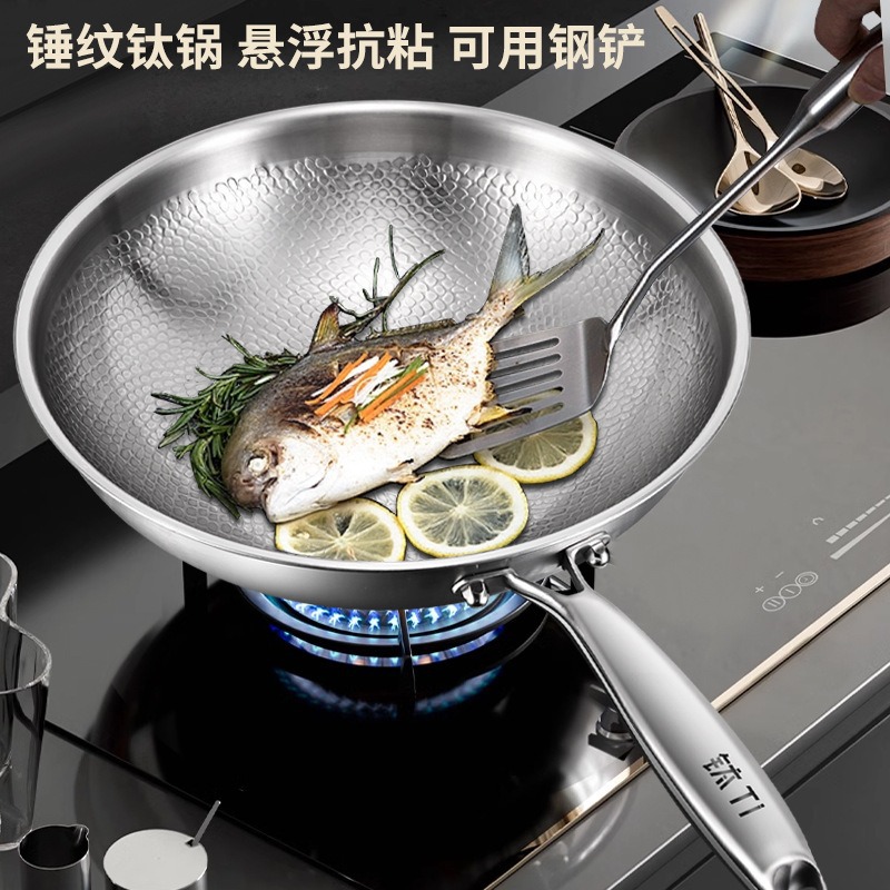 티타늄 냄비 순수 티타늄 프라이팬 무코팅 논스틱 팬 물고기 비늘 무늬 티타늄 가정용 조리용 냄비 전자레인지용 중국식 단조