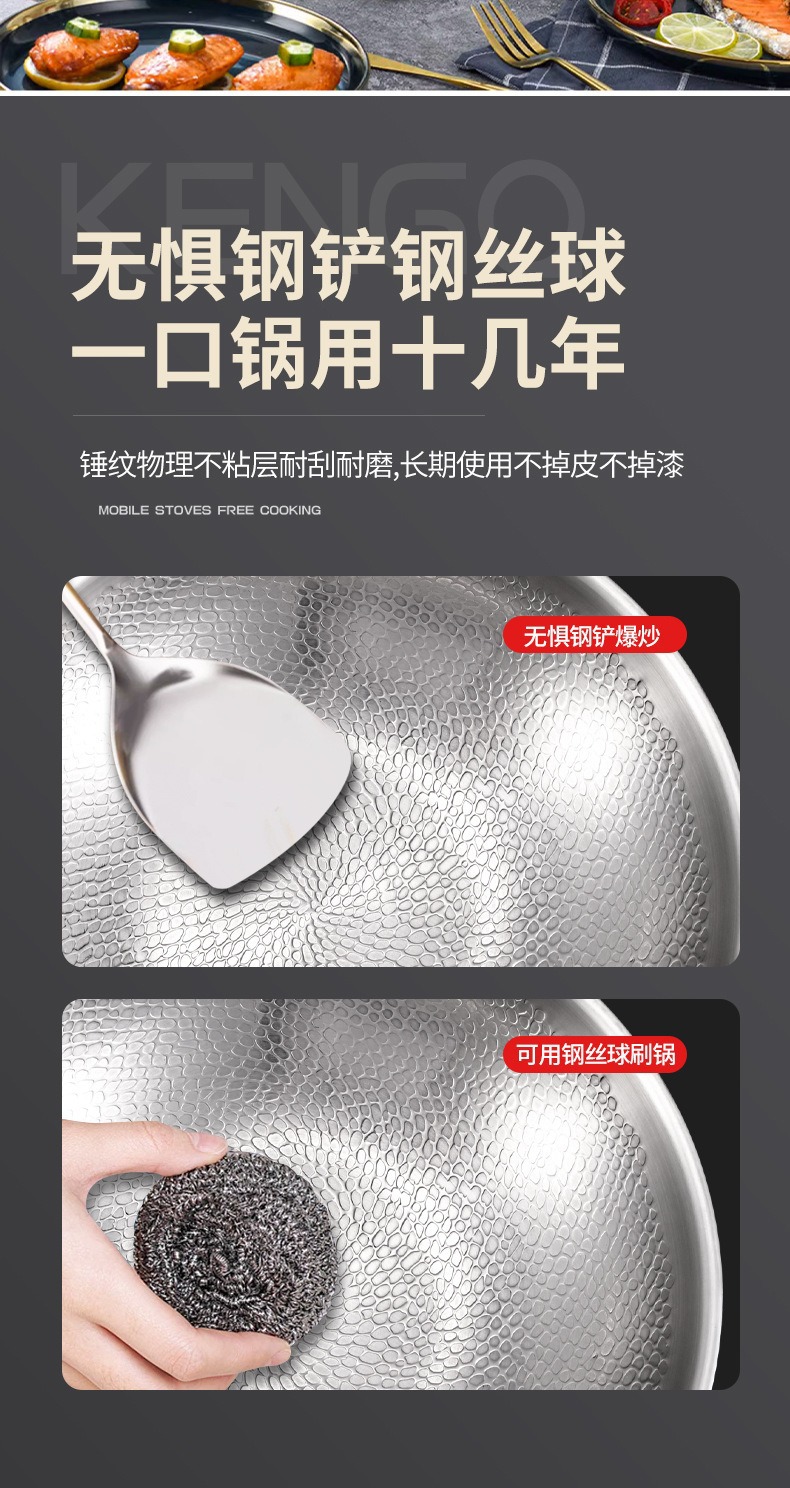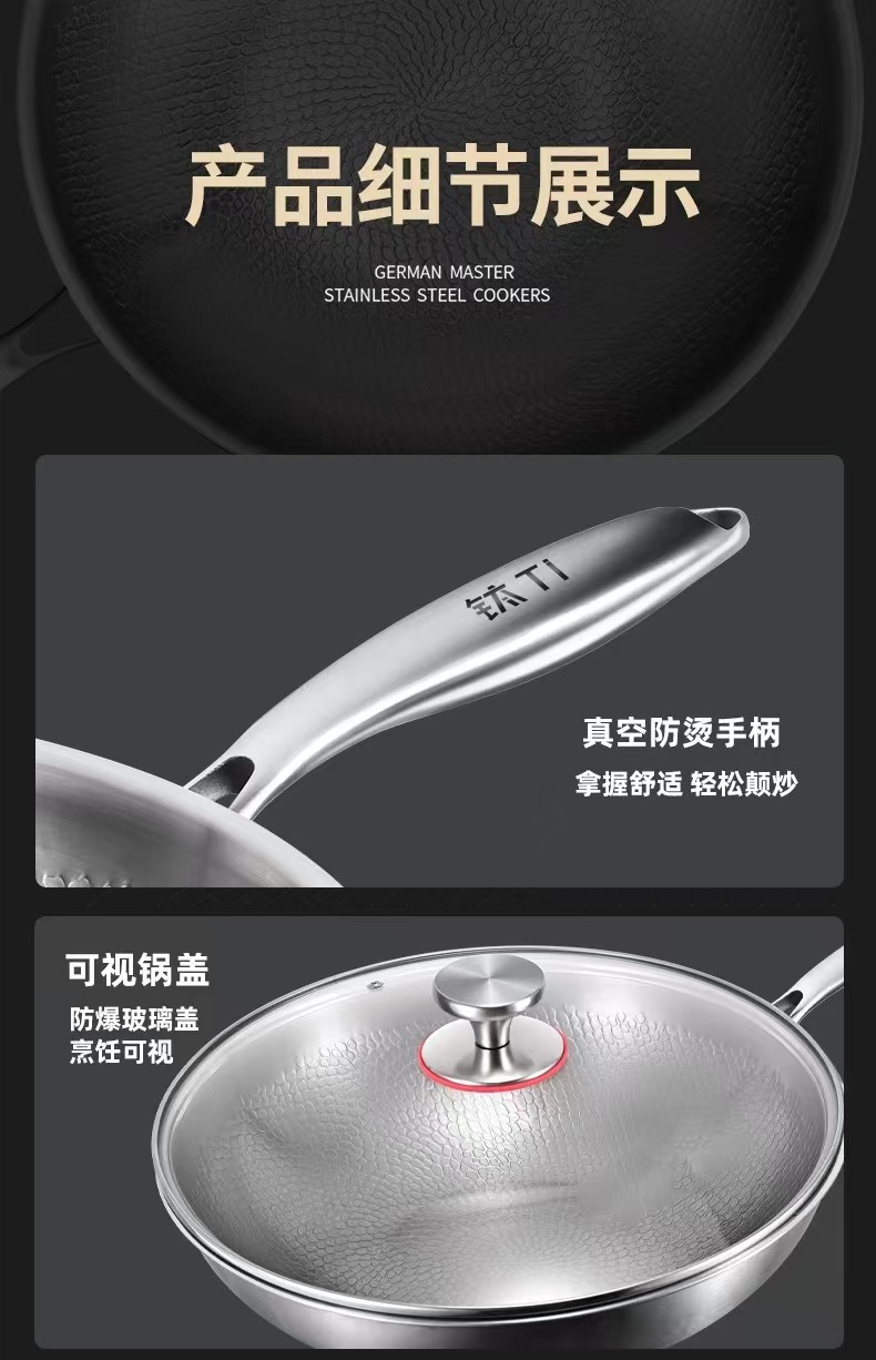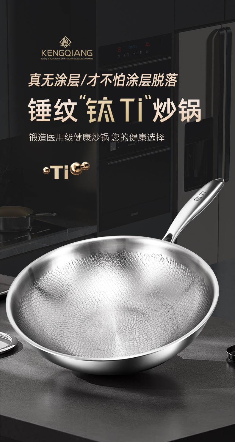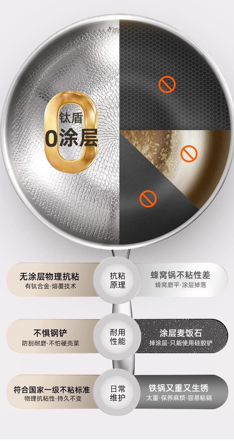 티타늄 냄비 순수 티타늄 프라이팬 무코팅 논스틱 팬 물고기 비늘 무늬 티타늄 가정용 조리용 냄비 전자레인지용 중국식 단조