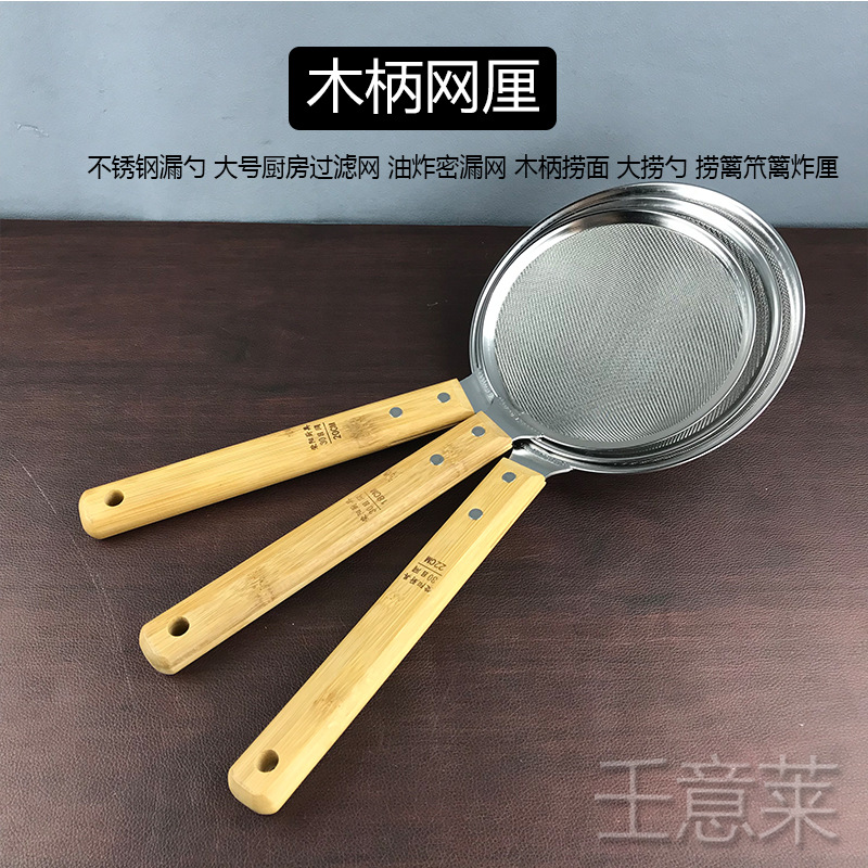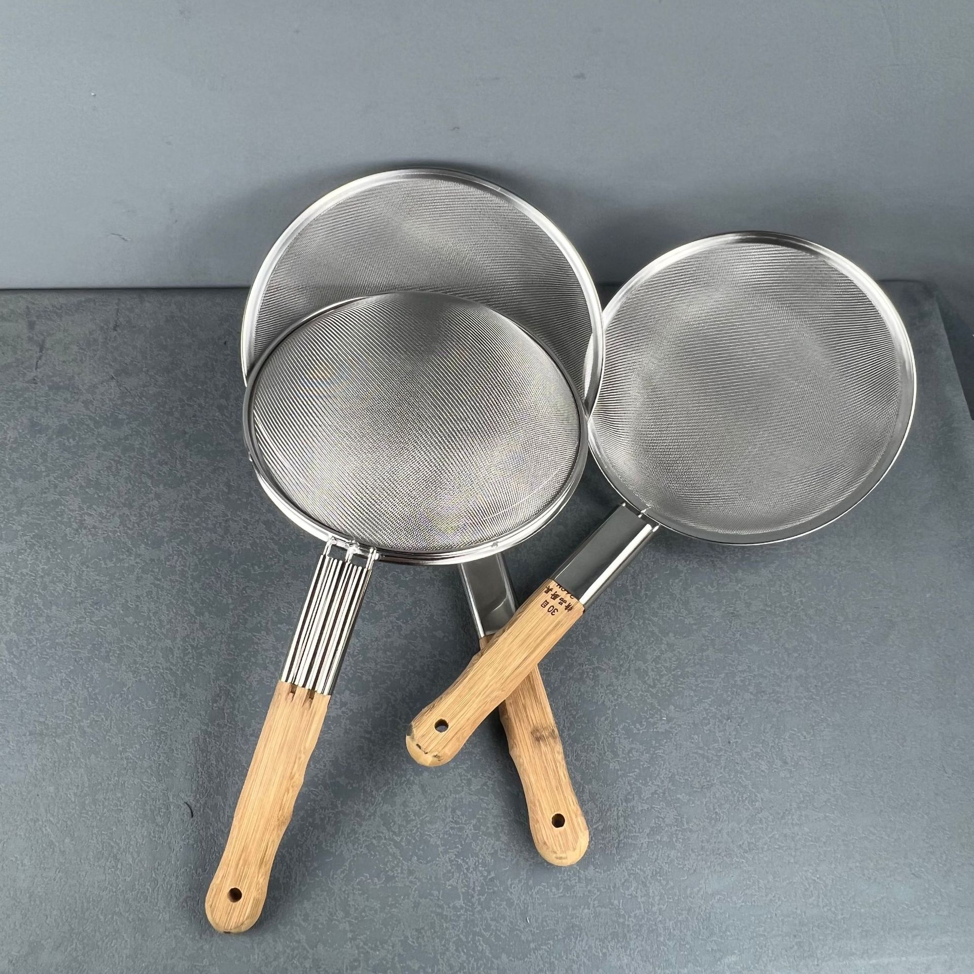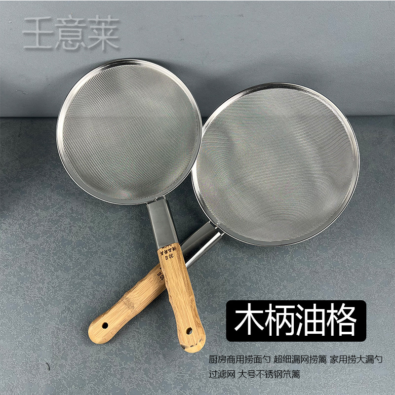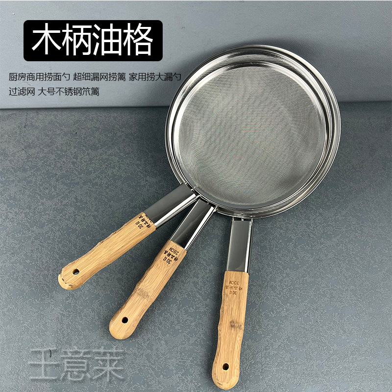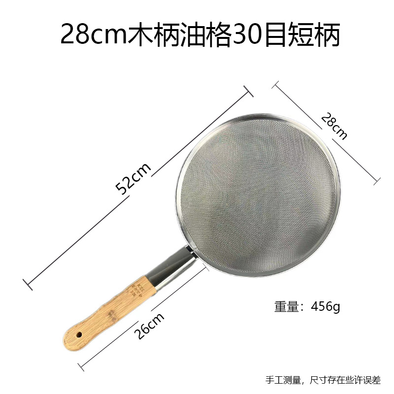 28cm 나무 손잡이 오일 그리드 30 메쉬 짧은 손잡이